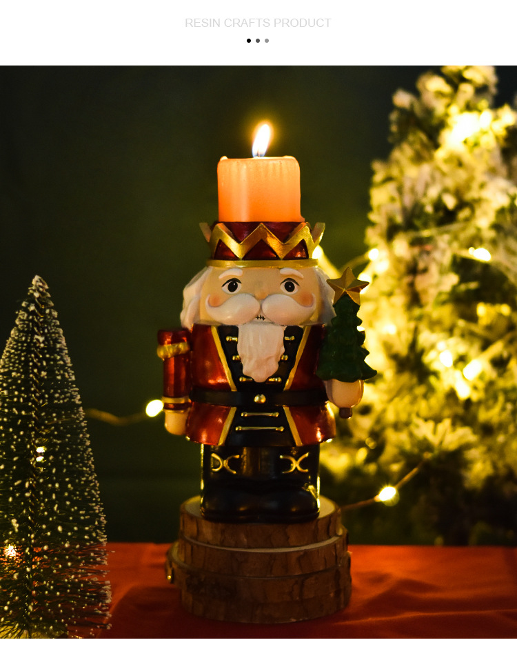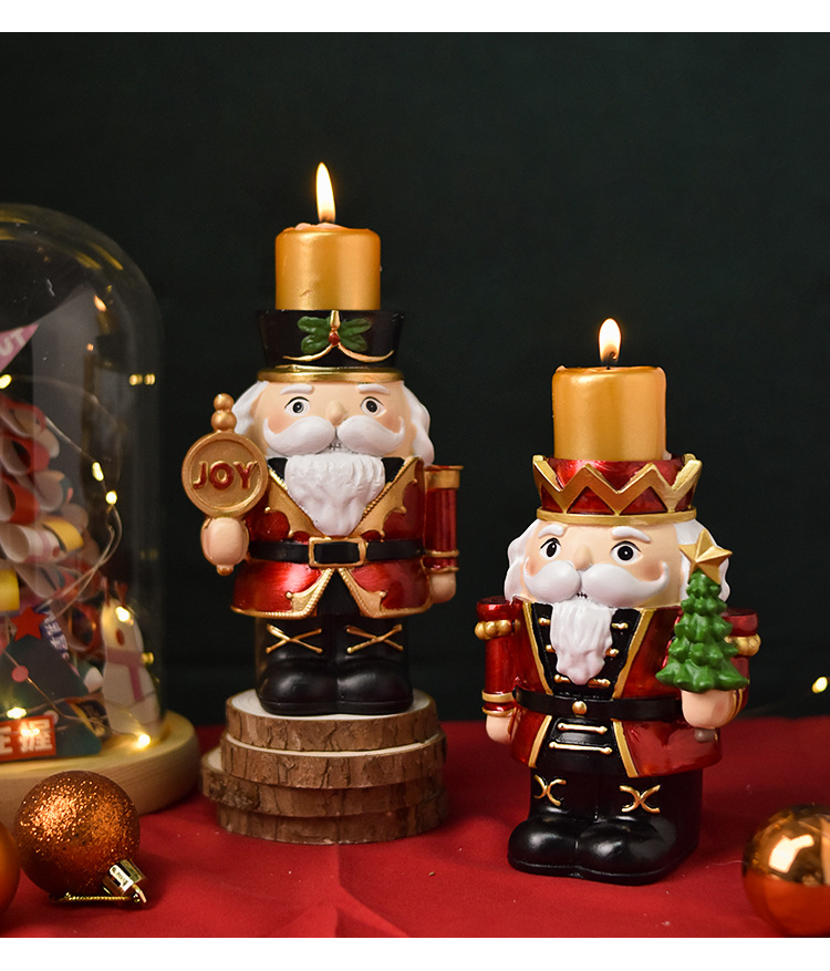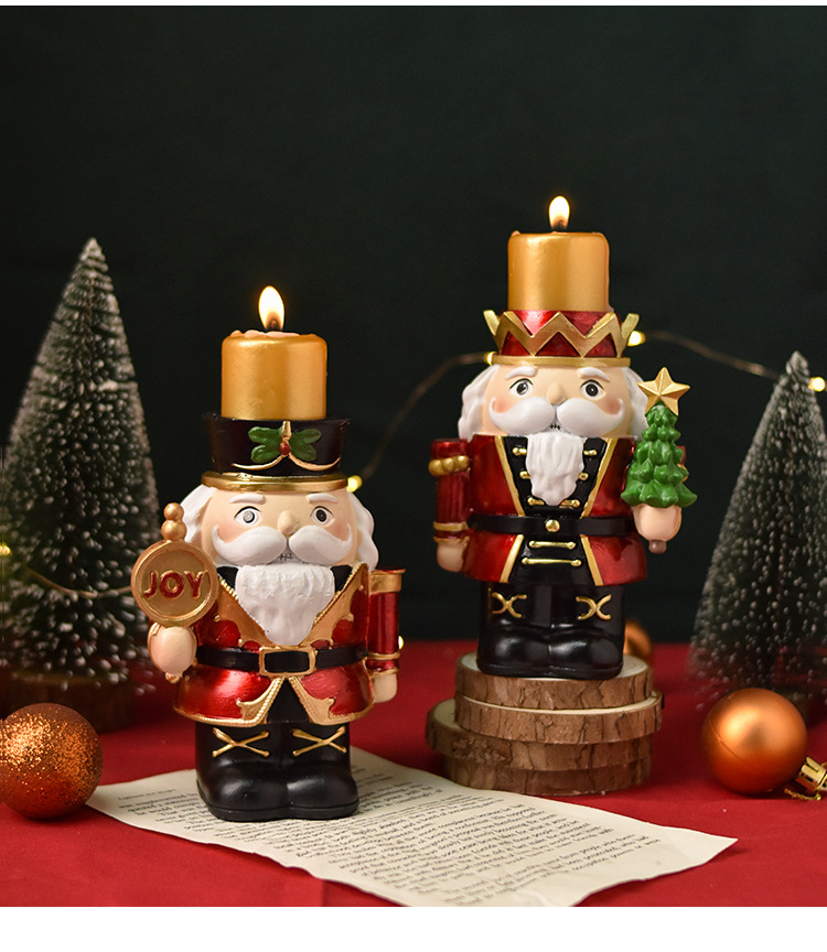 跨境新款胡桃夹子烛台摆件家居客厅桌面装饰蜡烛台圣诞树脂工艺品