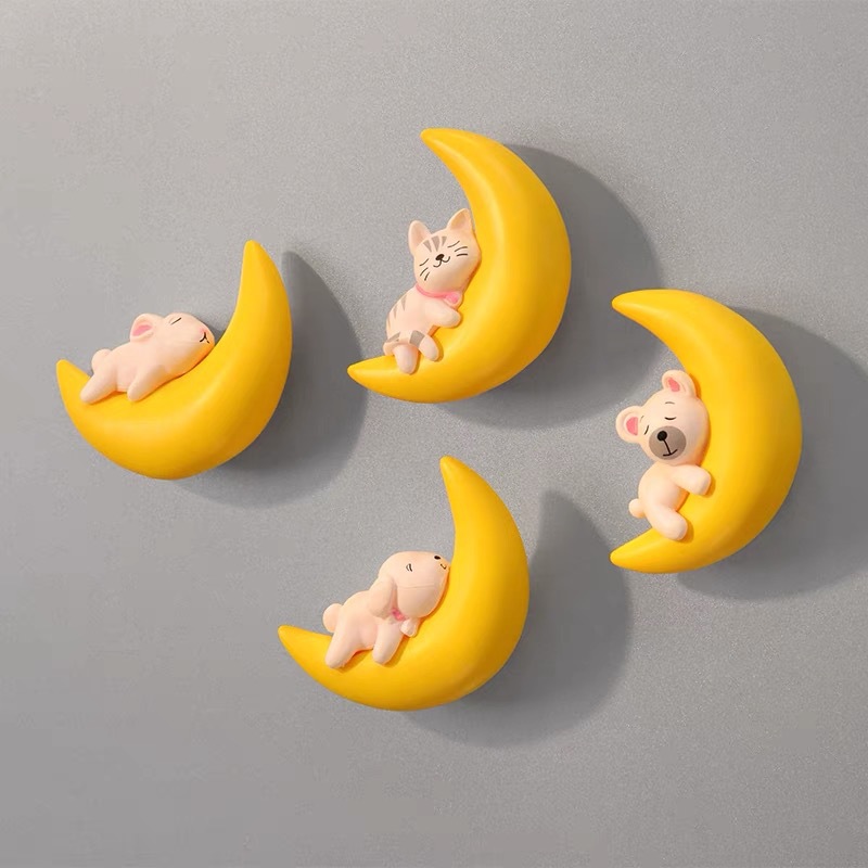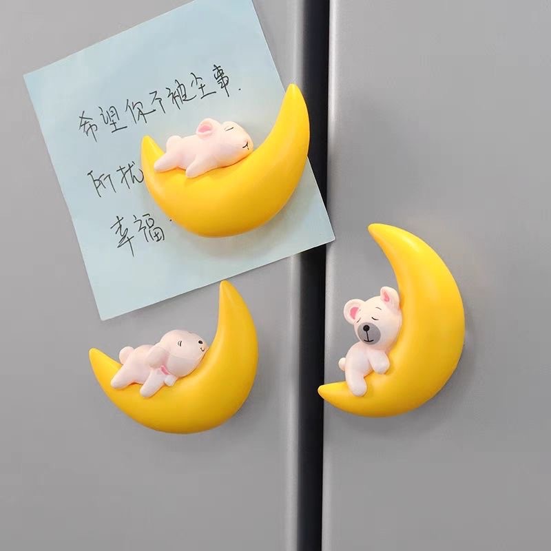 月亮熊冰箱贴磁贴个性创意磁吸可爱卡通月亮动物装饰吸铁石磁力贴