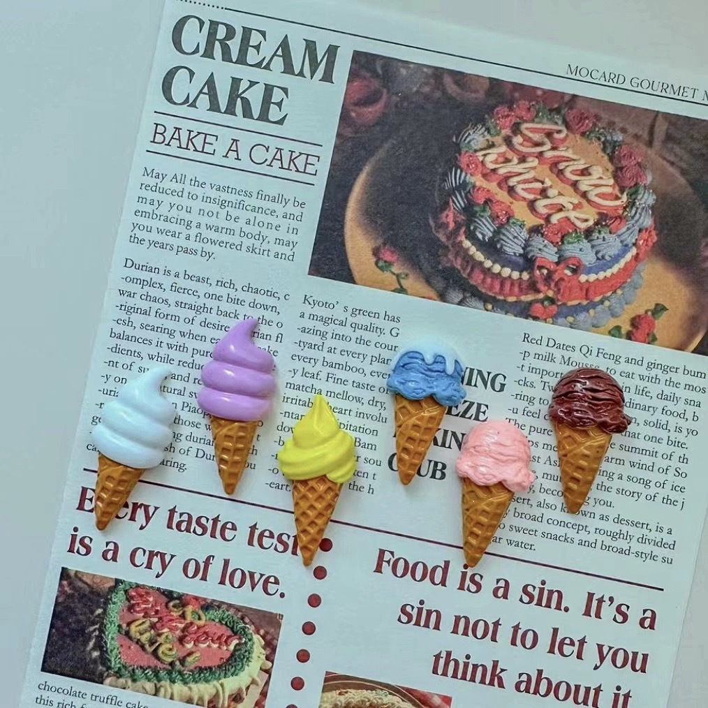 冰箱贴奶油巧克力冰淇淋磁吸雪糕甜筒半立体迷你卡通食玩ins胸针
