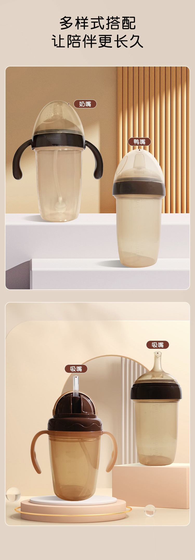 仿母乳PP奶瓶6个月以上12一岁大宝宝婴儿断奶吸管重力球防胀气