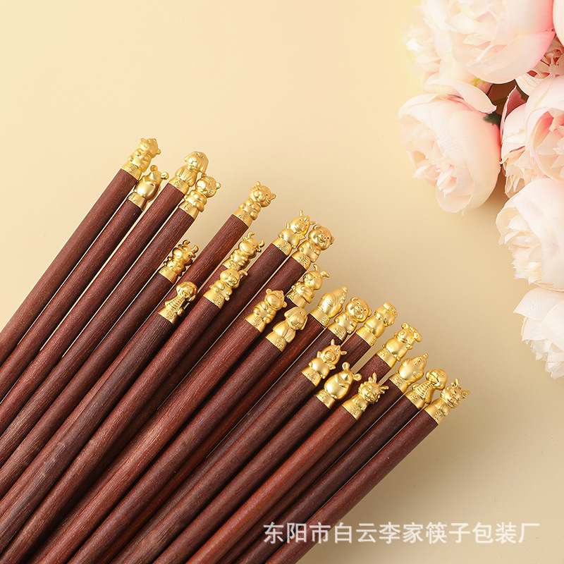 红檀木筷子家用新年十二生肖鸡翅木筷实木无漆分餐一人一筷批发