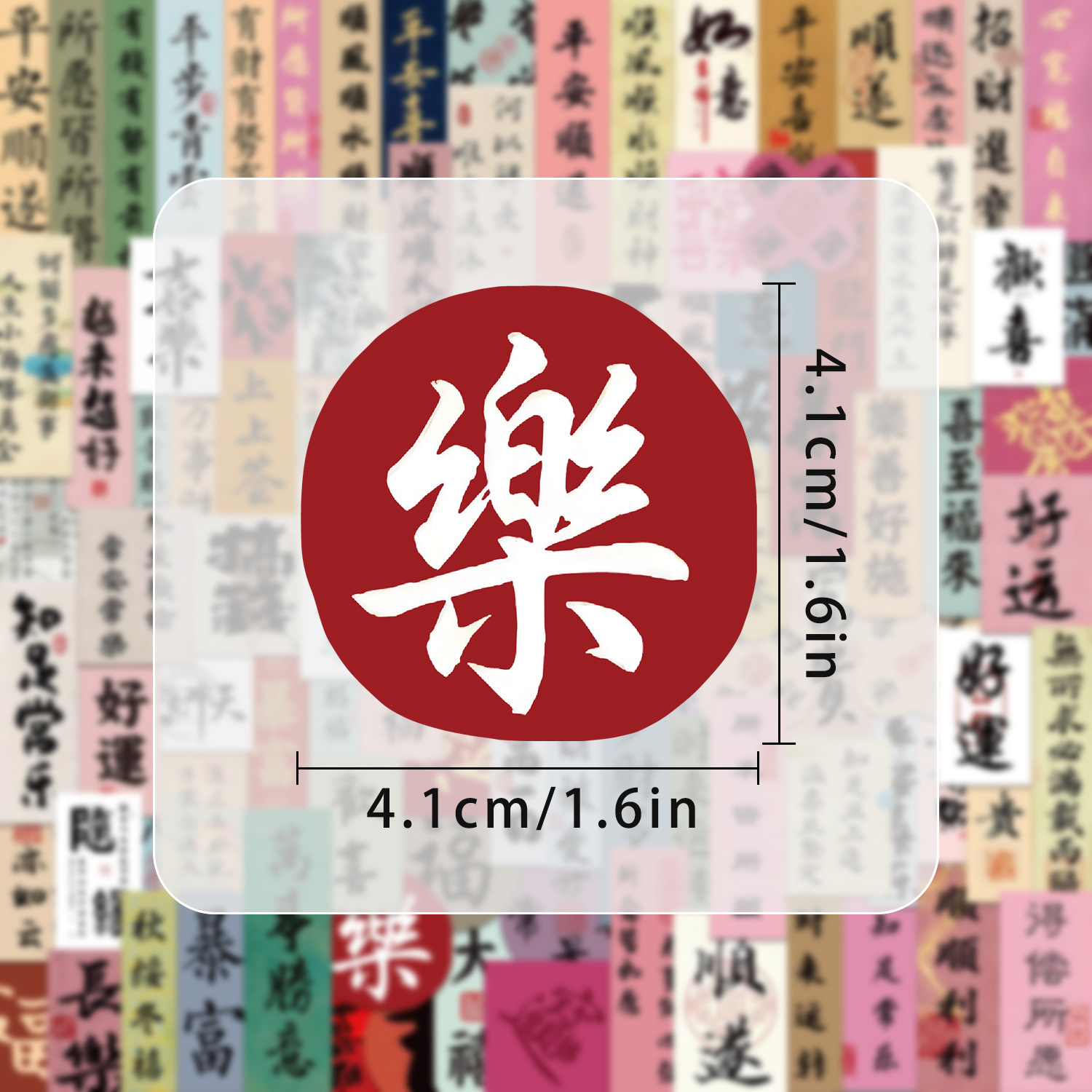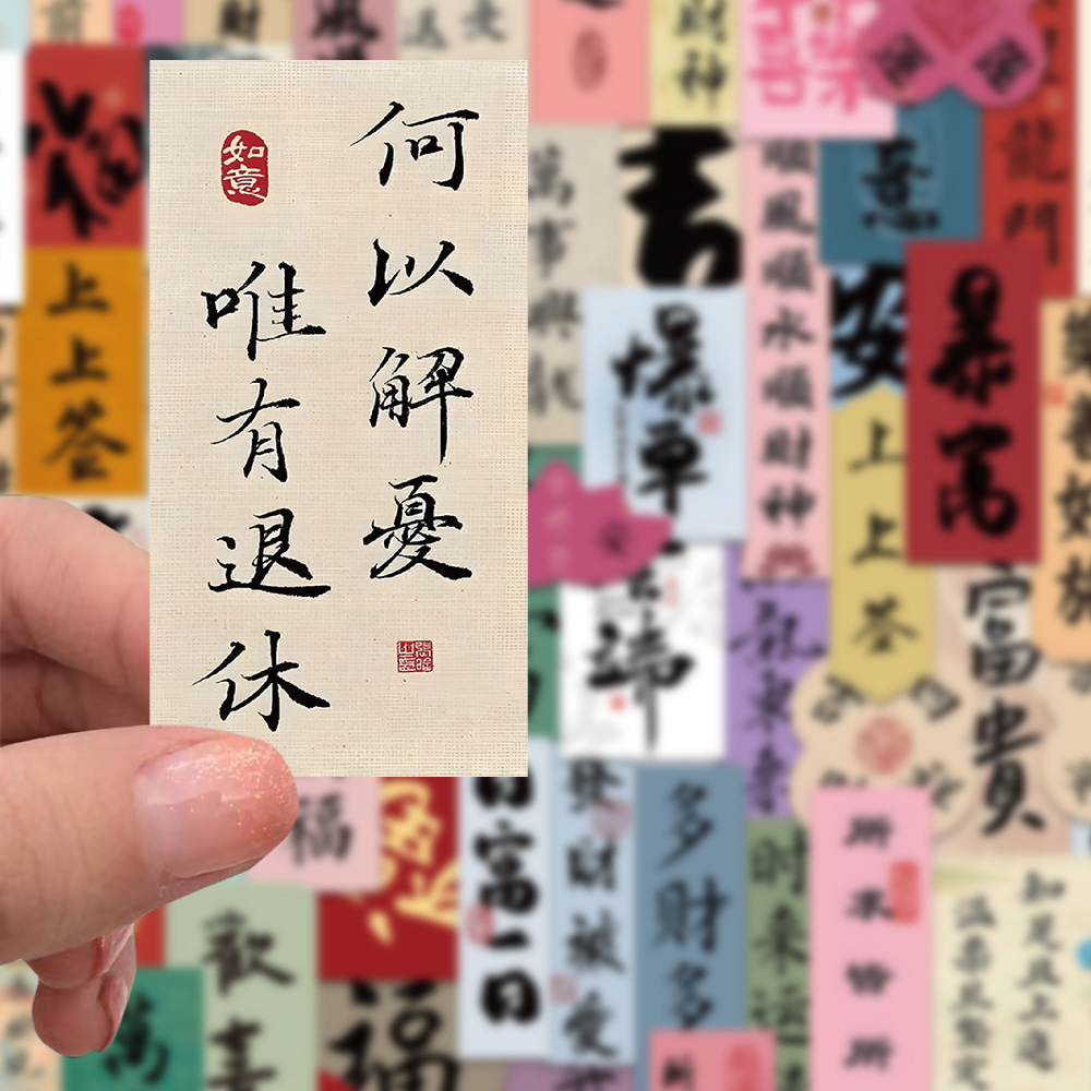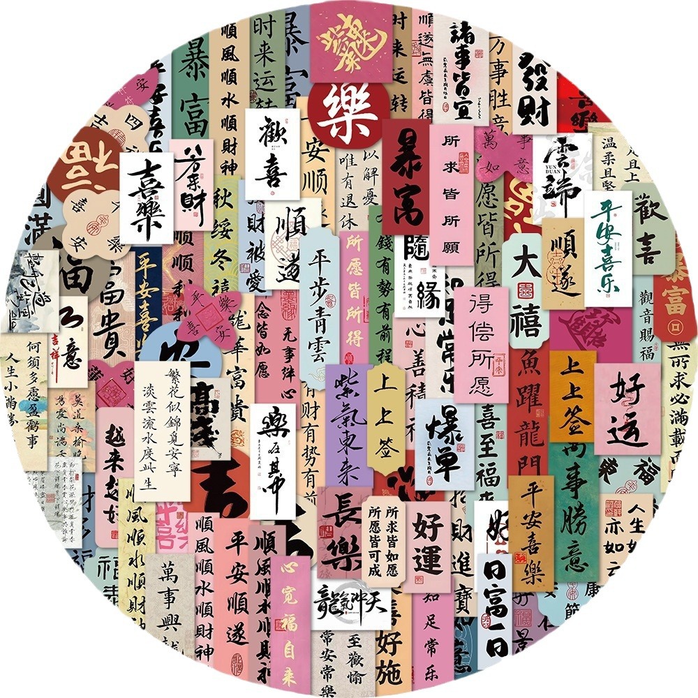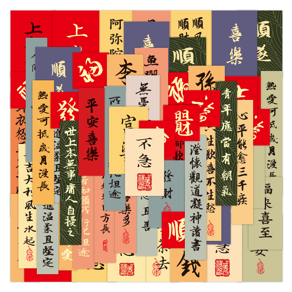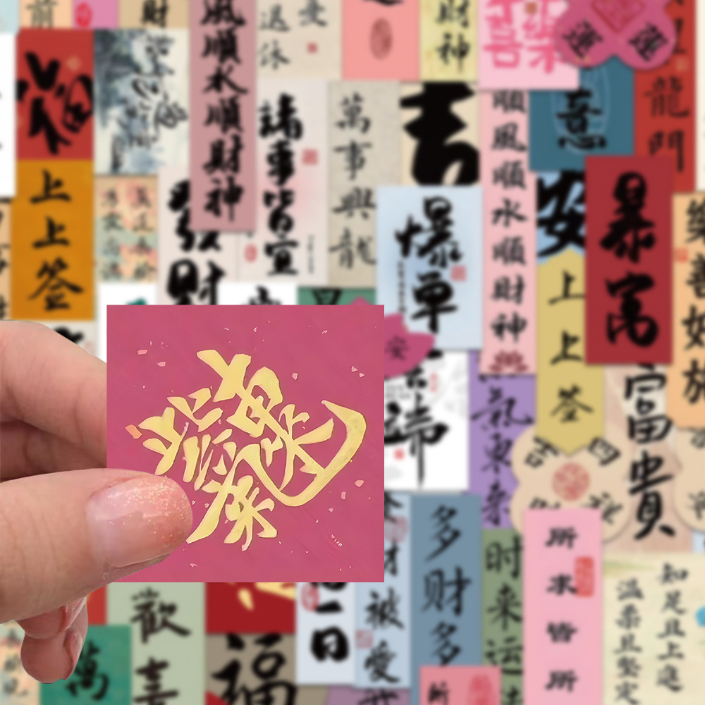 100张中国古风书法励志贴纸毛笔字福字小字条DIY手机行李箱小贴画