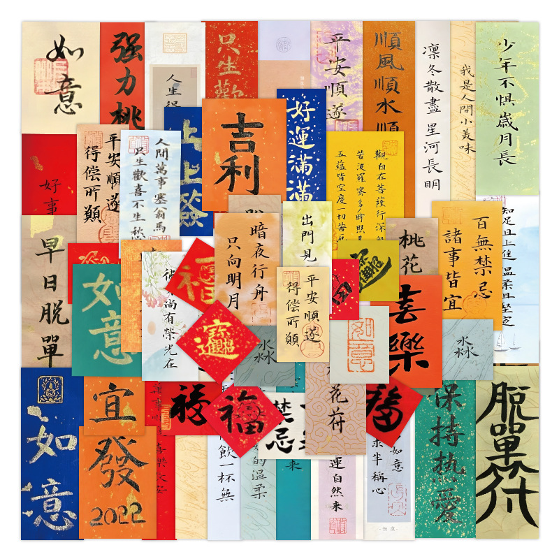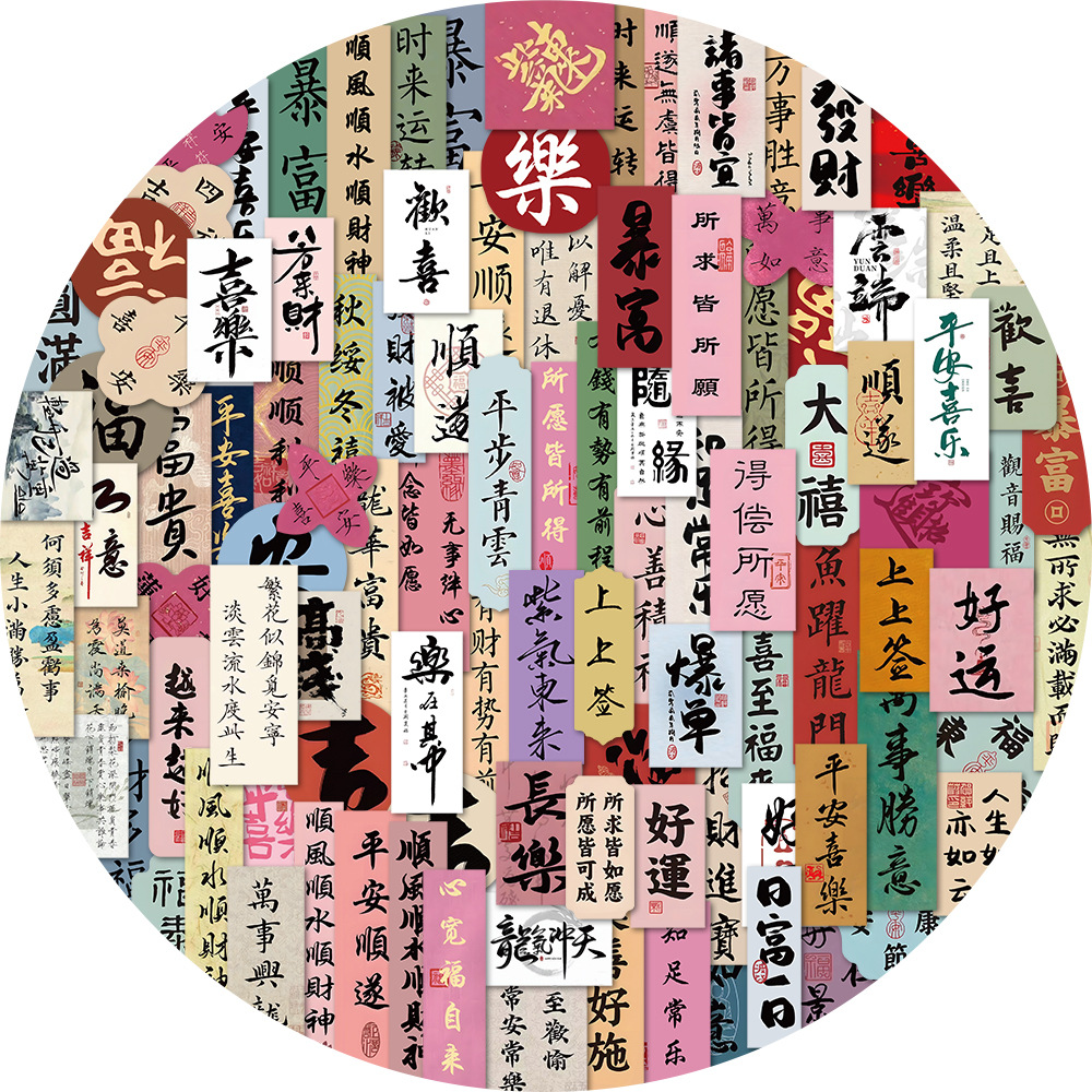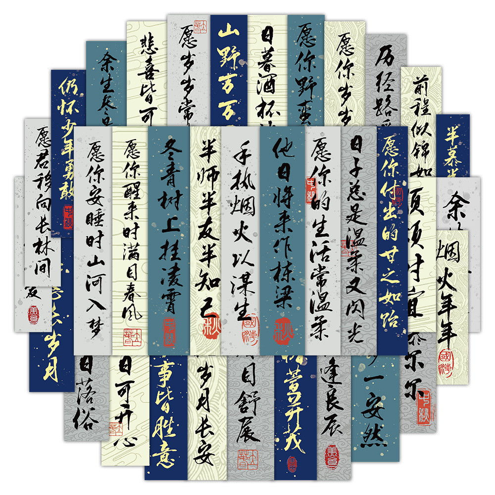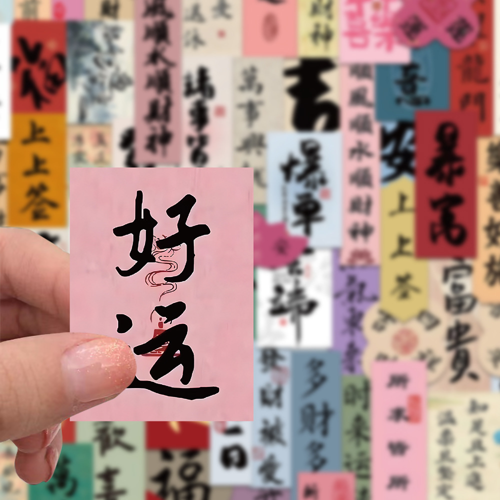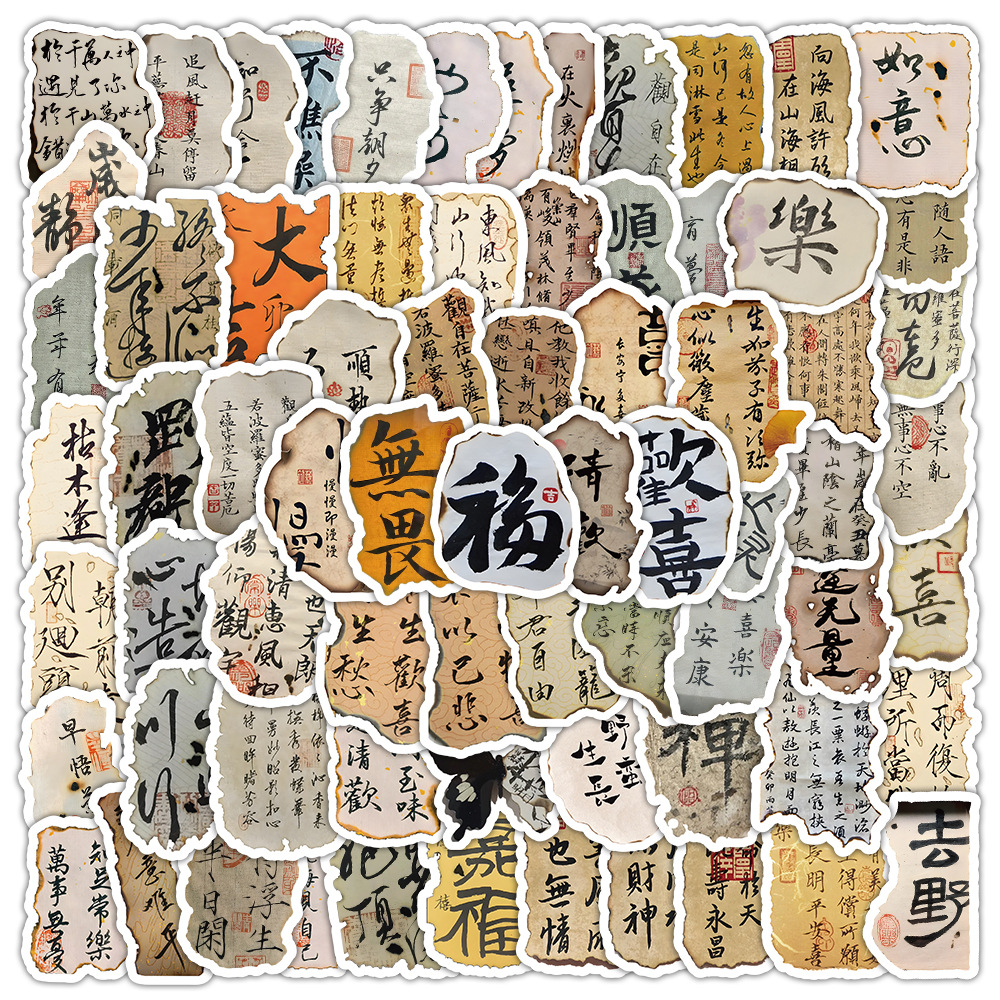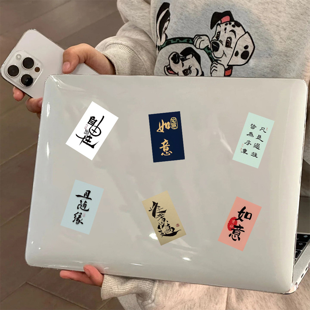 100张中国古风书法励志贴纸毛笔字福字小字条DIY手机行李箱小贴画
