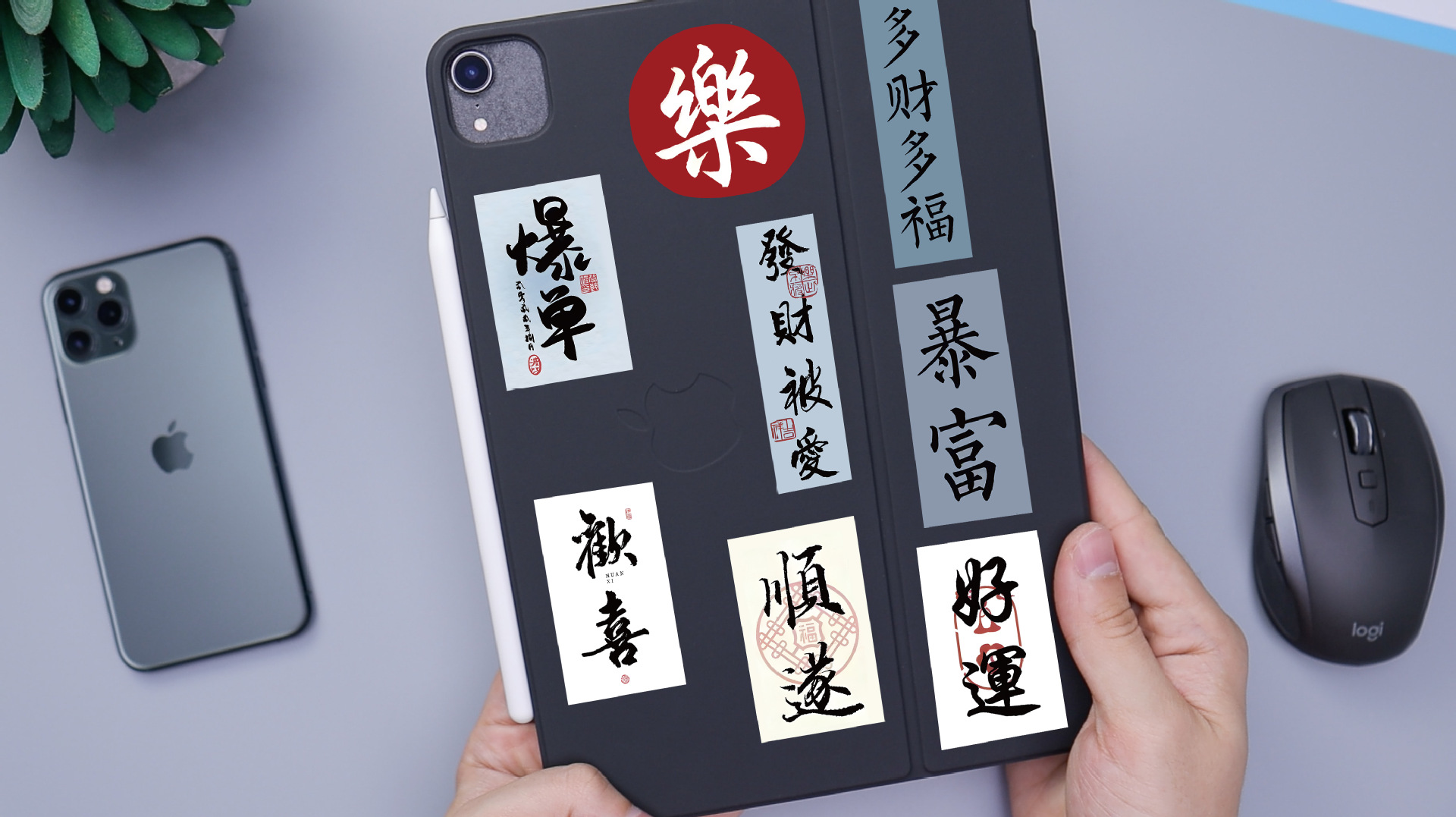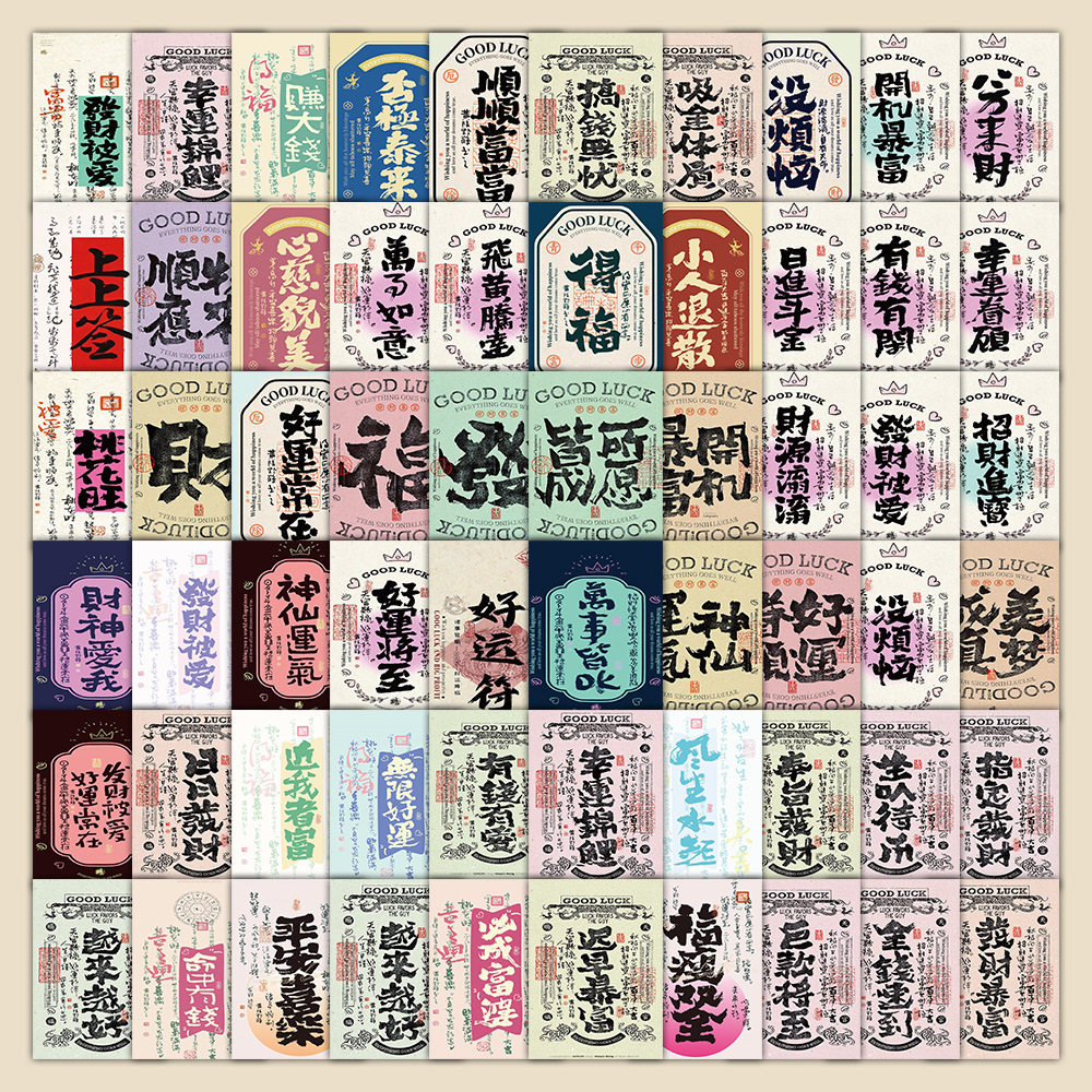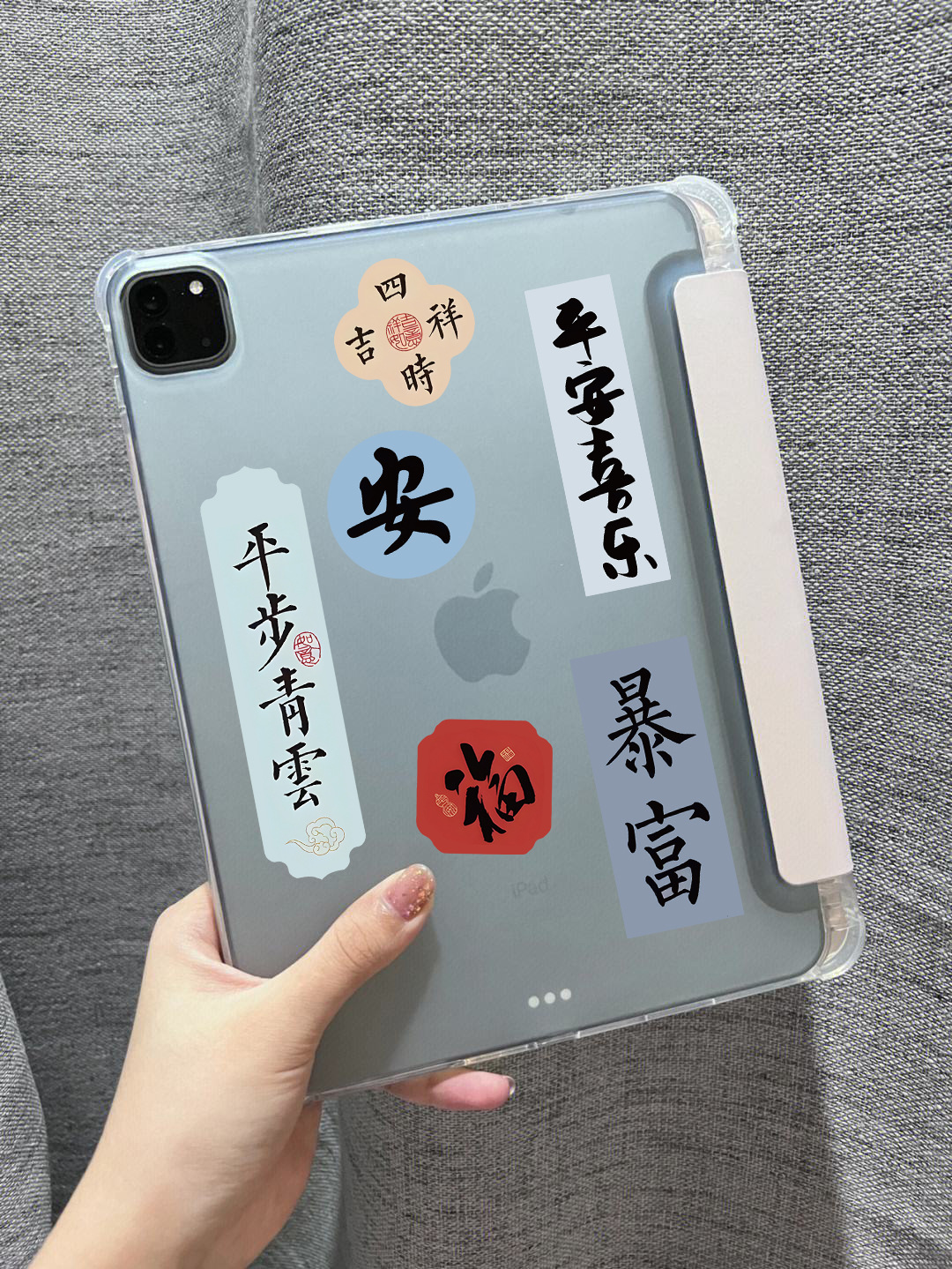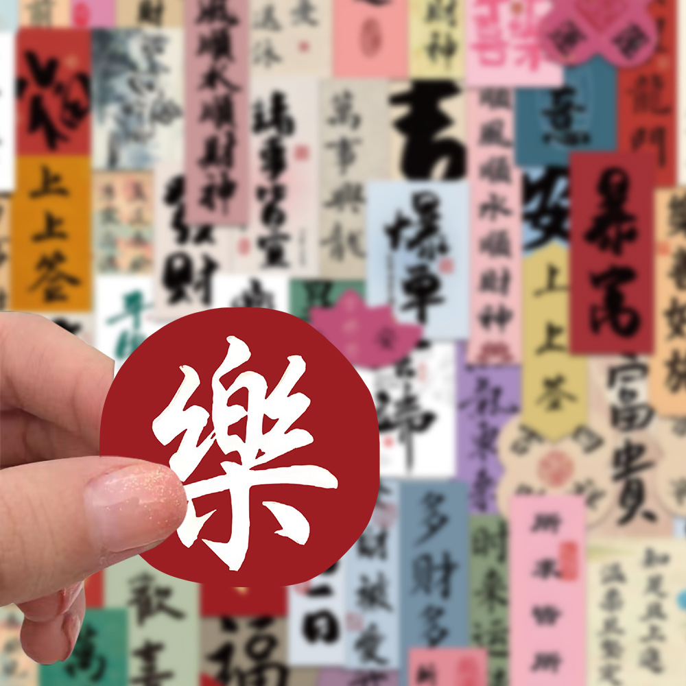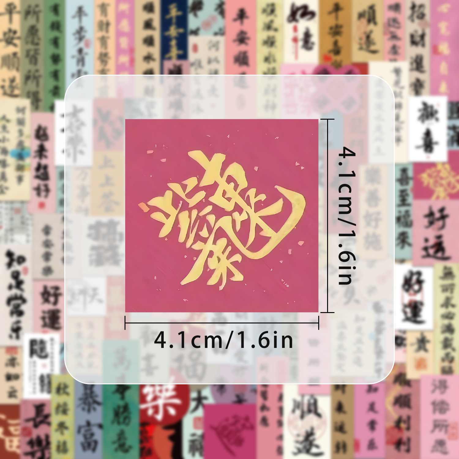 100张中国古风书法励志贴纸毛笔字福字小字条DIY手机行李箱小贴画