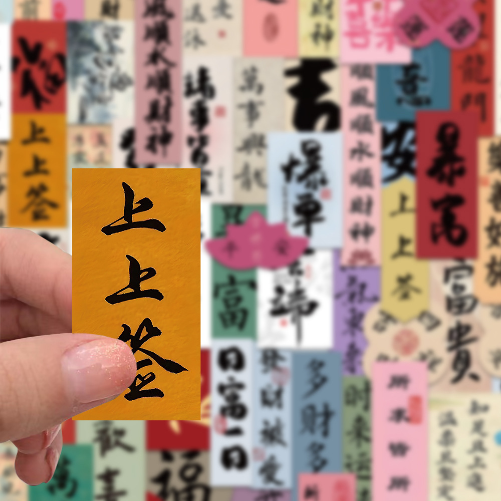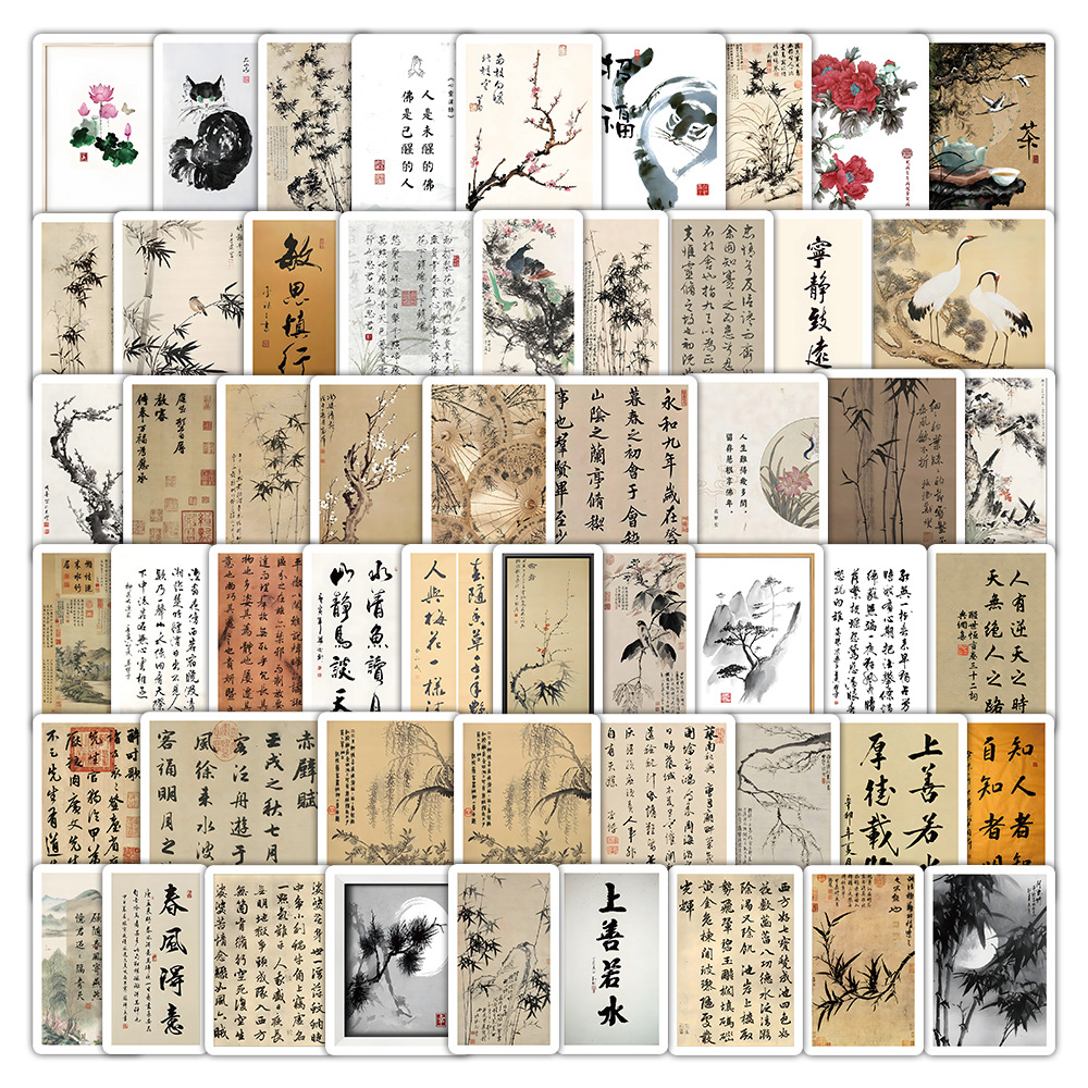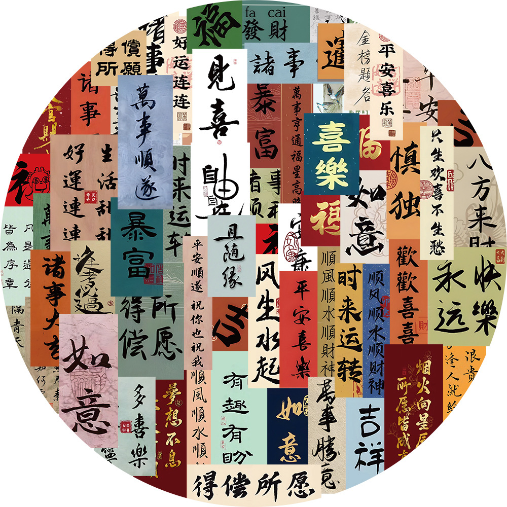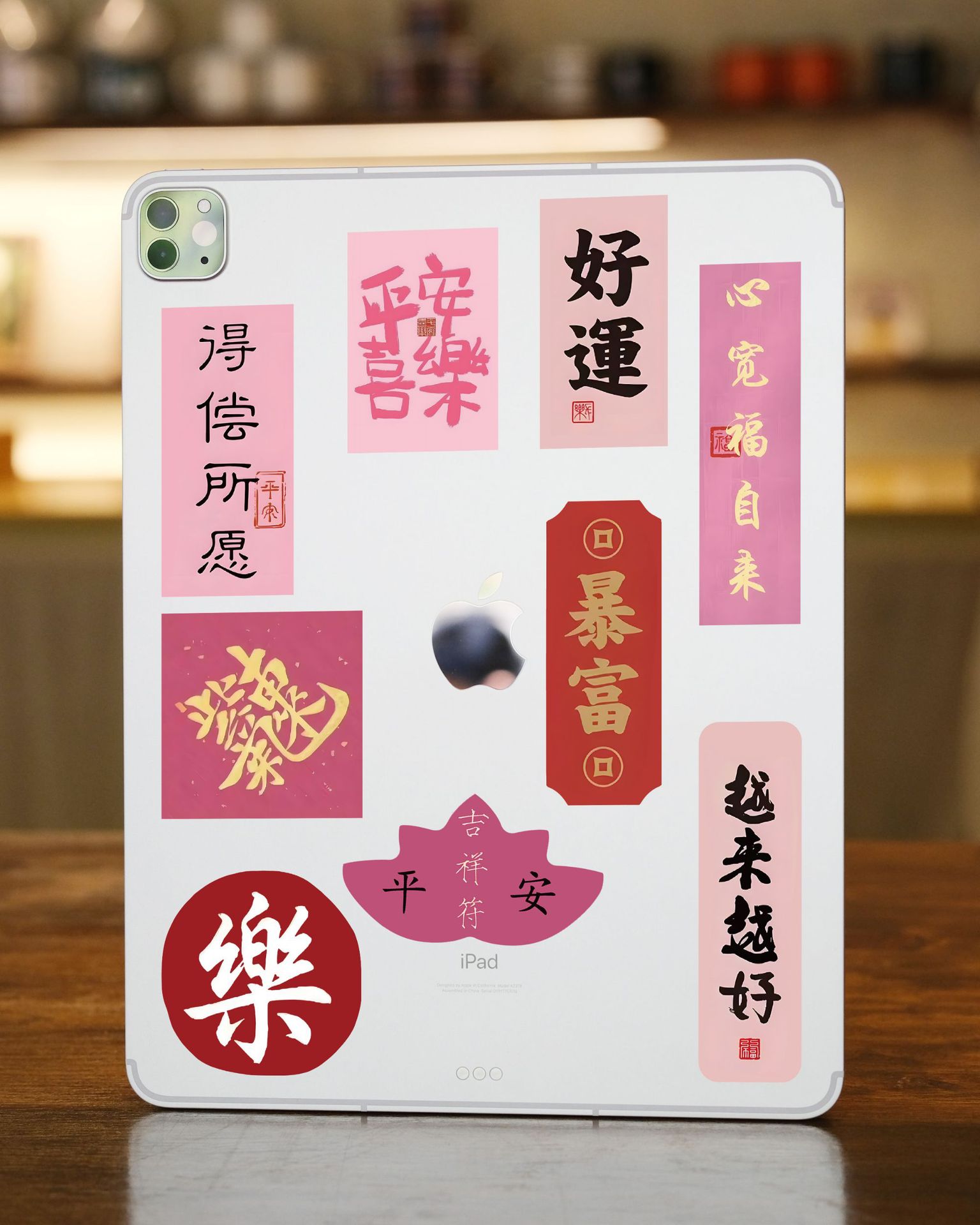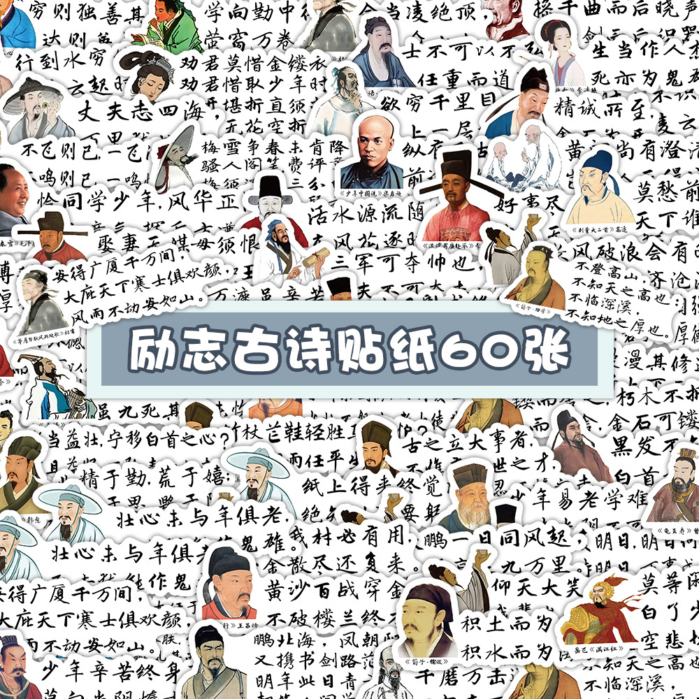 100张中国古风书法励志贴纸毛笔字福字小字条DIY手机行李箱小贴画