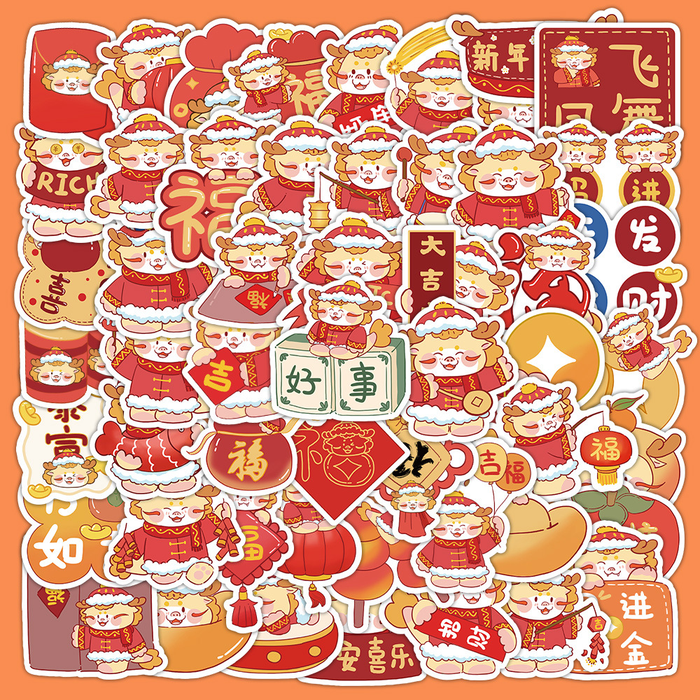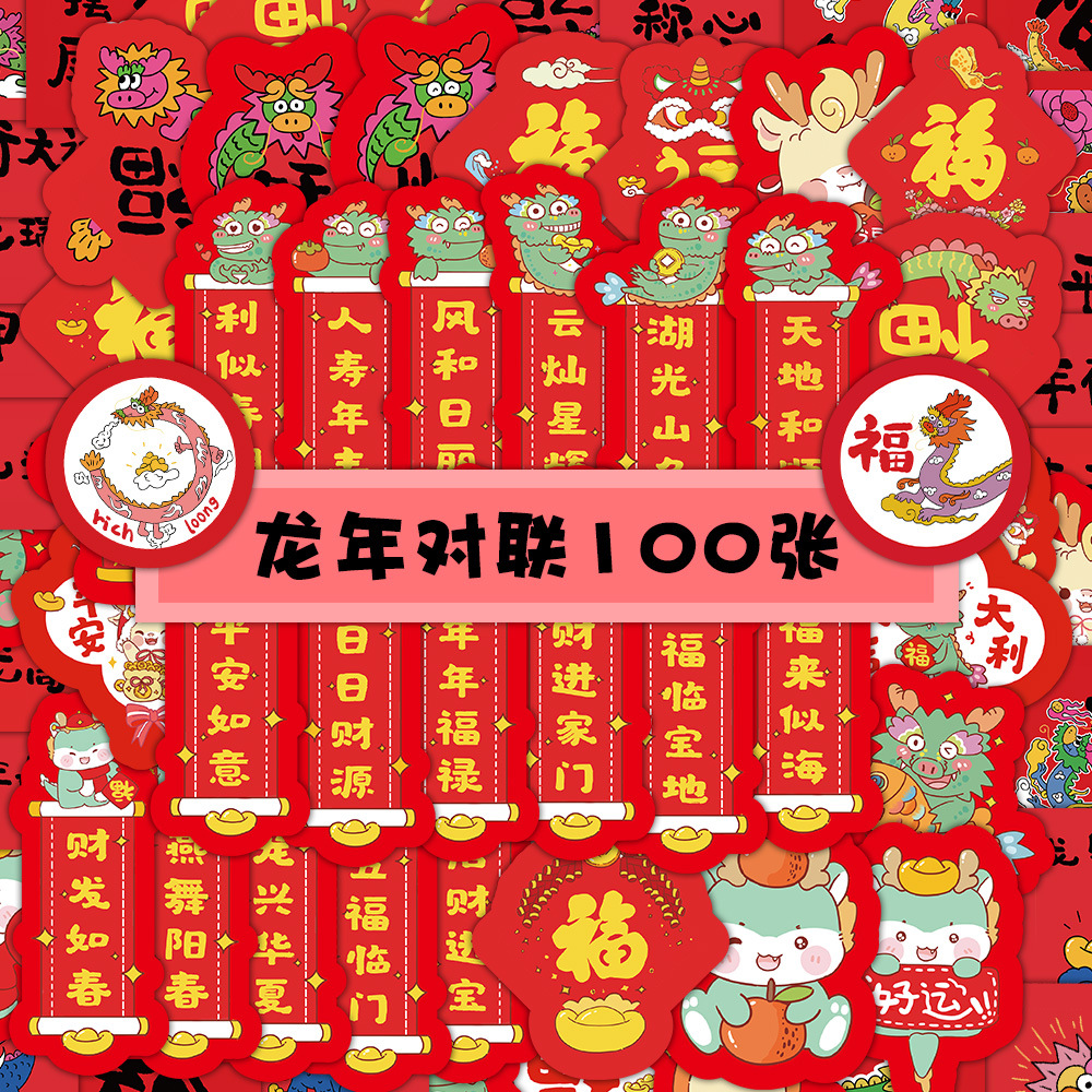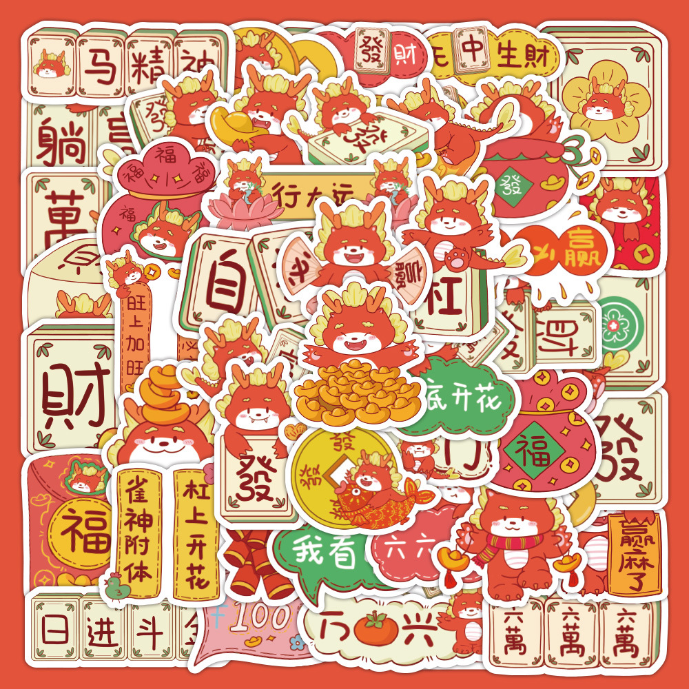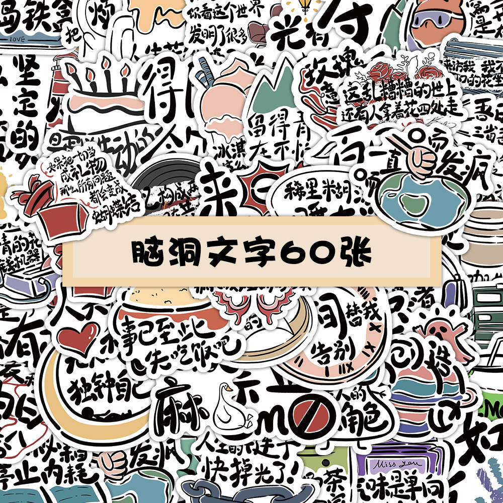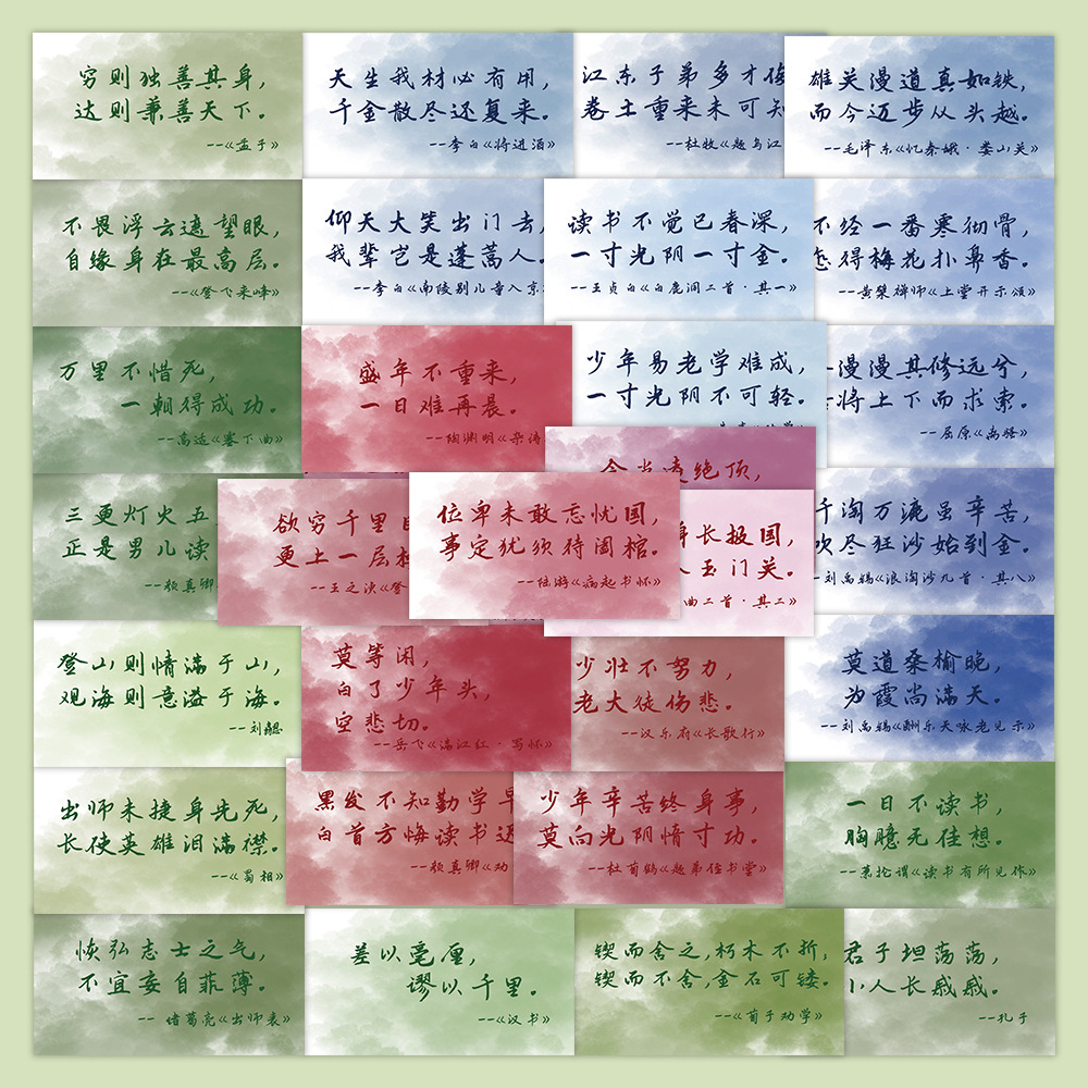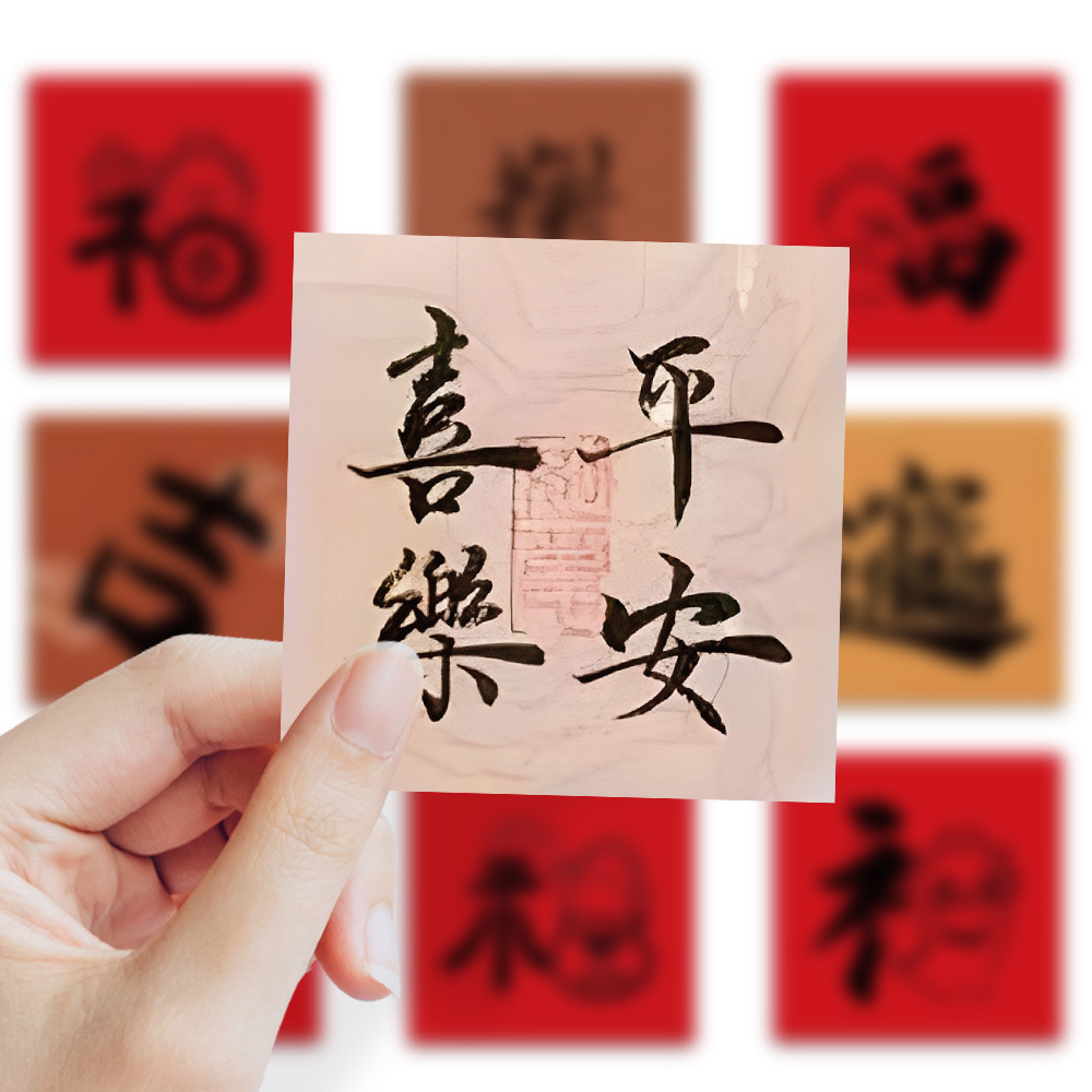 100张中国古风书法励志贴纸毛笔字福字小字条DIY手机行李箱小贴画