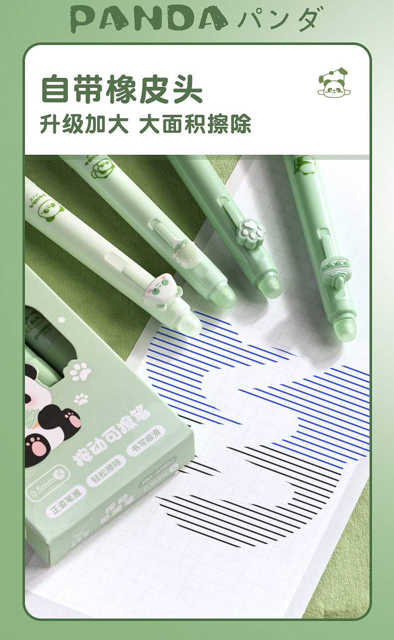 高颜值可擦笔可爱按动中性笔卡通小学三年级专用热敏擦黑色晶蓝色
