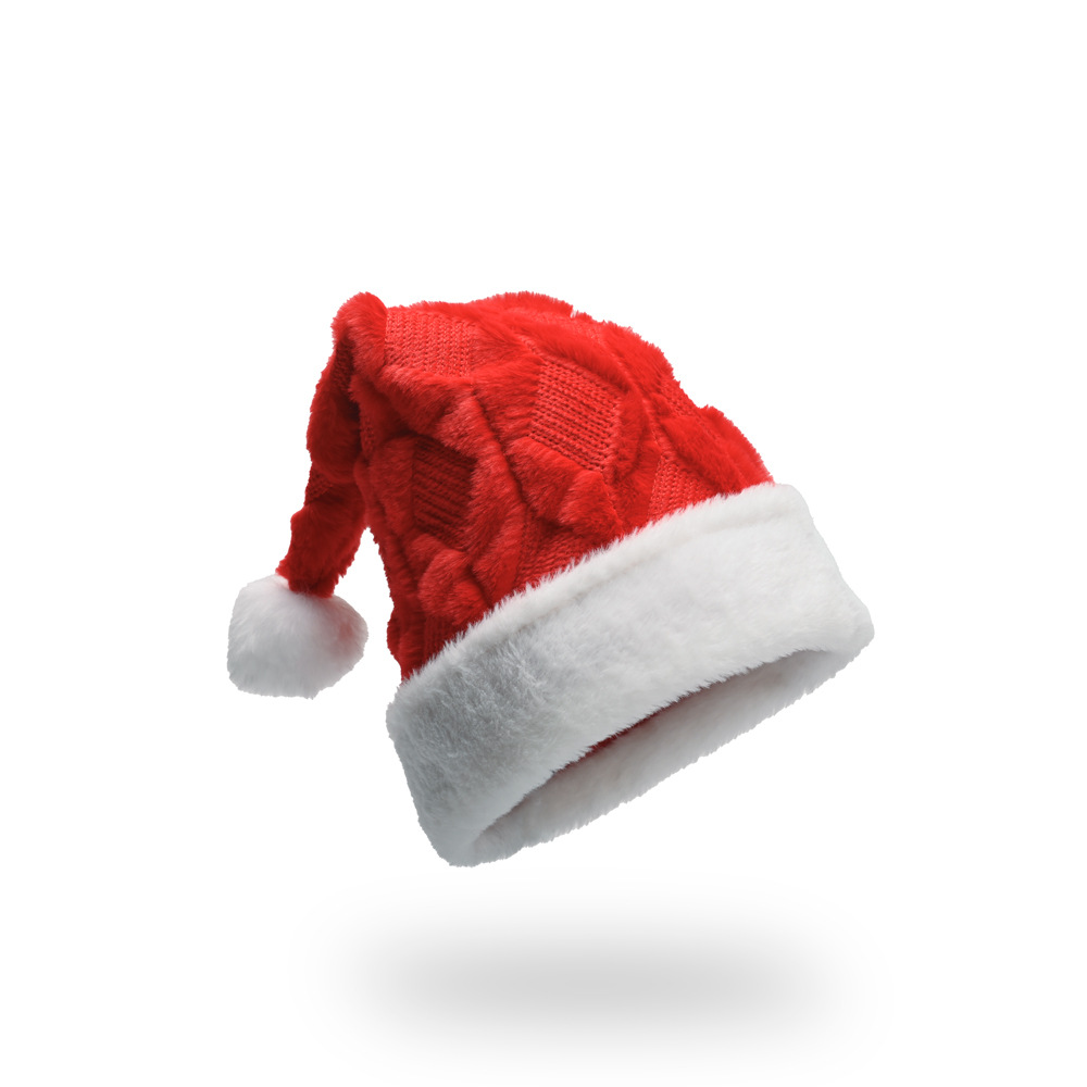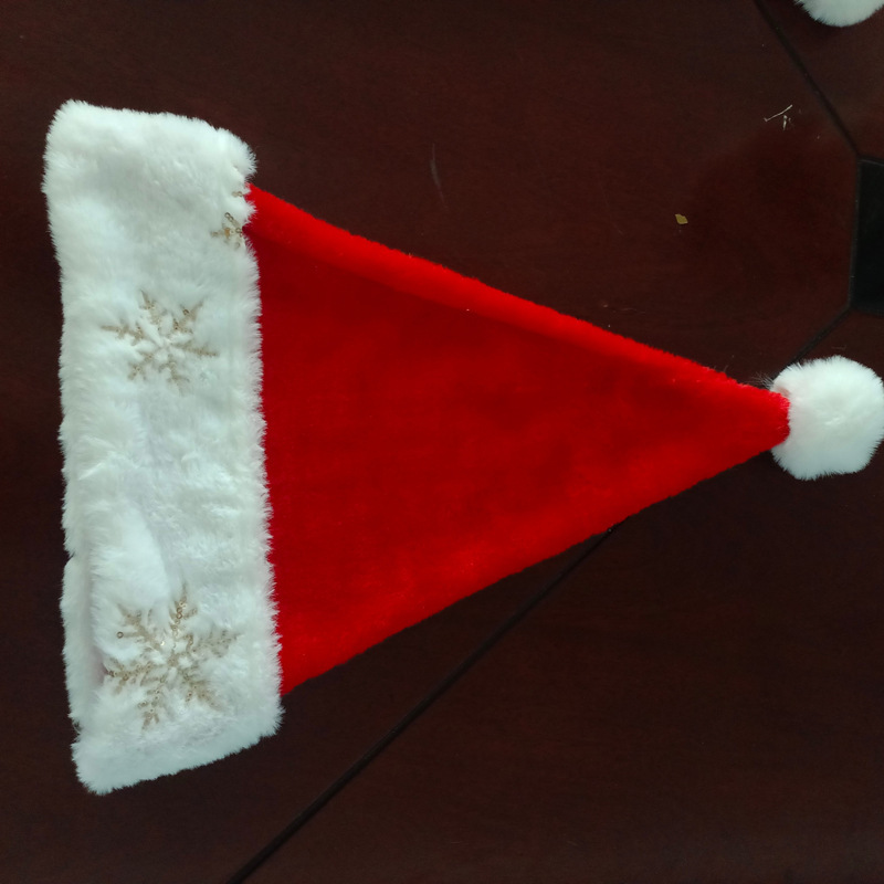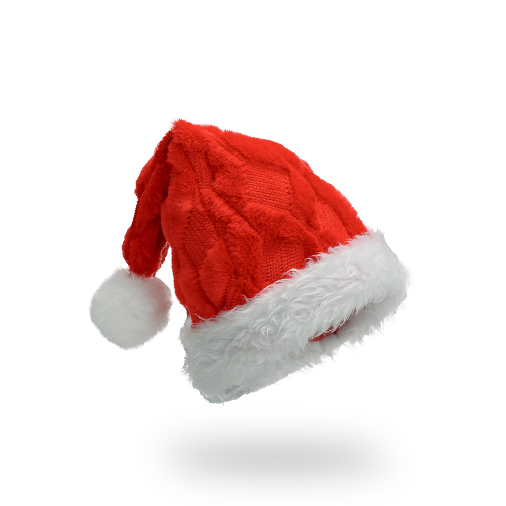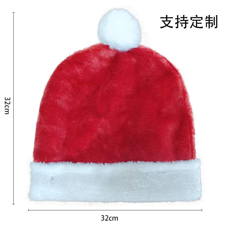 圣诞帽成人儿童圣诞节装饰品长绒毛短绒毛红白格帽子