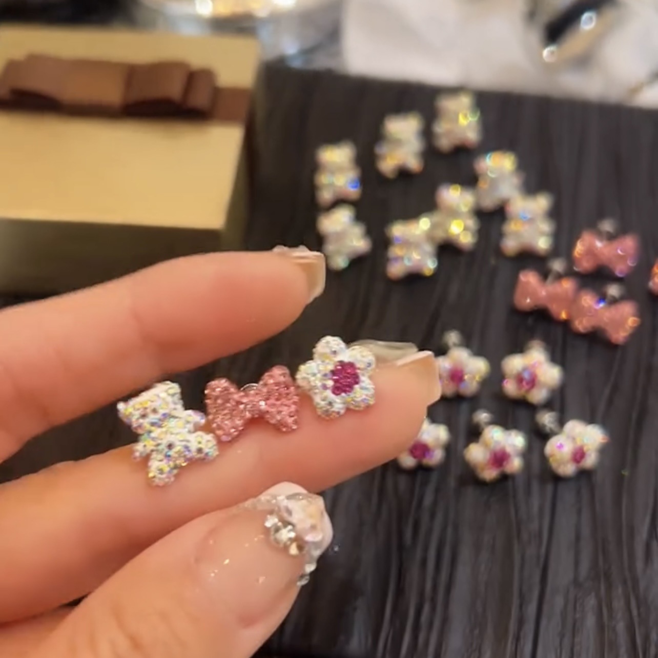 可可爱爱彩色耳骨钉镶钻彩色粉色蝴蝶结小熊米奇头花朵螺旋耳帽女