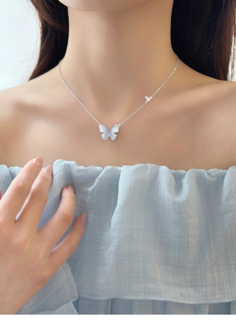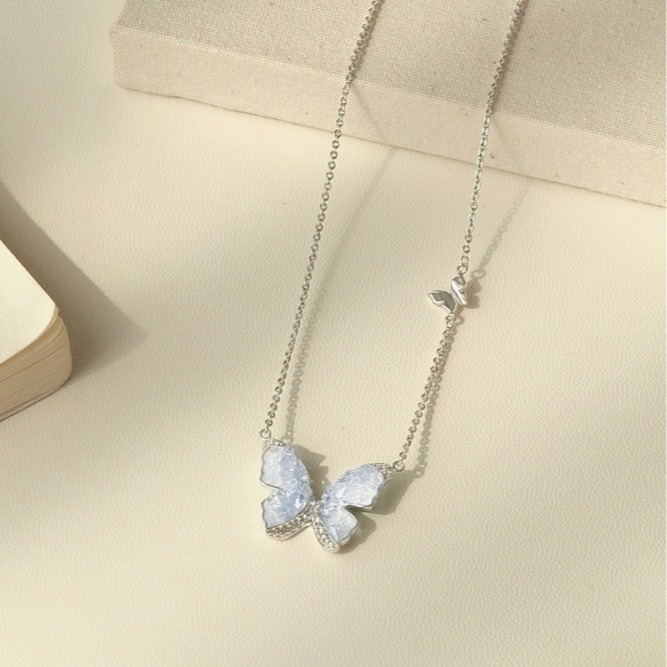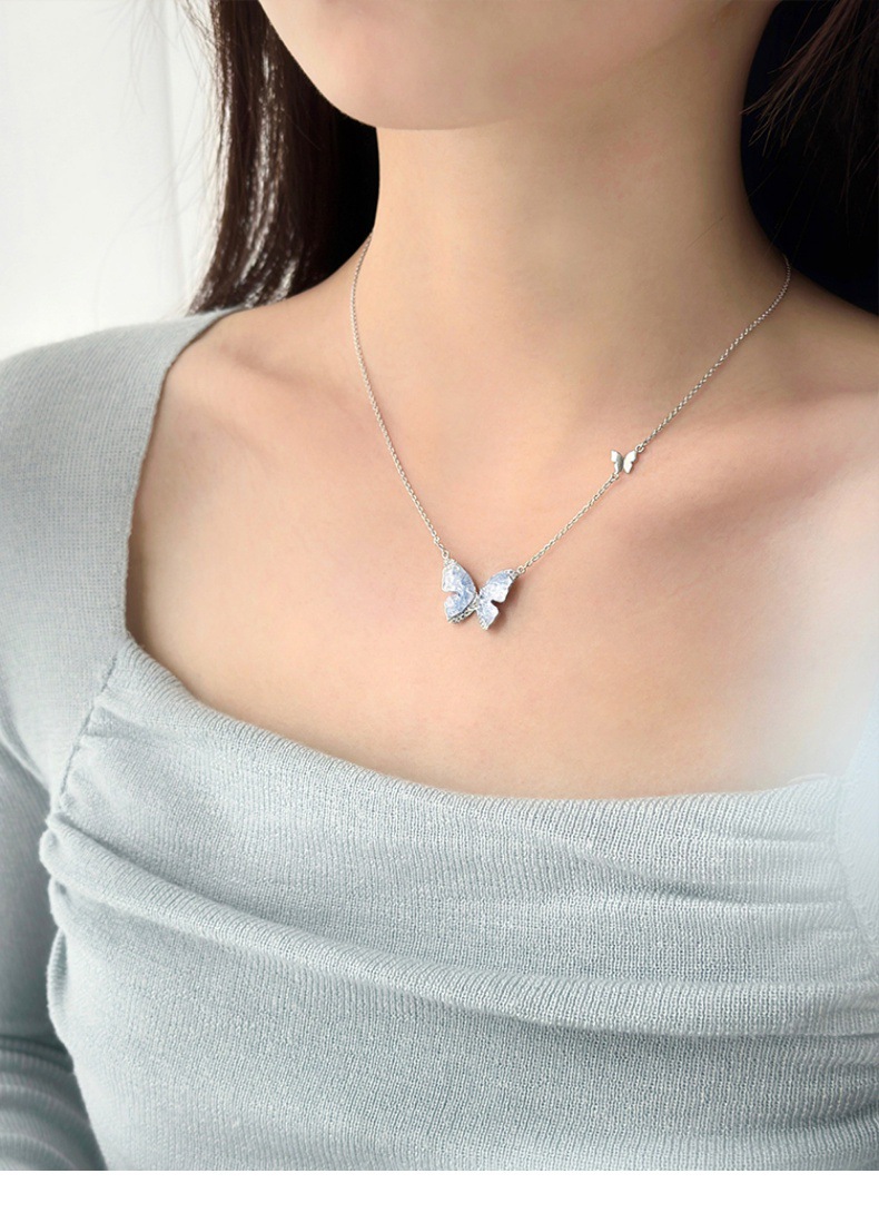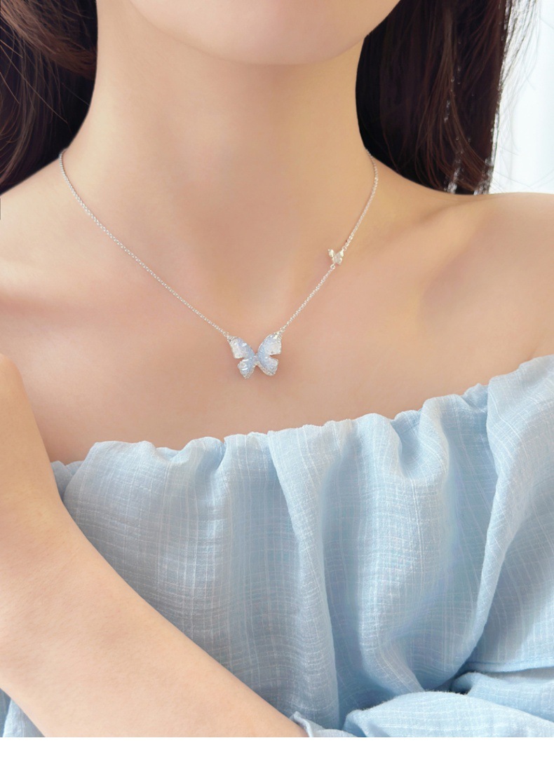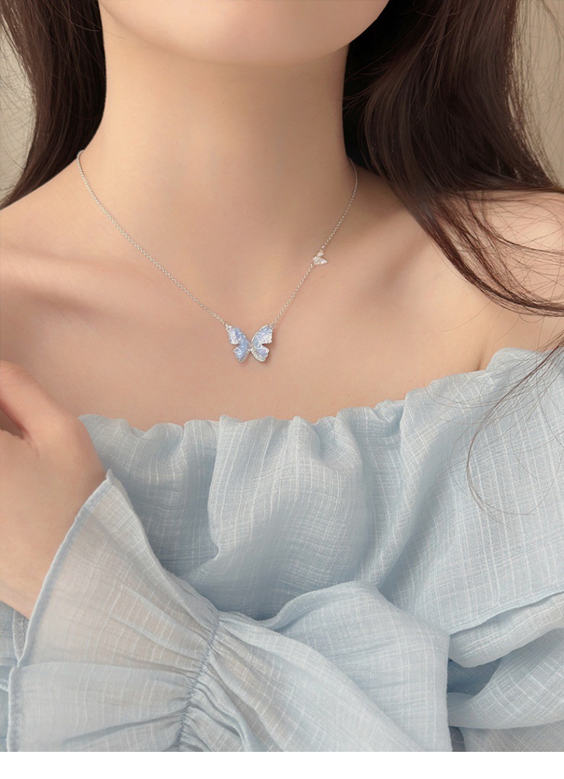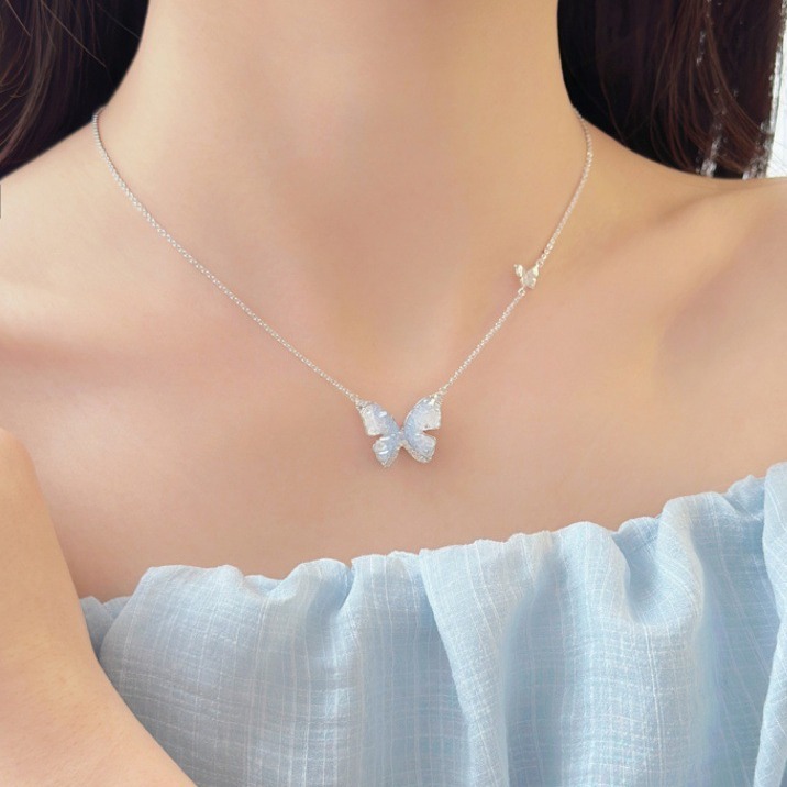夏日蓝晶石蝴蝶项链女锁骨链夏天高级感气质锁骨链爆款颈链气质