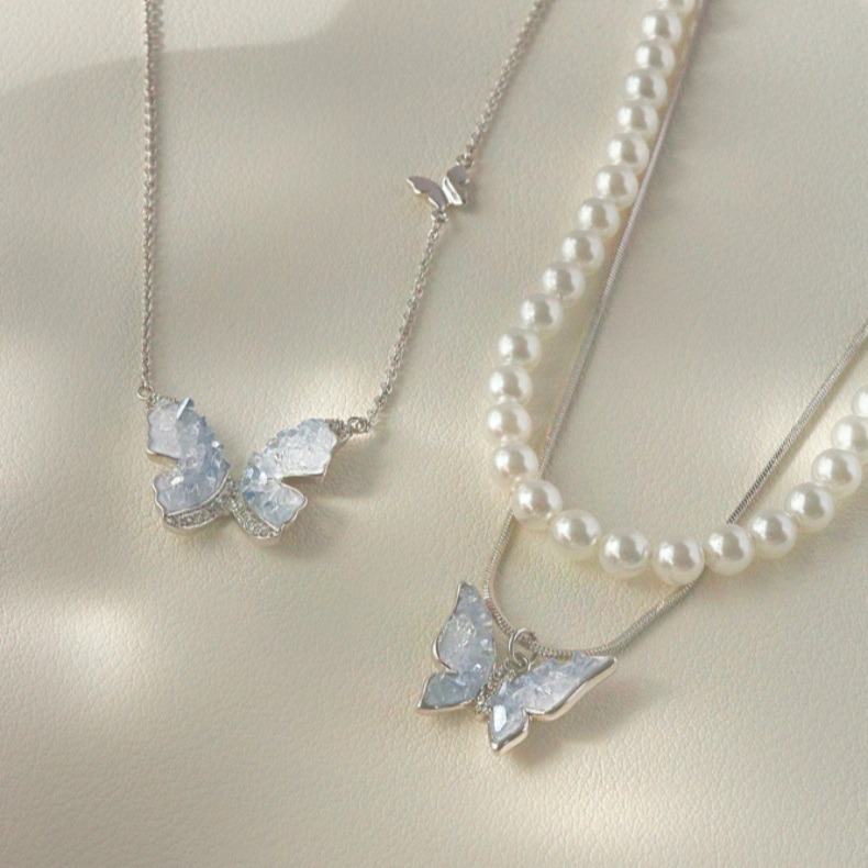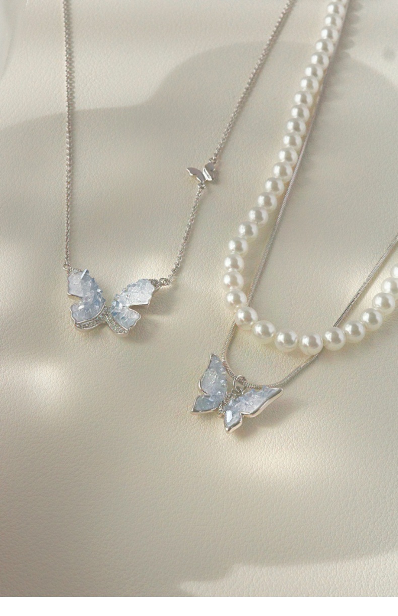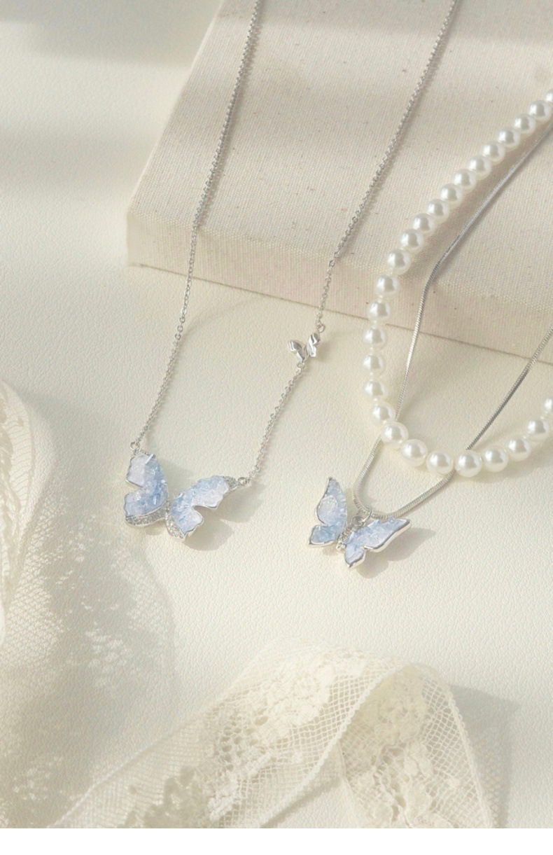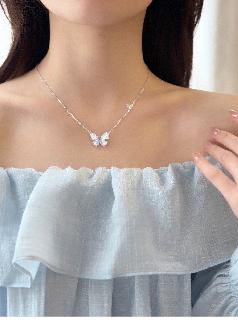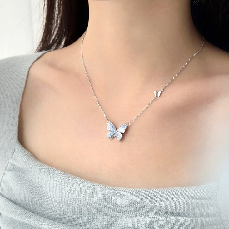 夏日蓝晶石蝴蝶项链女锁骨链夏天高级感气质锁骨链爆款颈链气质