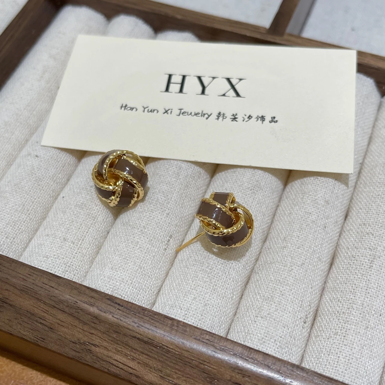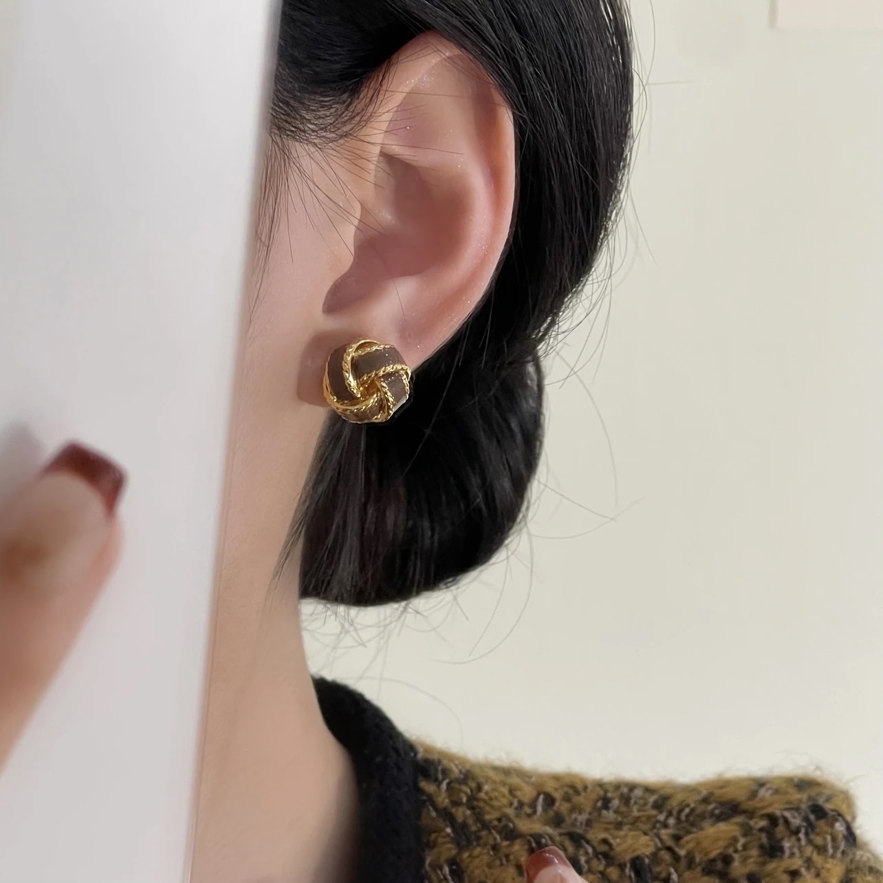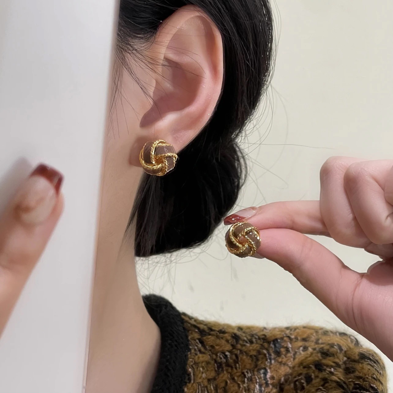 同心结耳钉秋冬复古美拉德咖色缠绕耳钉小众时尚设计感高级耳环