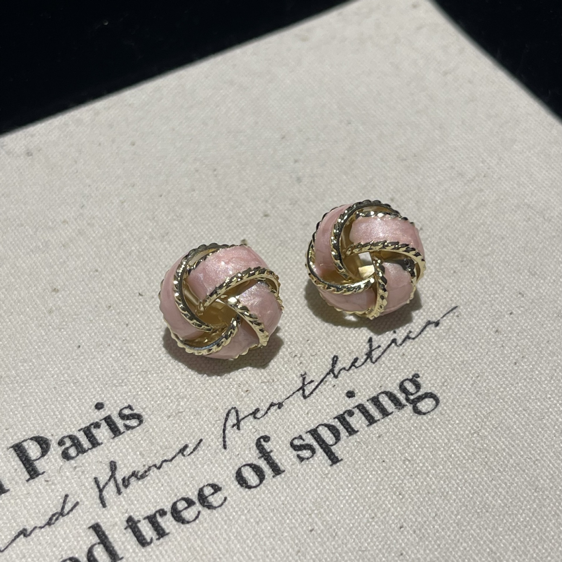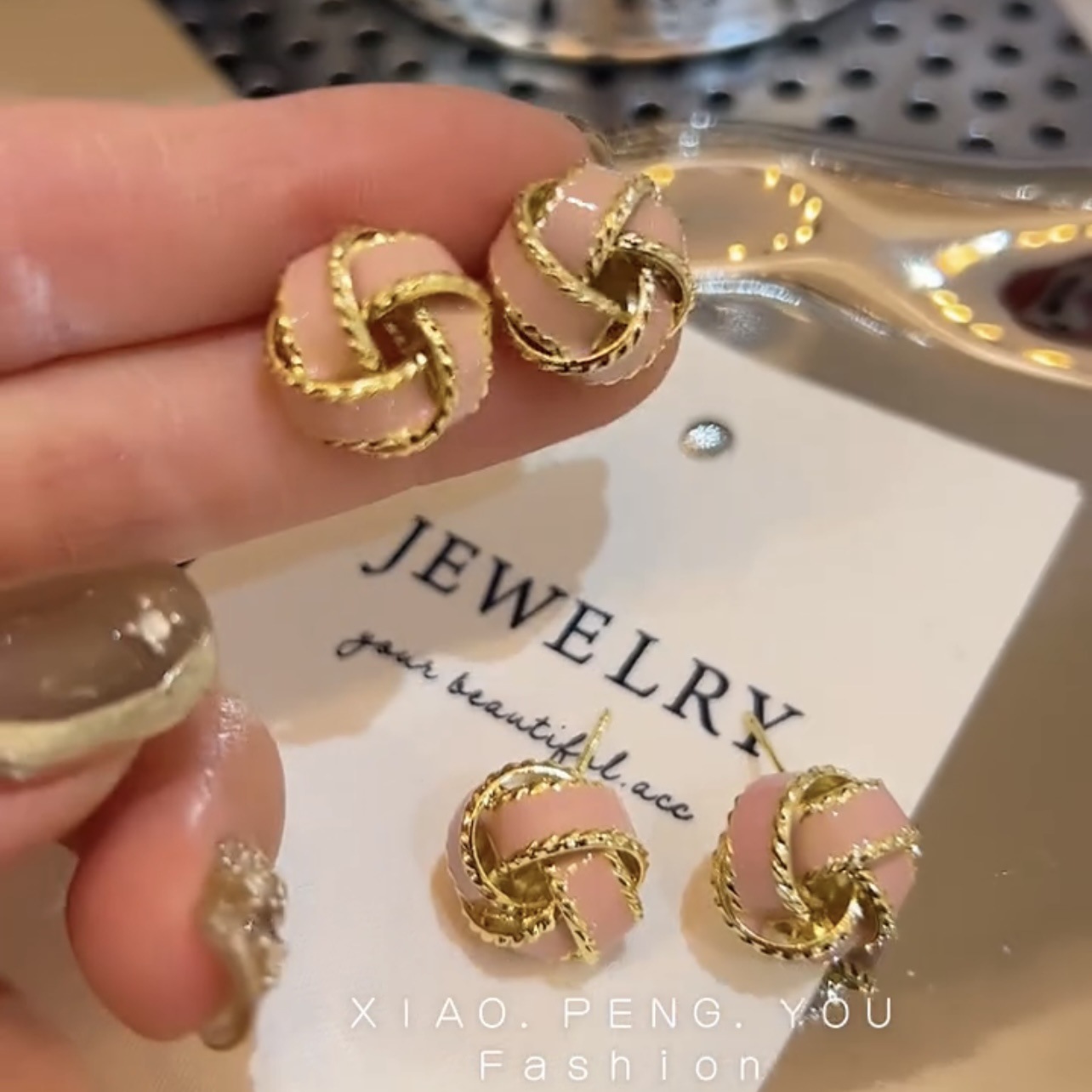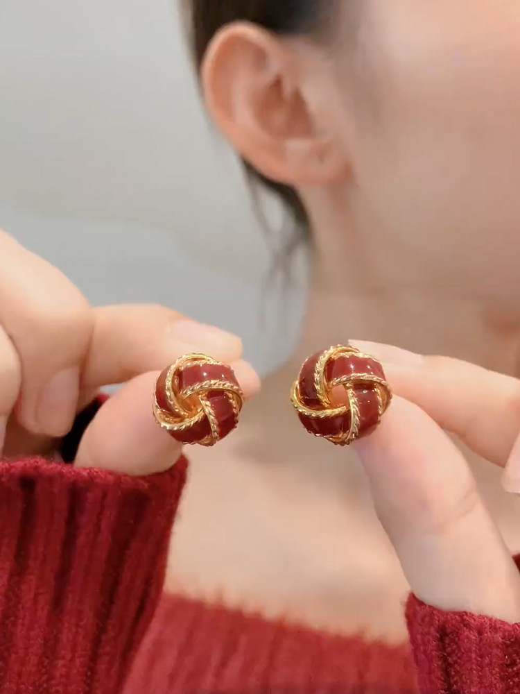 同心结耳钉秋冬复古美拉德咖色缠绕耳钉小众时尚设计感高级耳环