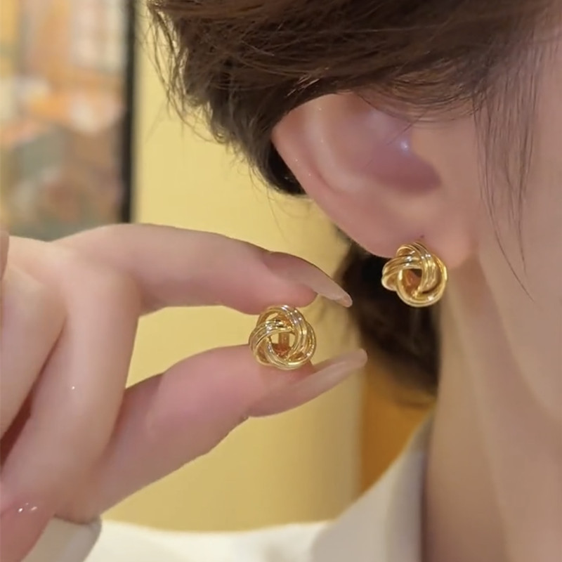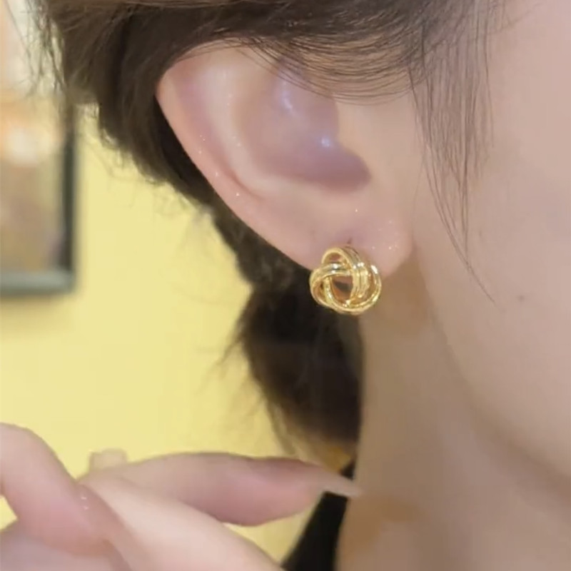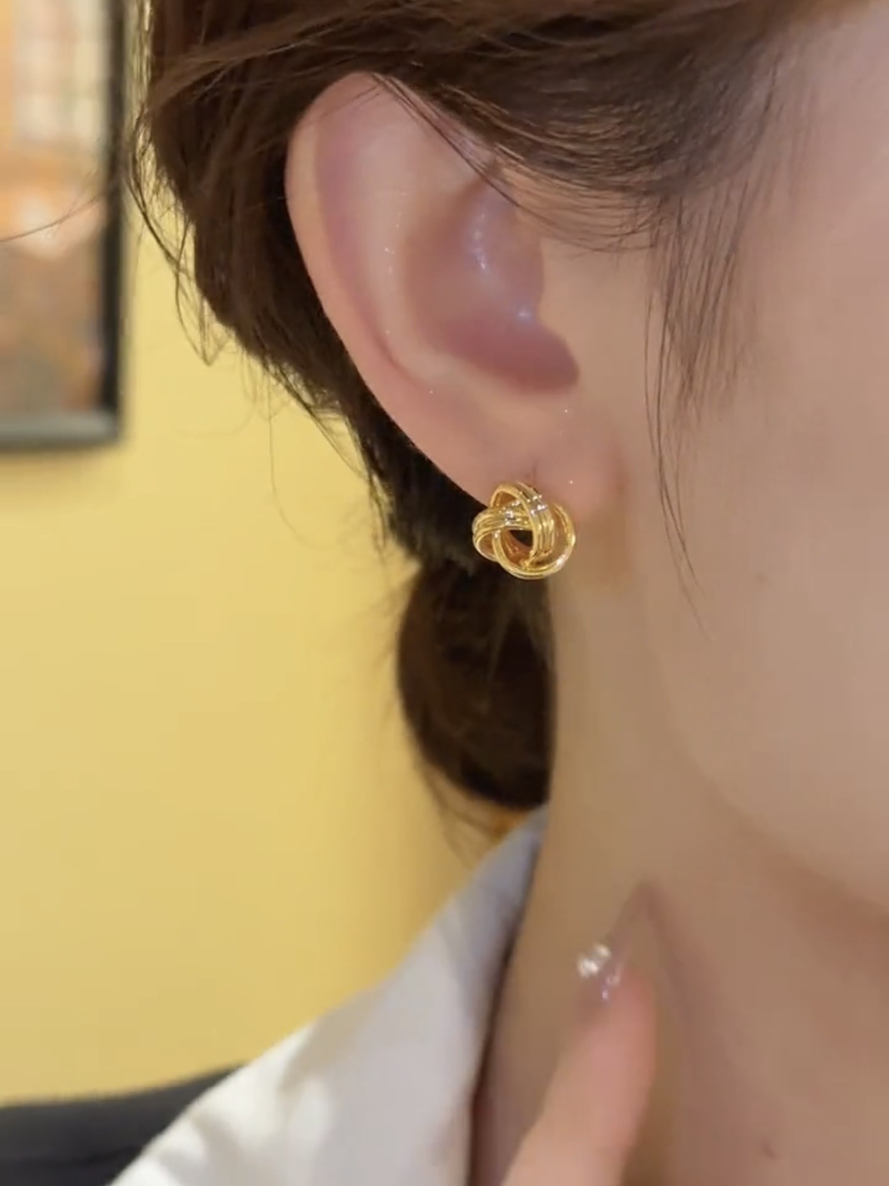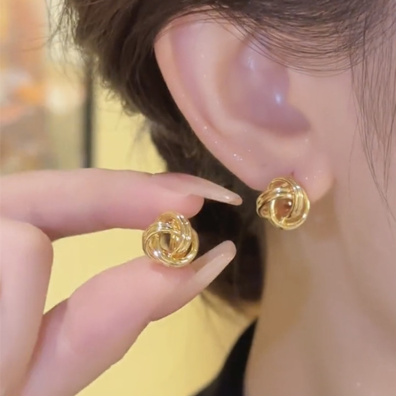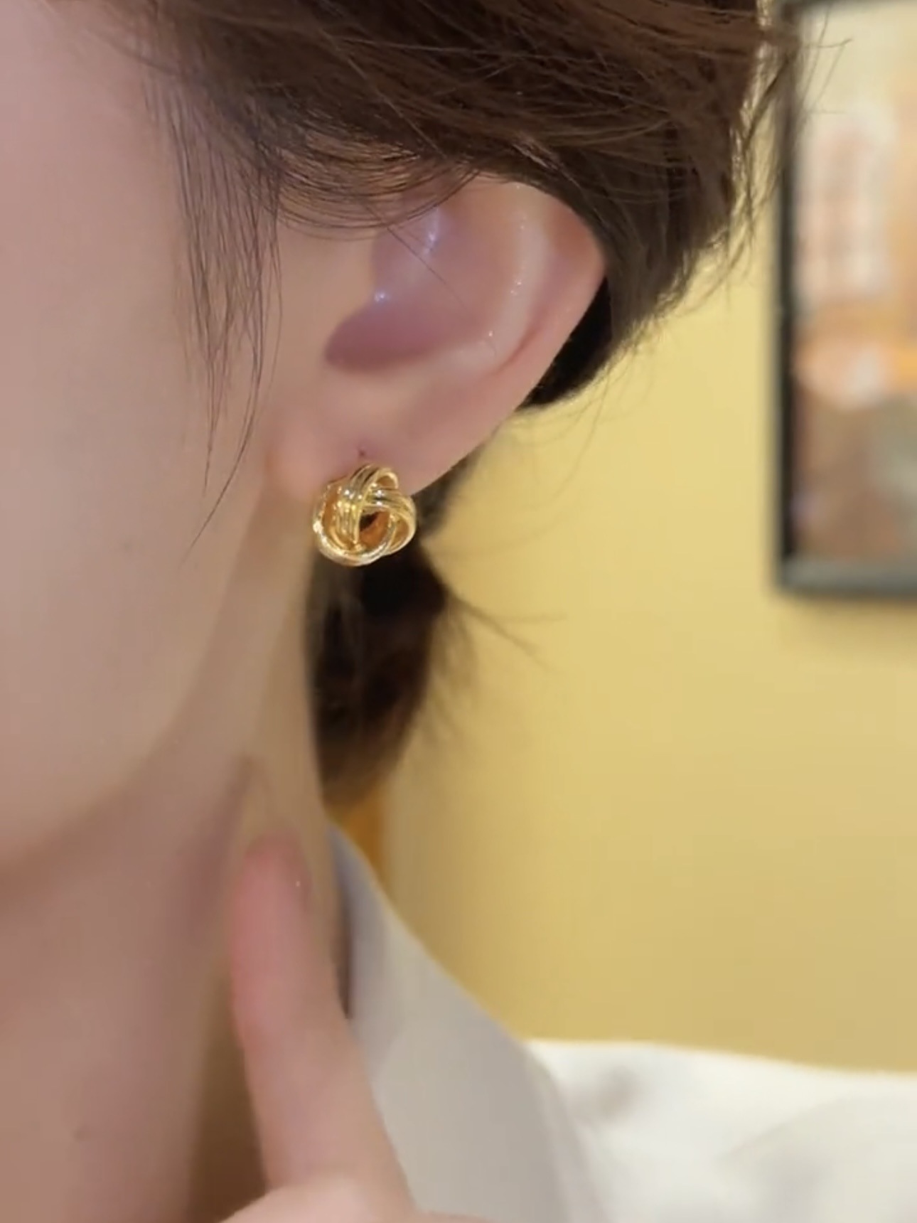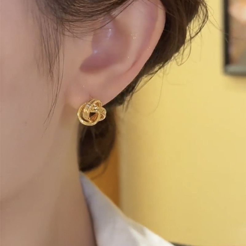 金属缠绕打结耳钉S925银针麻花圈小耳钉女法式精致小巧耳环耳饰