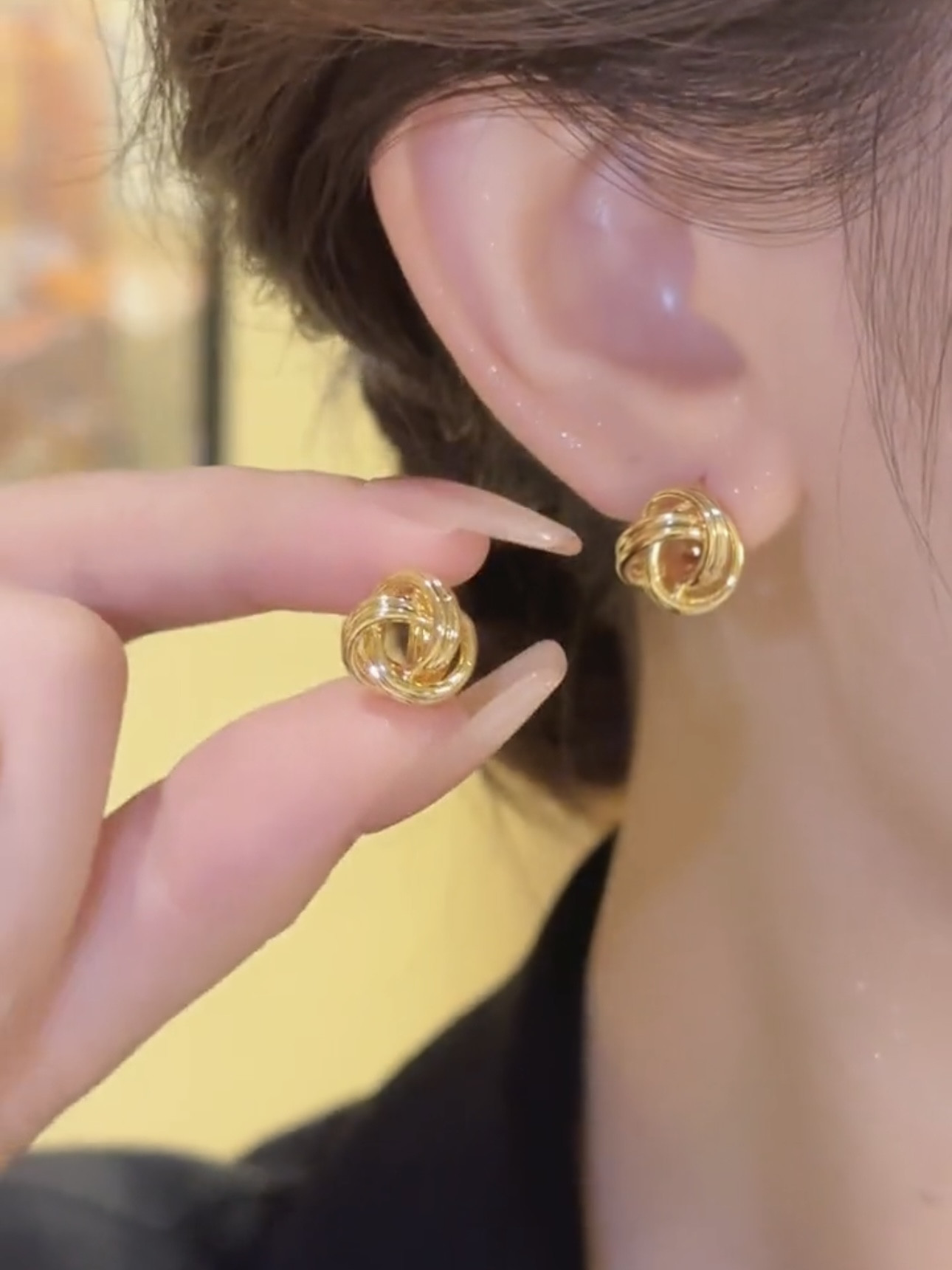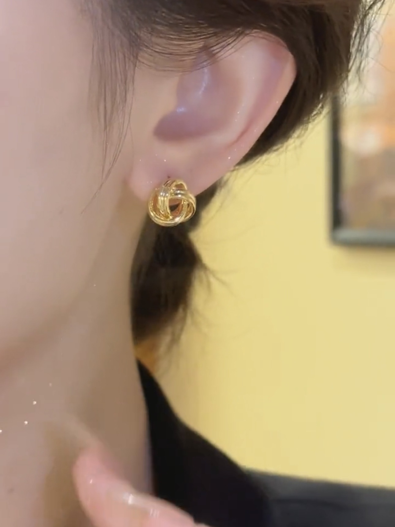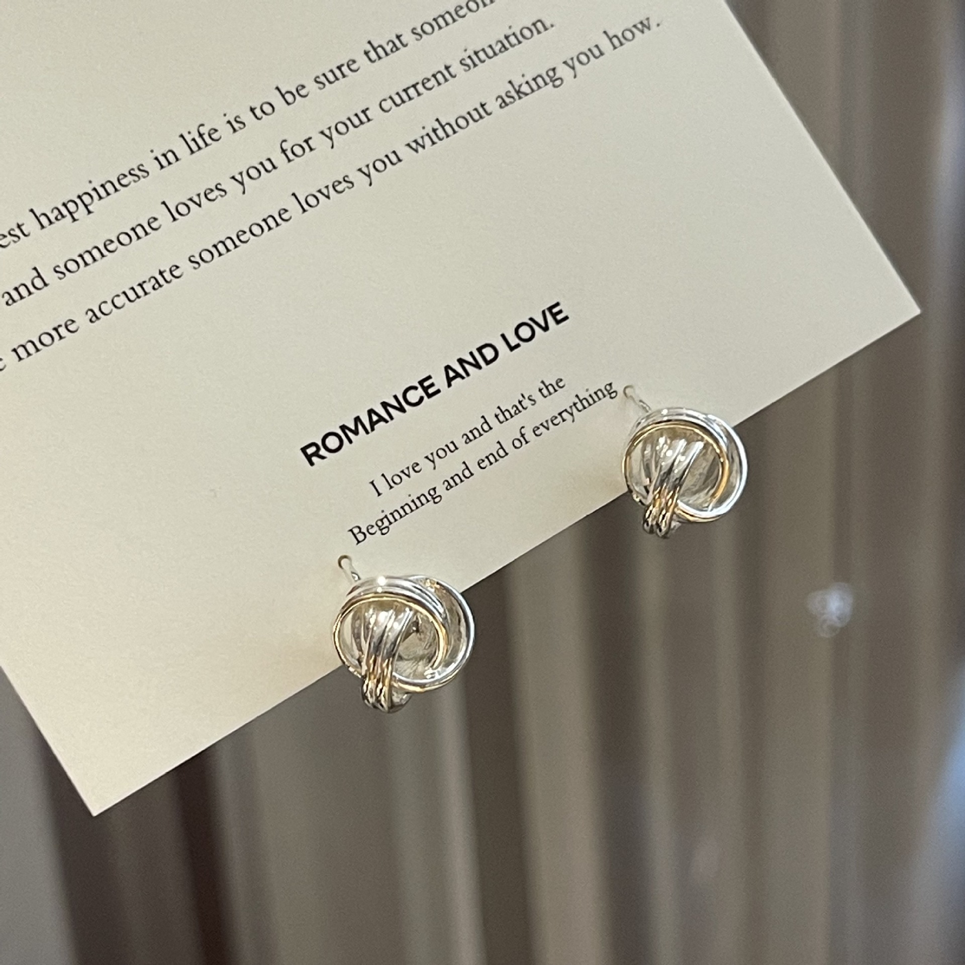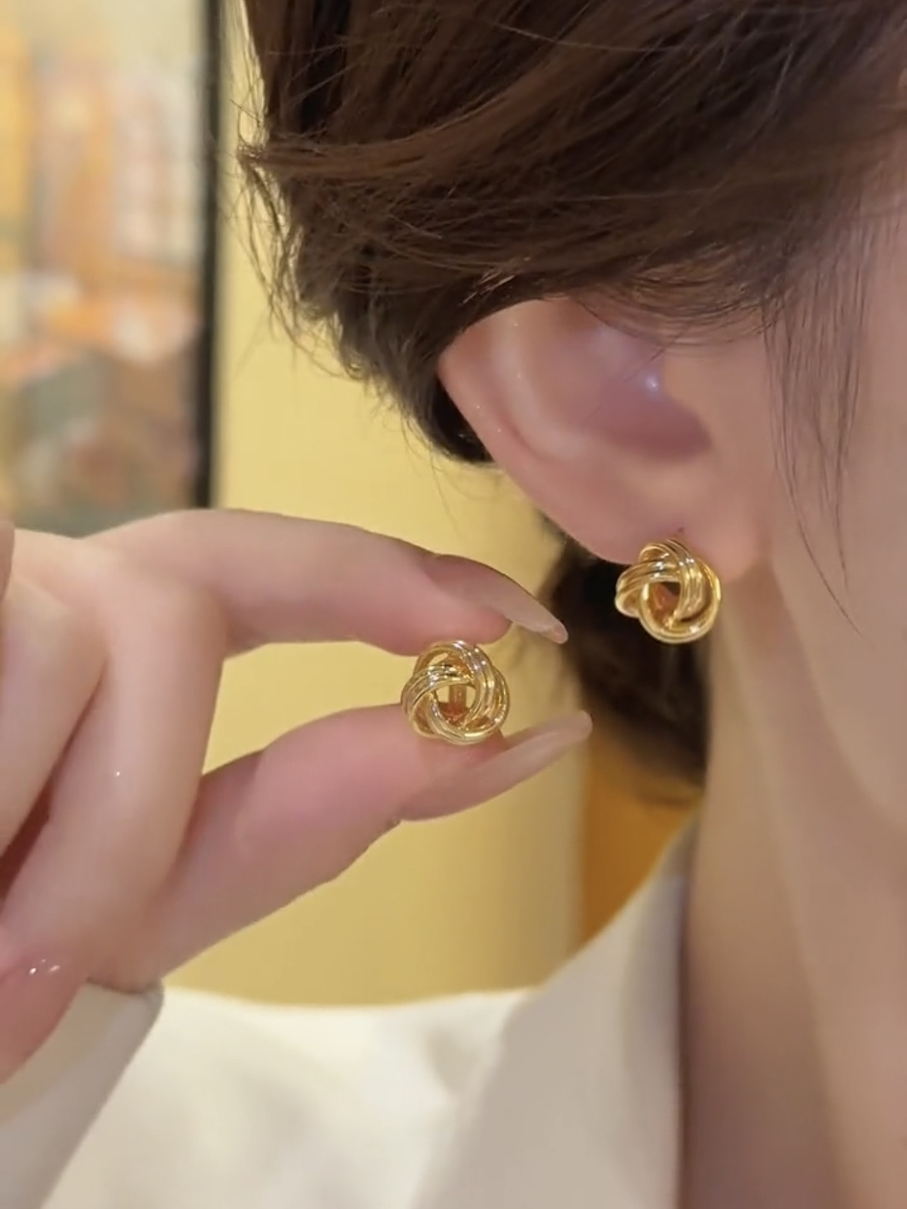 金属缠绕打结耳钉S925银针麻花圈小耳钉女法式精致小巧耳环耳饰