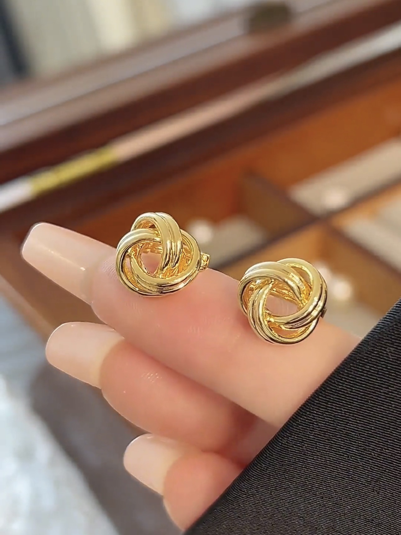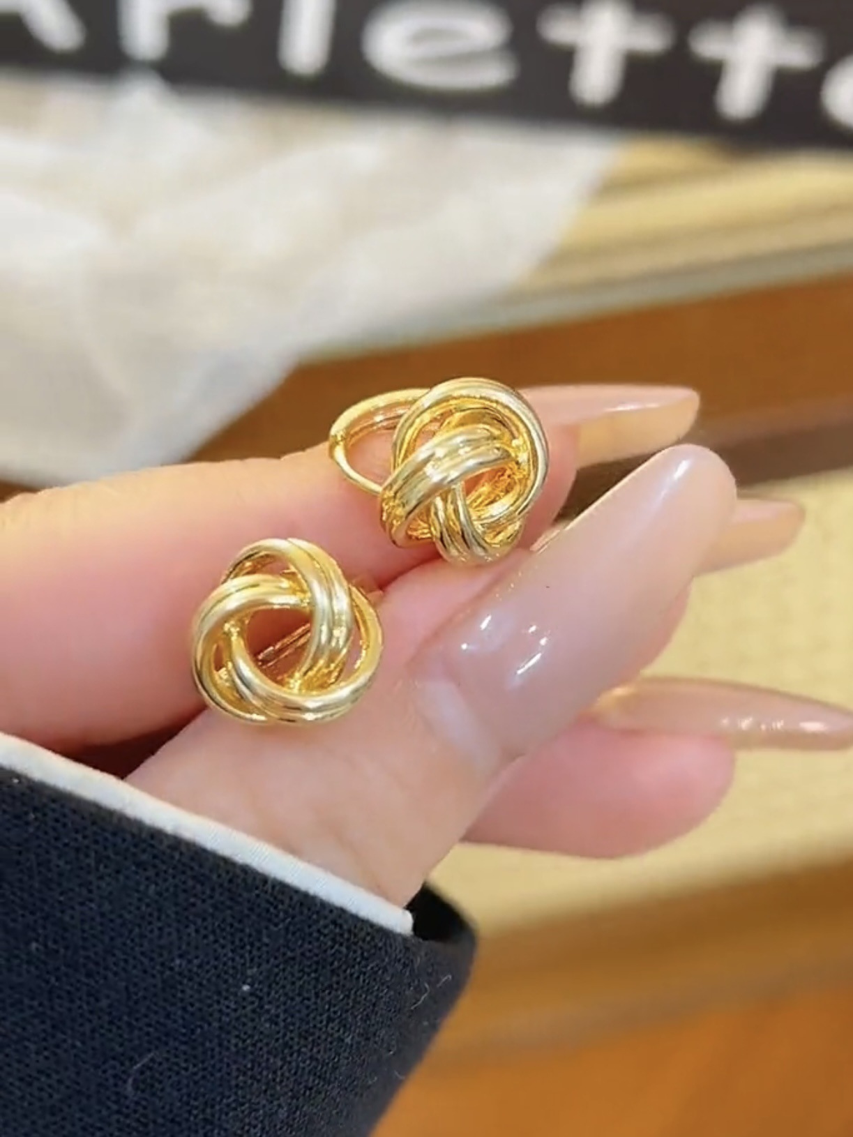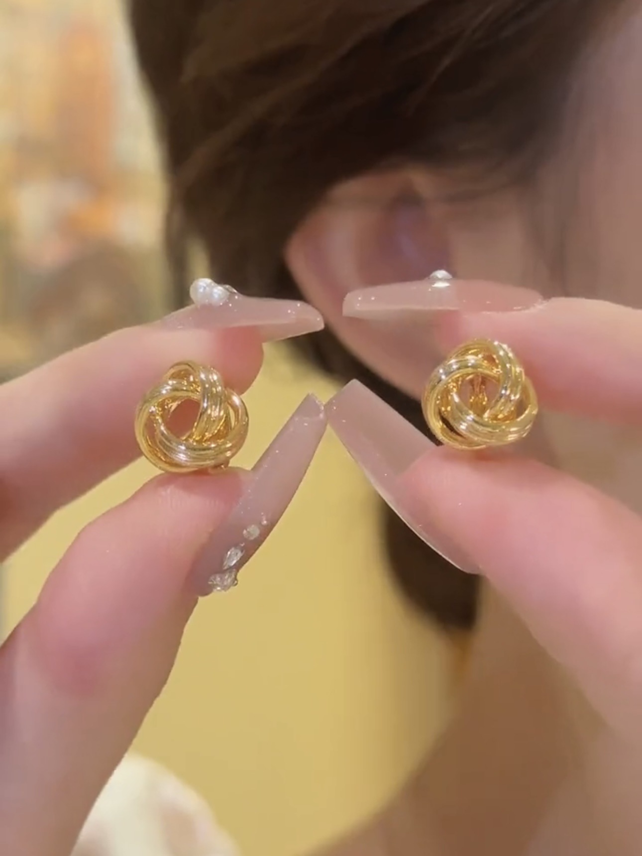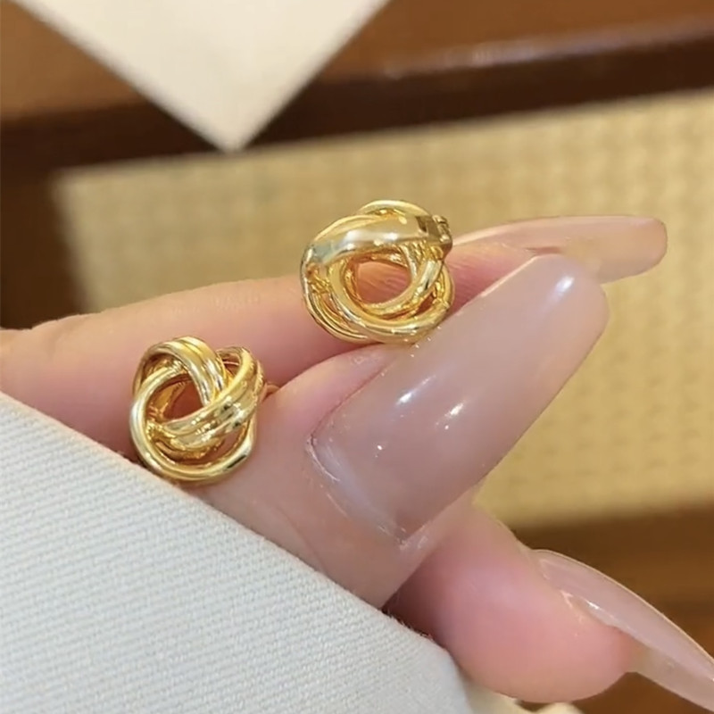 金属缠绕打结耳钉S925银针麻花圈小耳钉女法式精致小巧耳环耳饰
