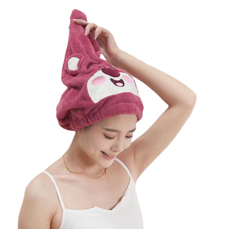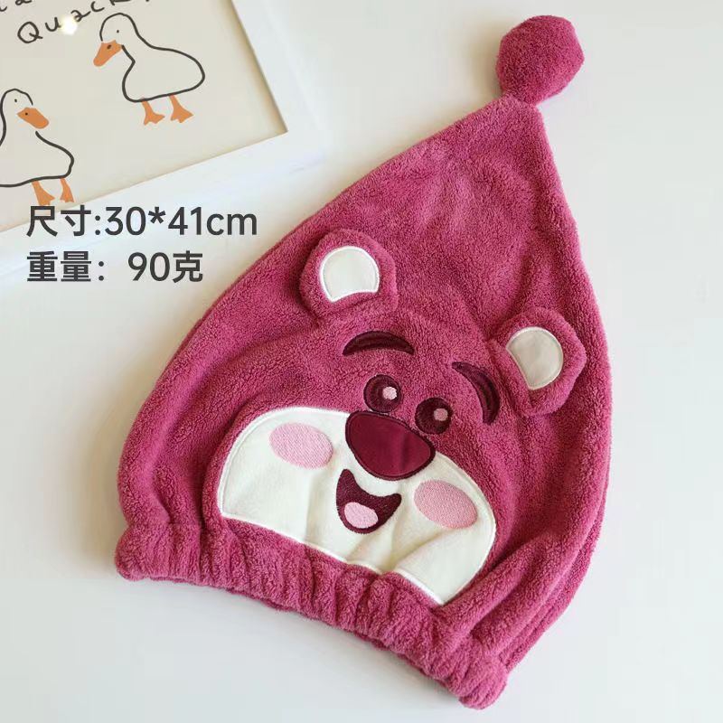 卡通草莓熊干发帽女可爱高颜值加厚浴帽吸水速干套头擦头发干发巾