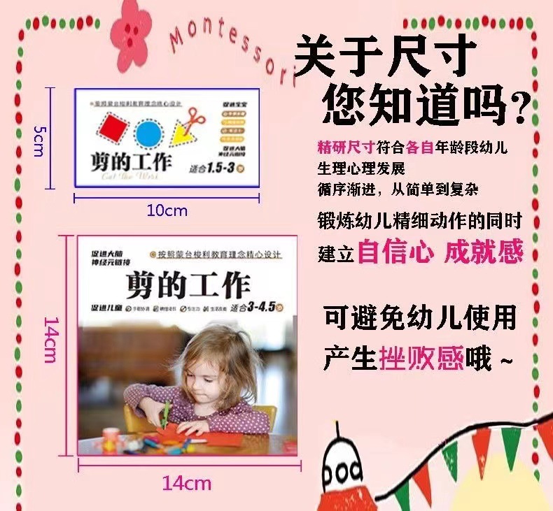 蒙氏剪的工作幼儿园剪纸手工儿童2岁宝宝入门玩diy制作材料包卡纸