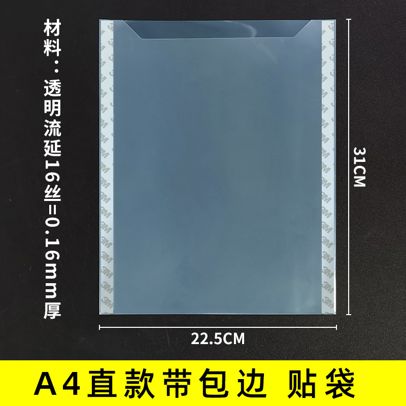 贴袋 文件资料可粘贴袋子信息通知栏公告栏证件卡套 不干胶A4挂袋