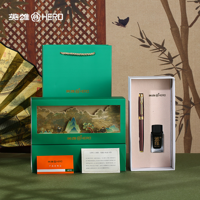 英雄钢笔官方正品1519商务成人学生练字专用套装批发送礼logo刻字