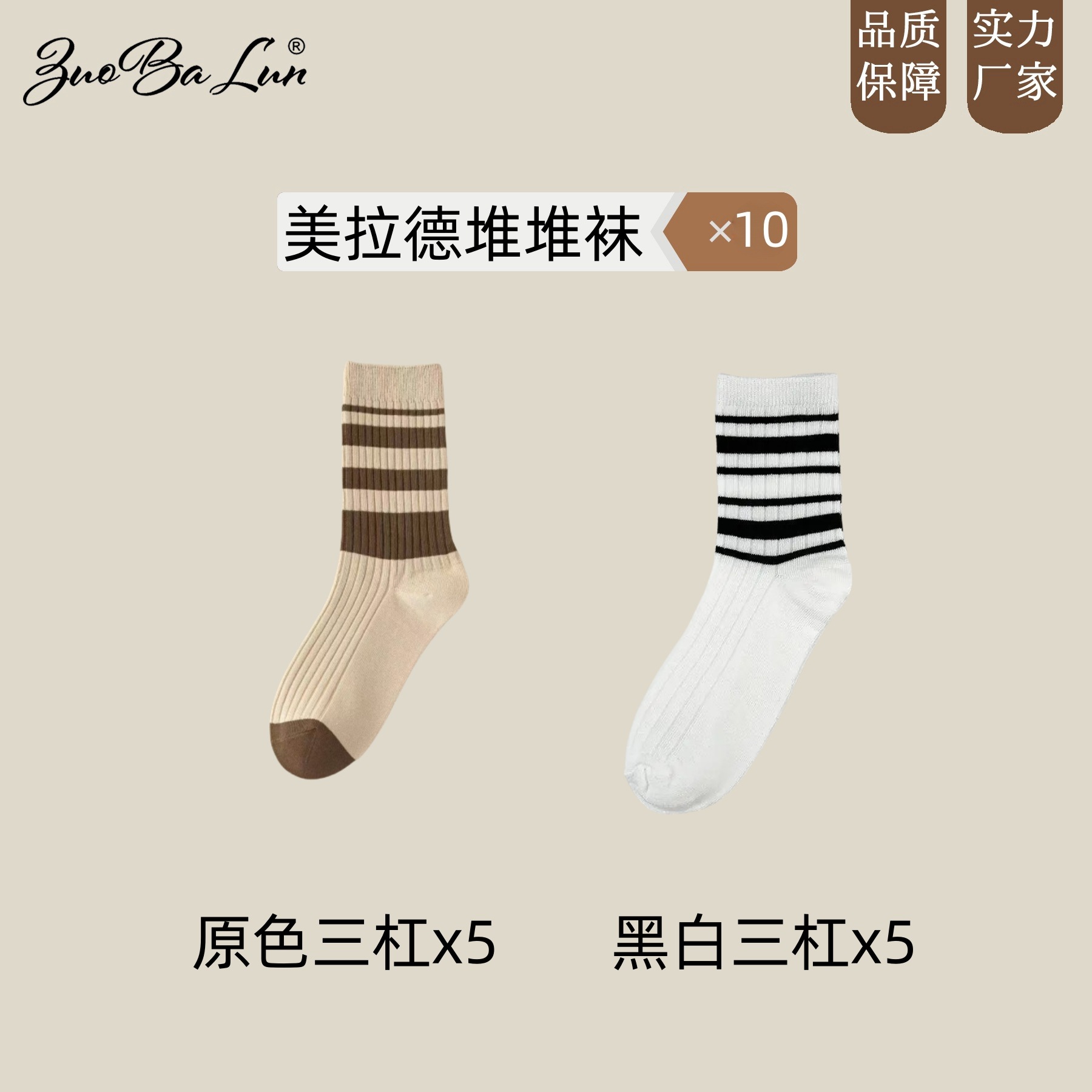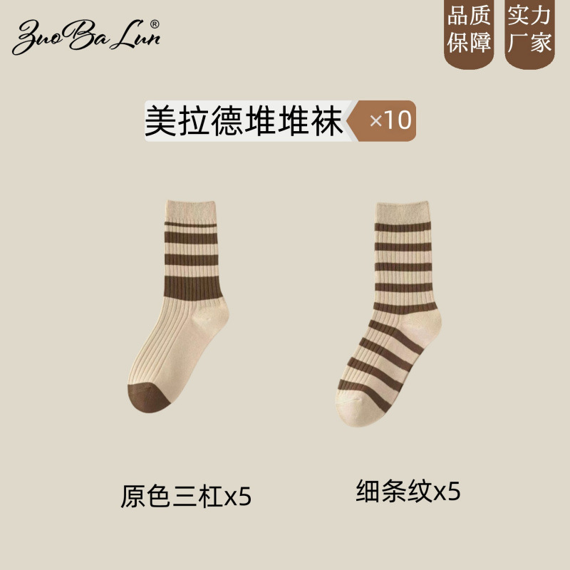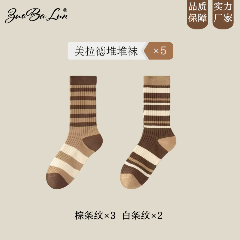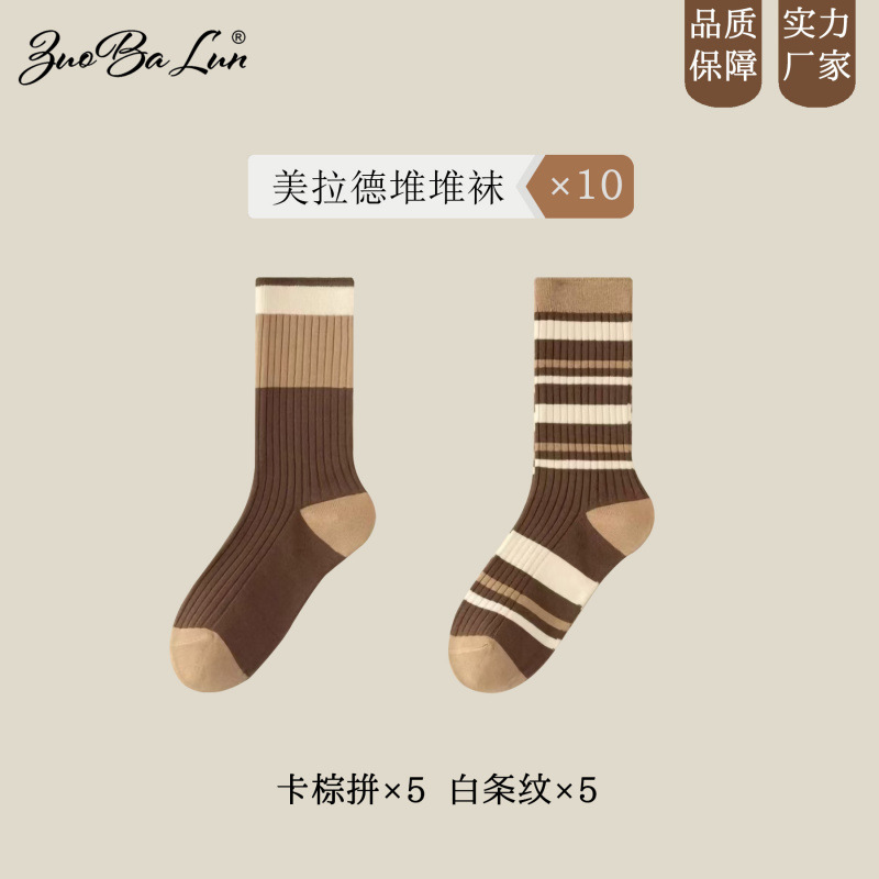 美拉德高筒堆堆袜女撞色春秋ins日系条纹袜子秋冬女士中筒袜批发