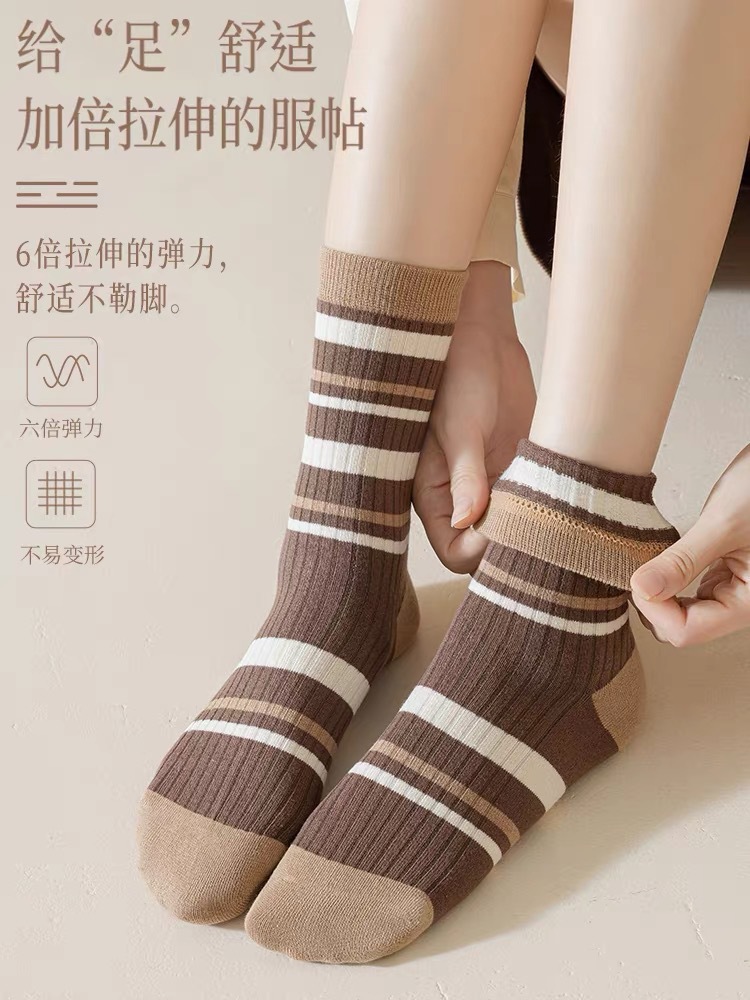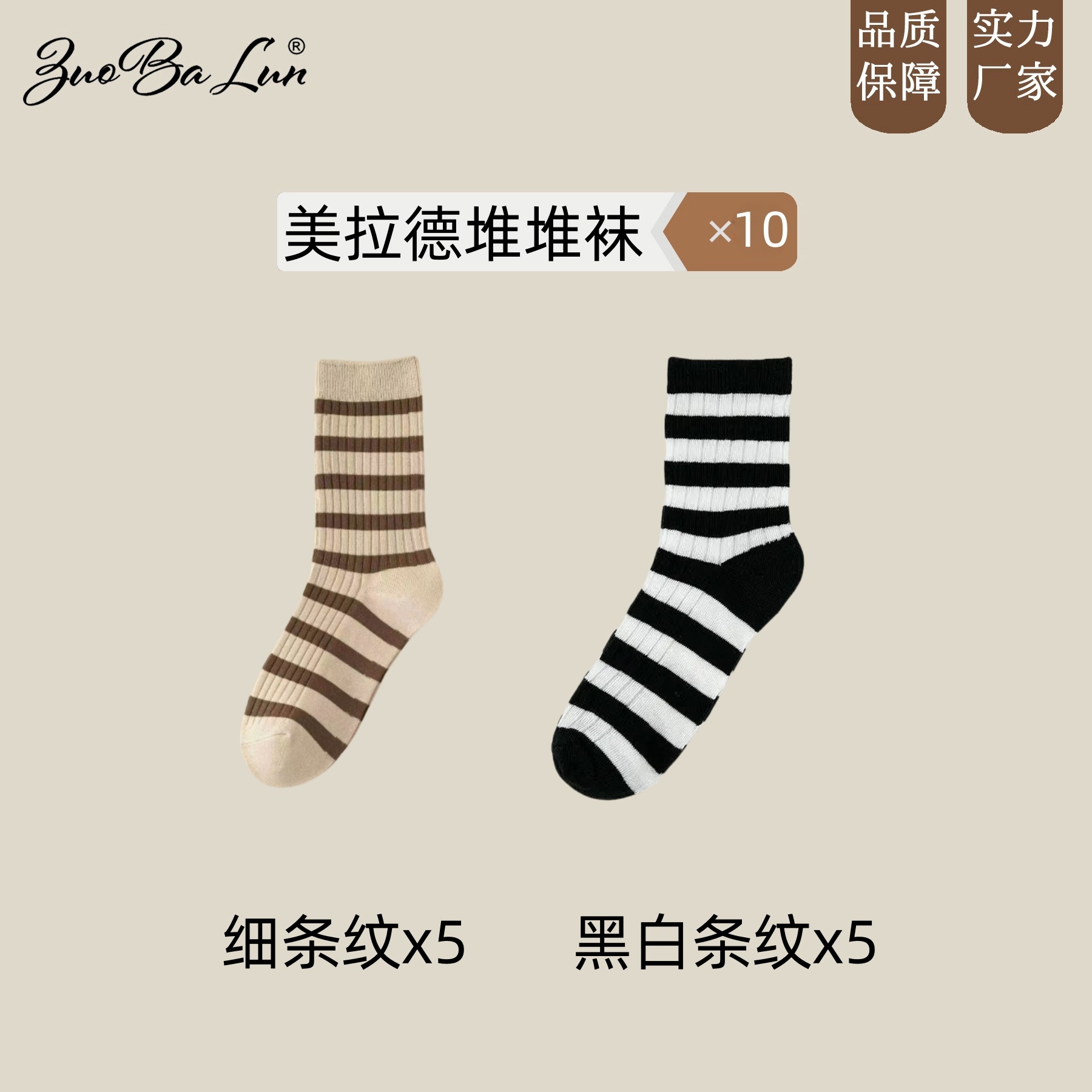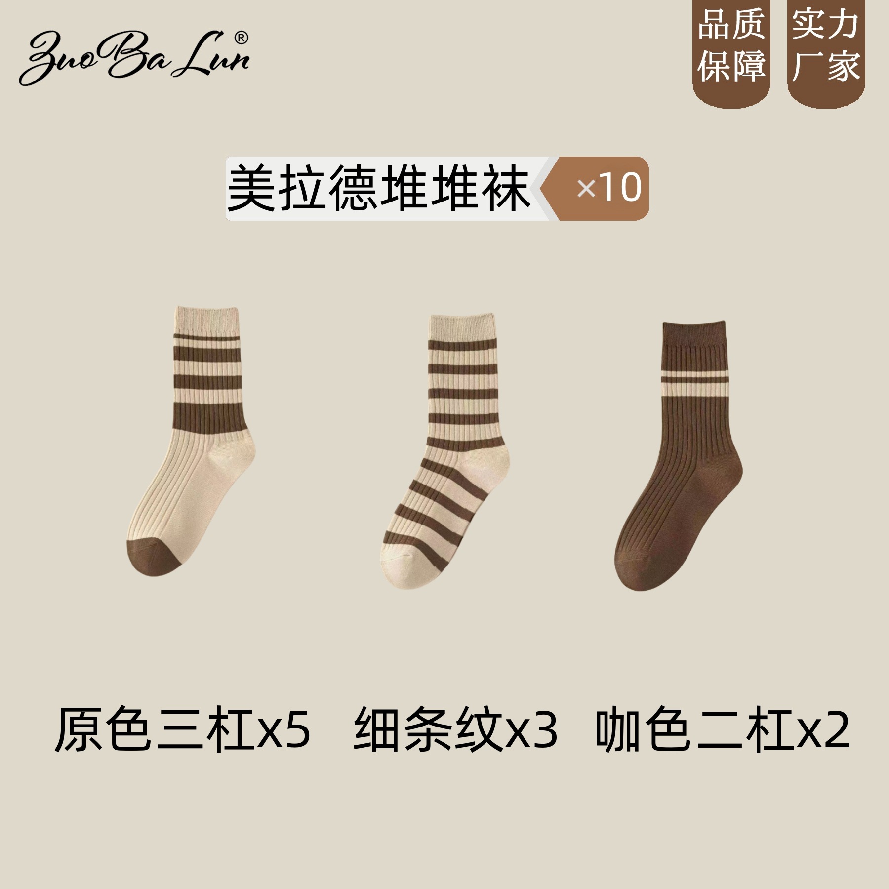美拉德高筒堆堆袜女撞色春秋ins日系条纹袜子秋冬女士中筒袜批发