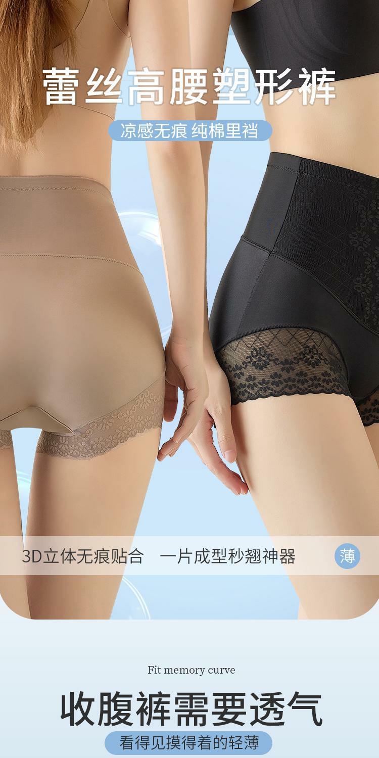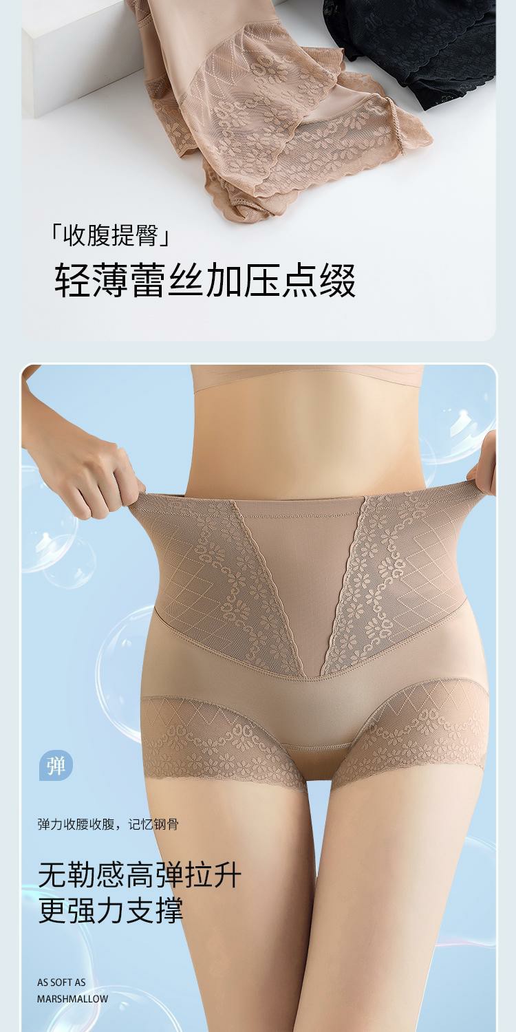 梦夏同款高腰提臀塑身收腹裤女无痕透气蕾丝高弹塑形美体打底内裤