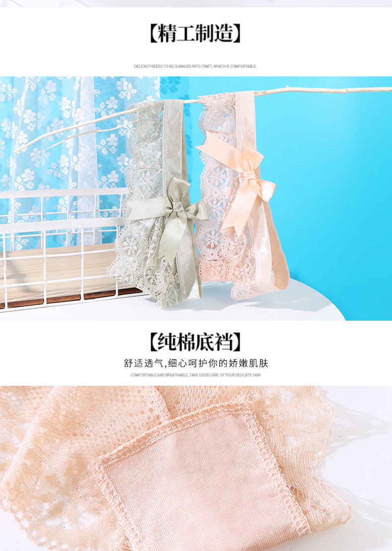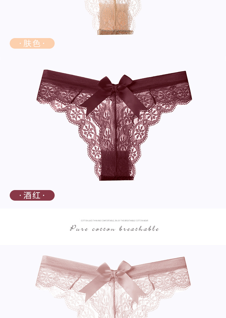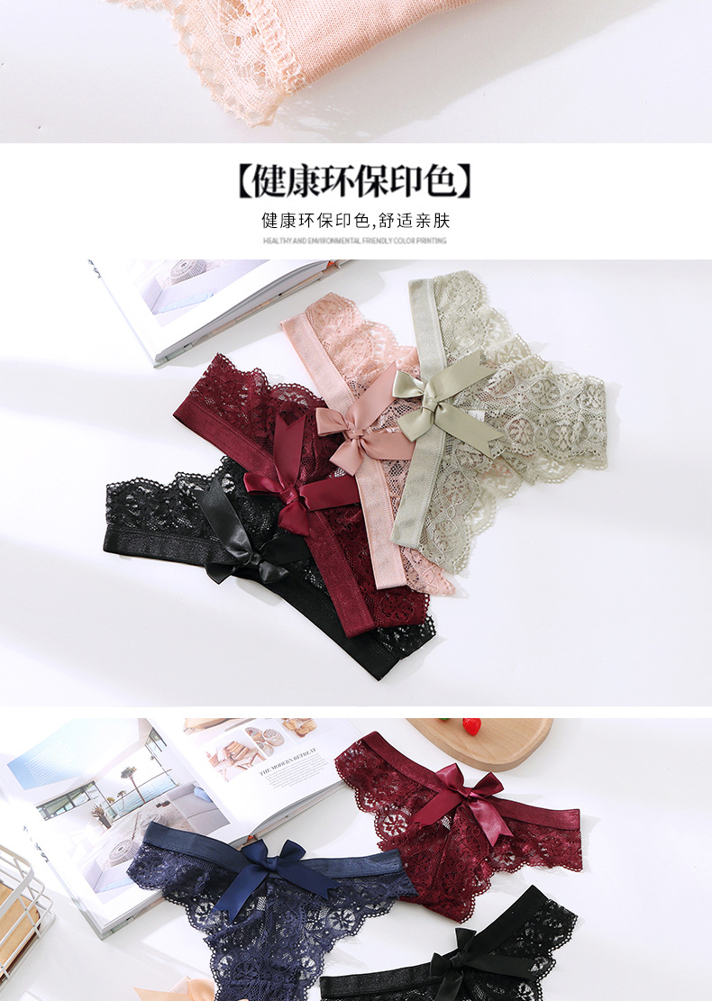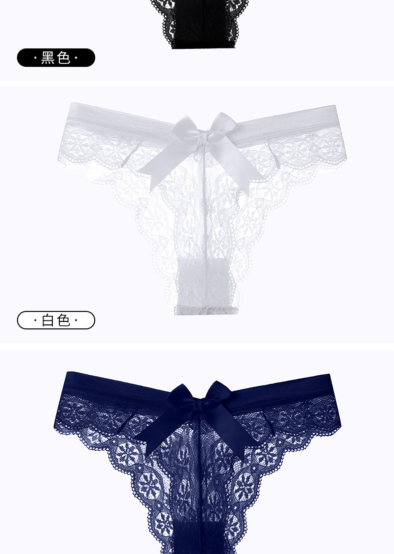 性感蕾丝丁字裤女透明镂空情趣运动低腰无痕女士三角裤蝴蝶结T裤