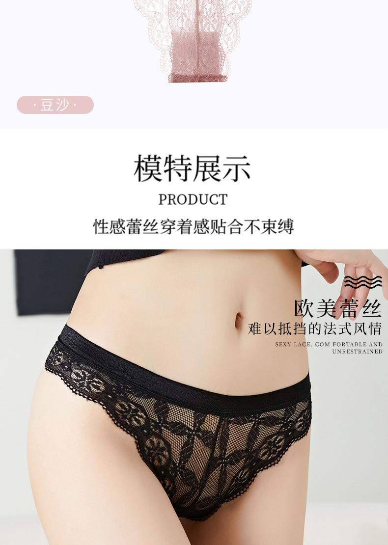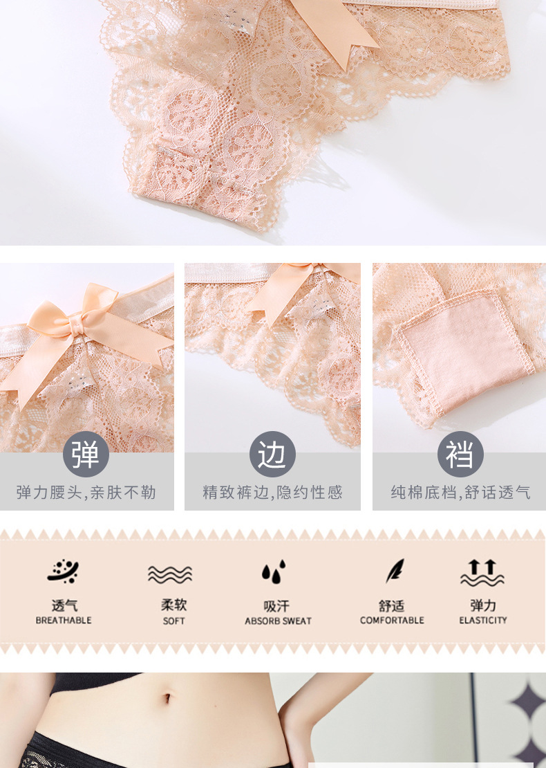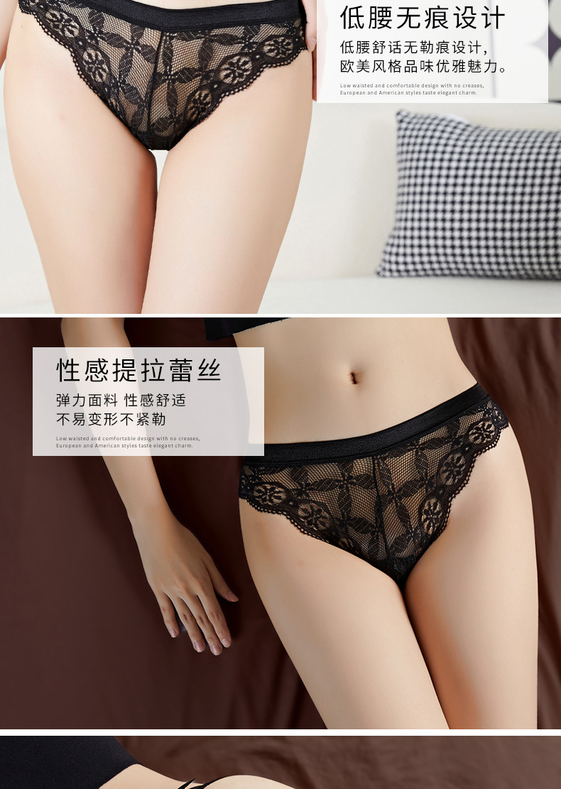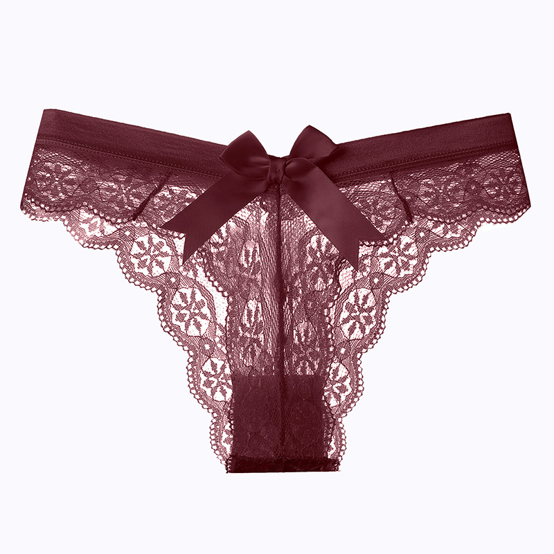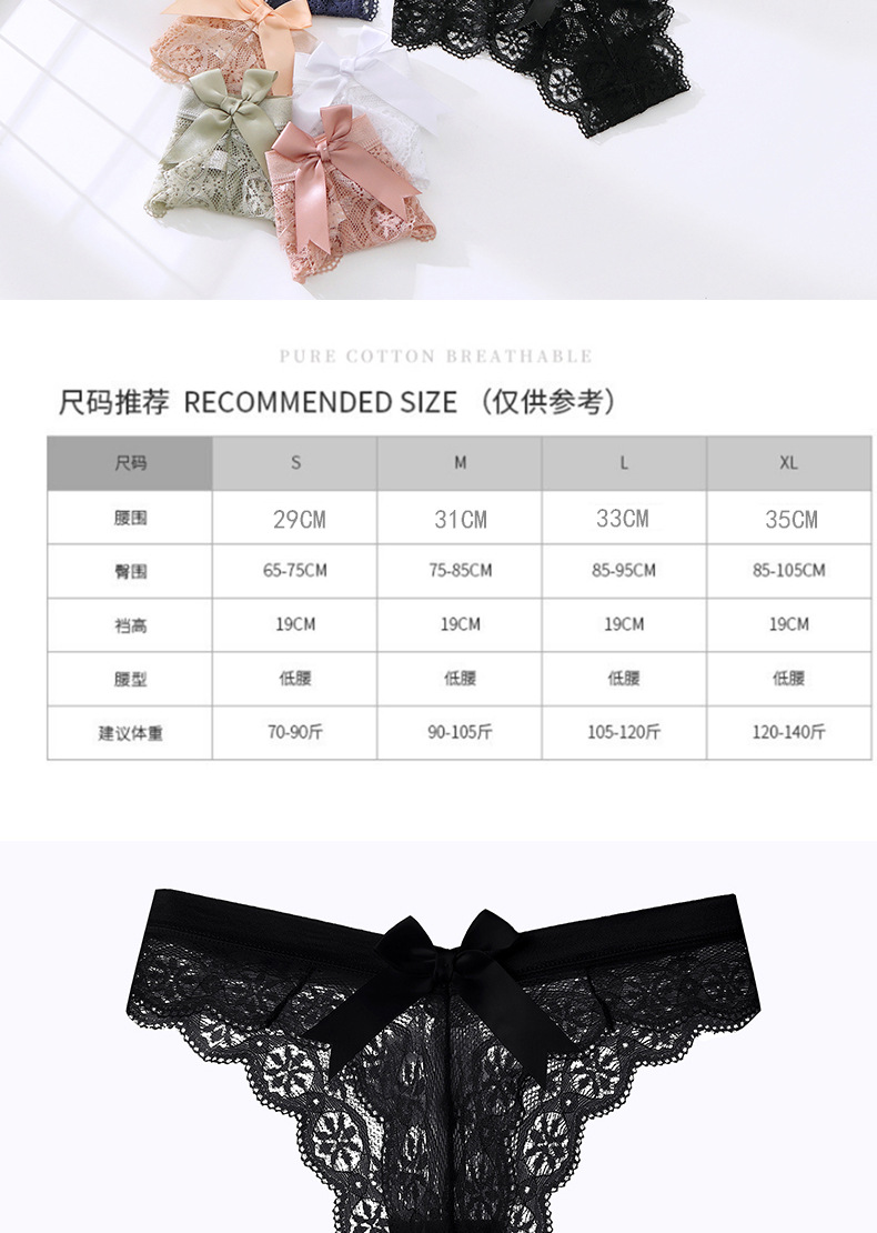 性感蕾丝丁字裤女透明镂空情趣运动低腰无痕女士三角裤蝴蝶结T裤
