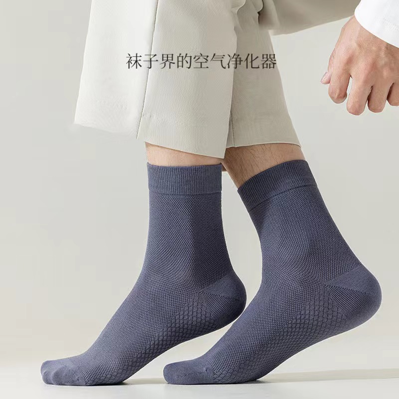 男士中筒袜夏季透气网眼吸汗排汗薄款男运动袜中筒袜防臭短筒男袜