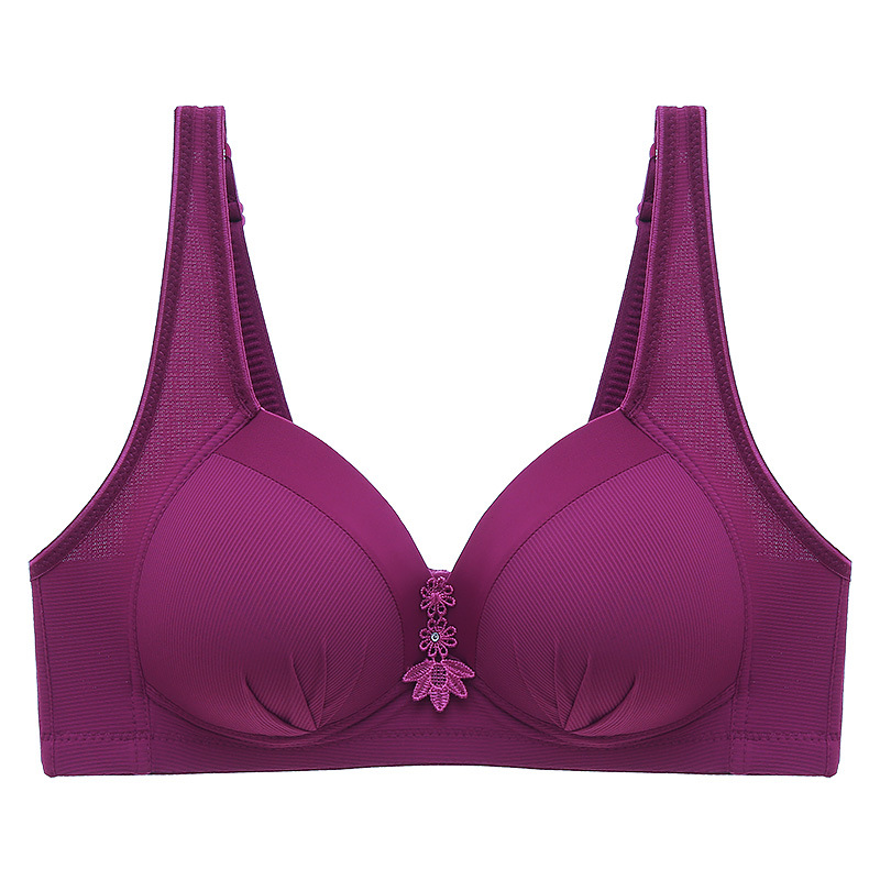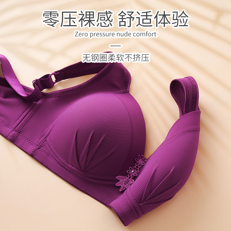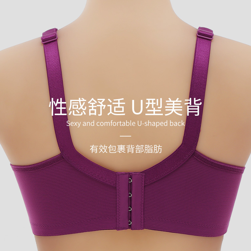 厂家直供大码光面无钢圈聚拢内衣薄模杯四排扣大胸显小调整型文胸
