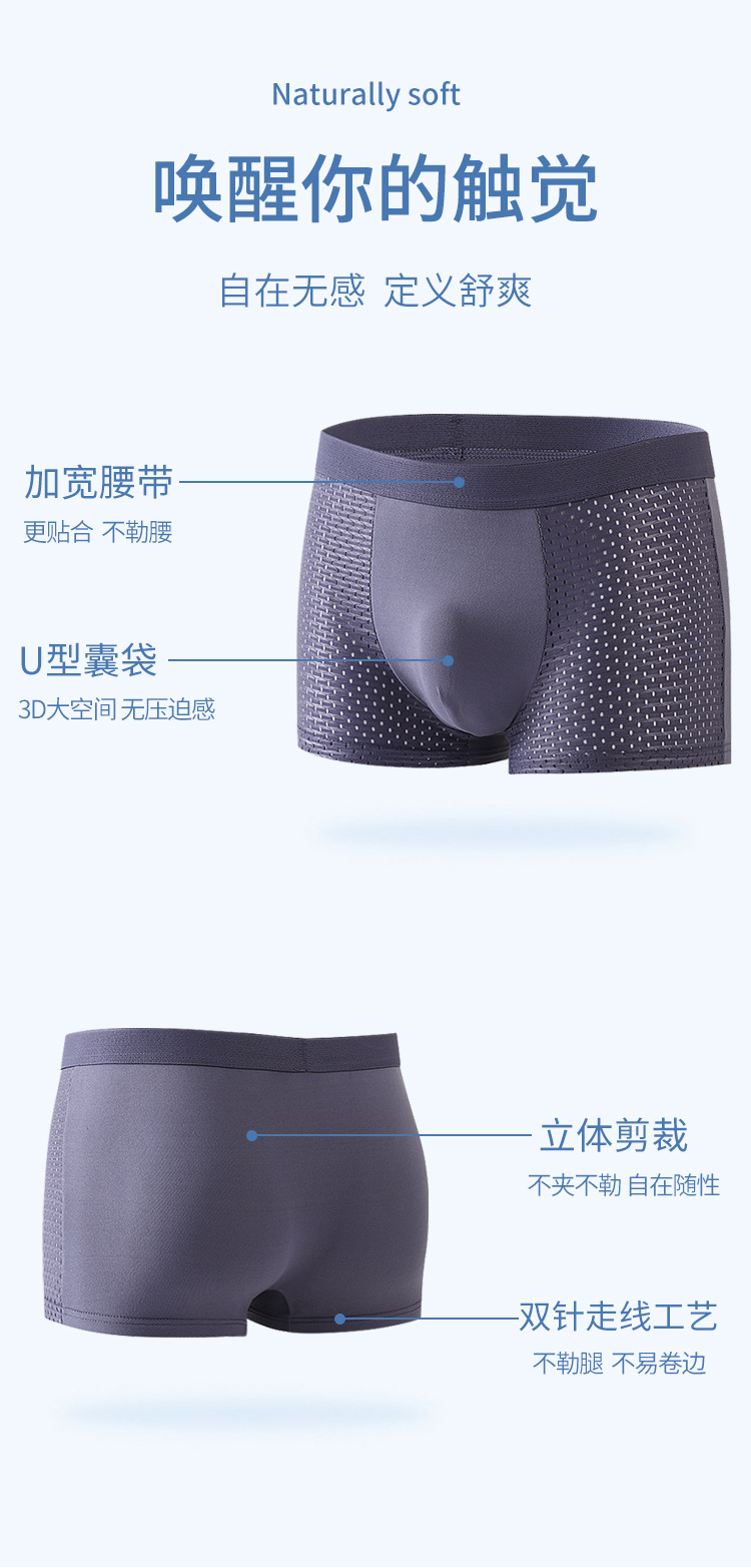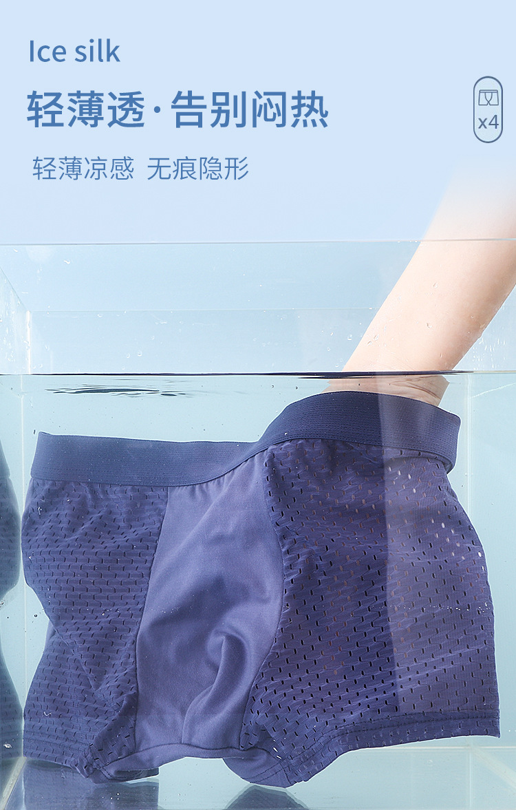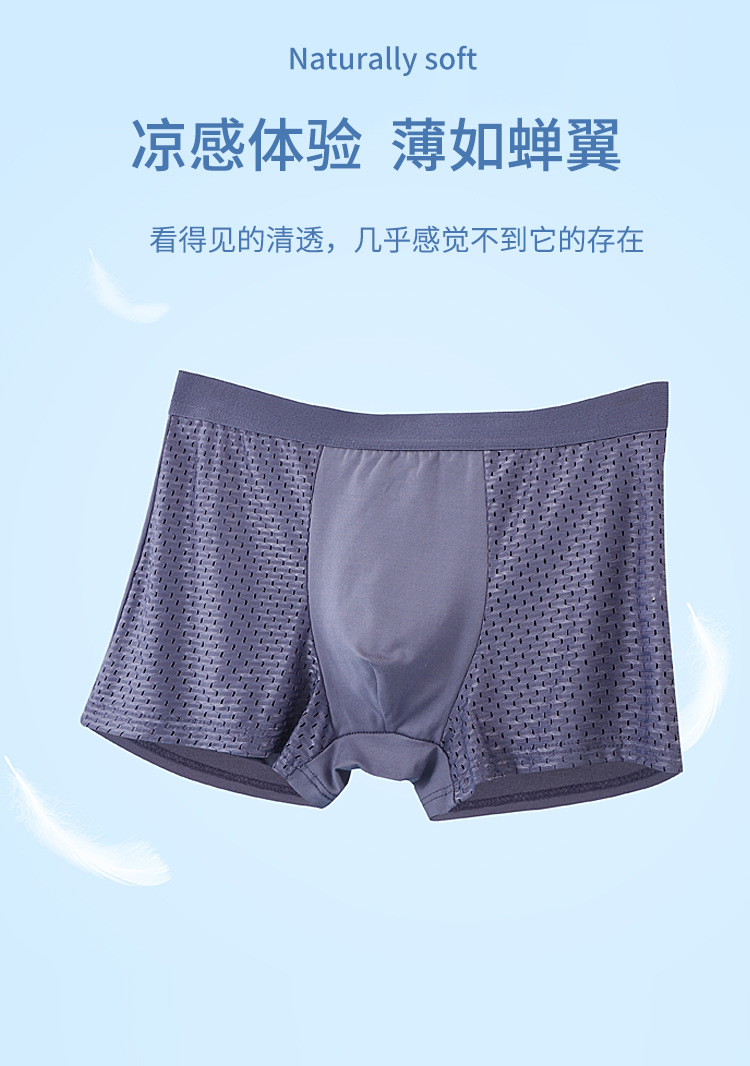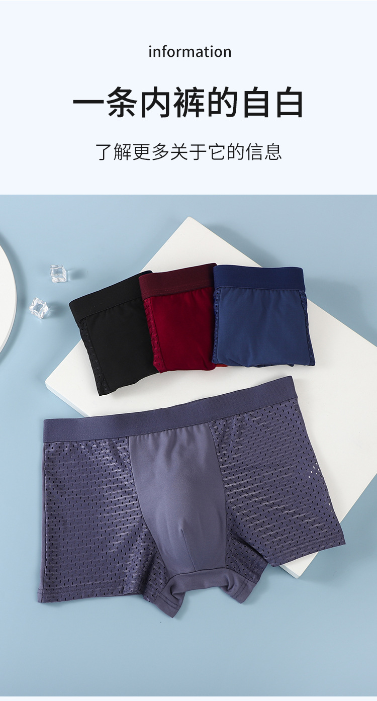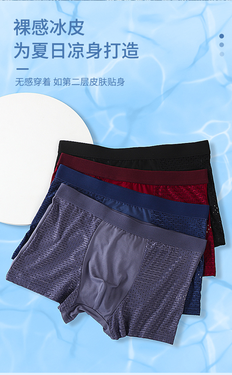 直播热销厂家直销时尚冰丝网孔男裤透气男士平角内裤夏季男士底裤