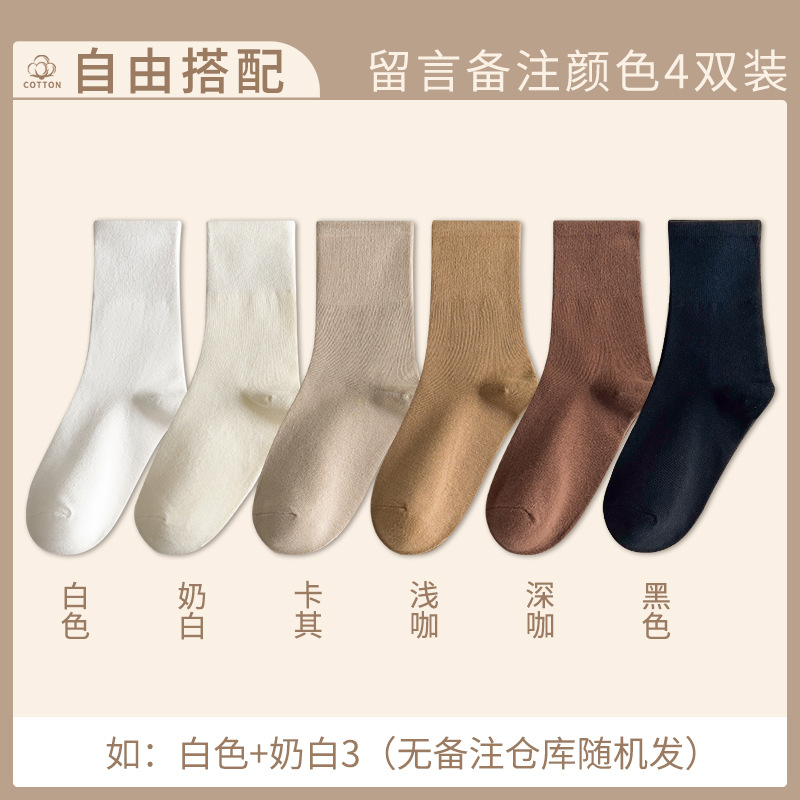 白色净版月子堆堆袜复古日系纯色吸汗中筒袜ins风秋冬棉质运动袜
