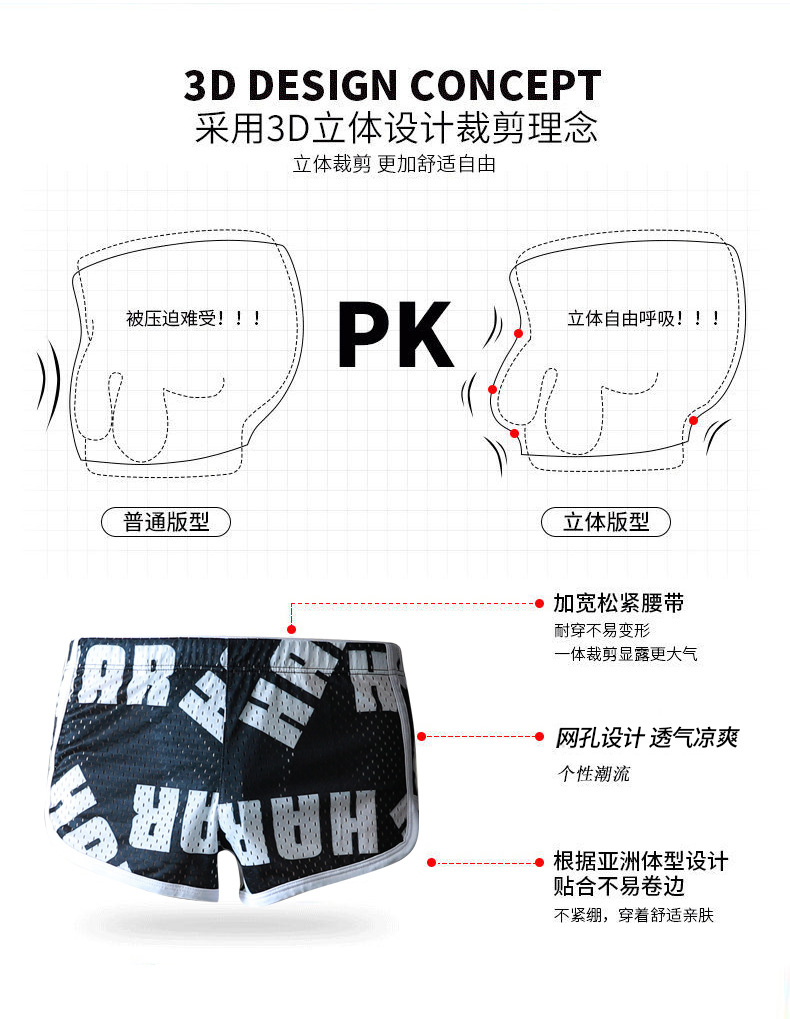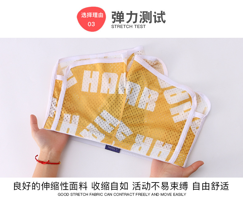 阿罗裤男士内裤男冰丝透气夏季网孔四角裤平角裤宽松大码印花短裤
