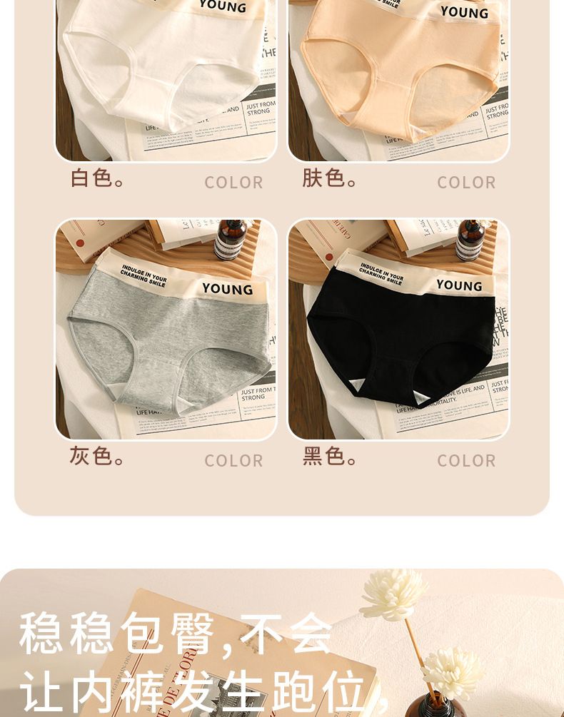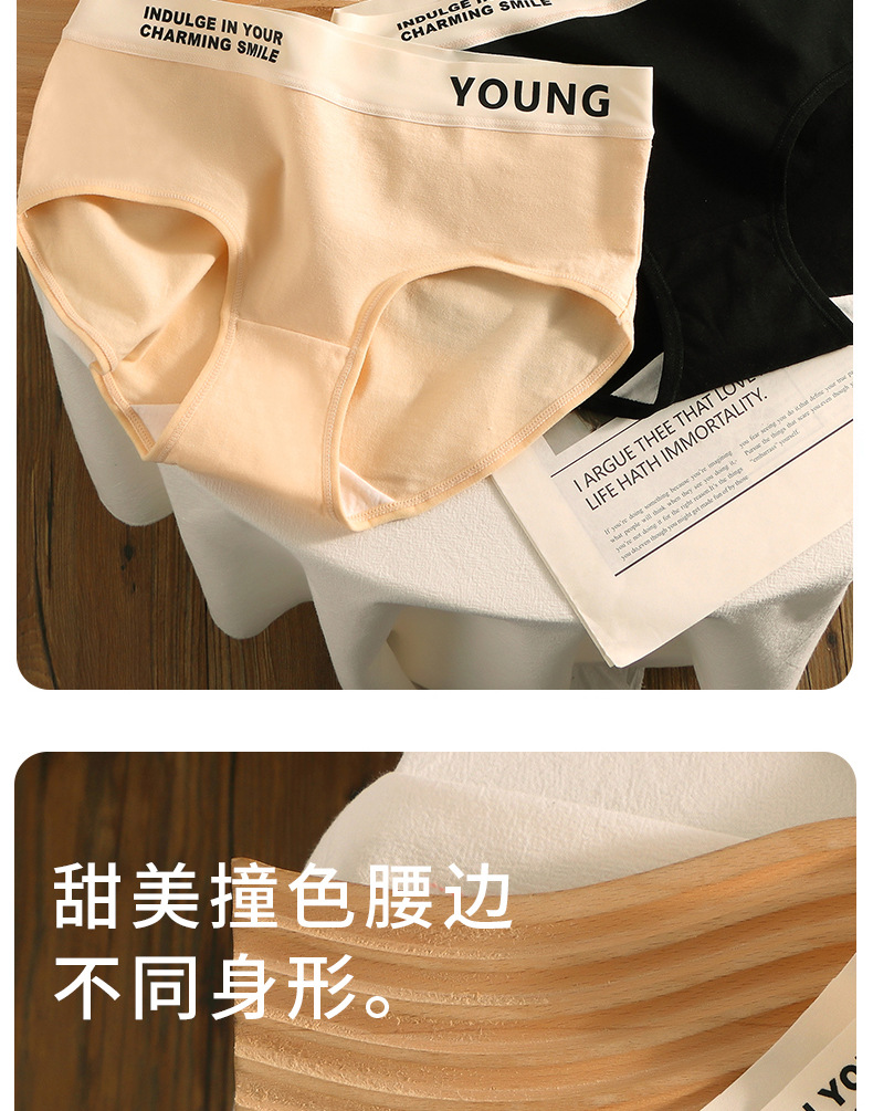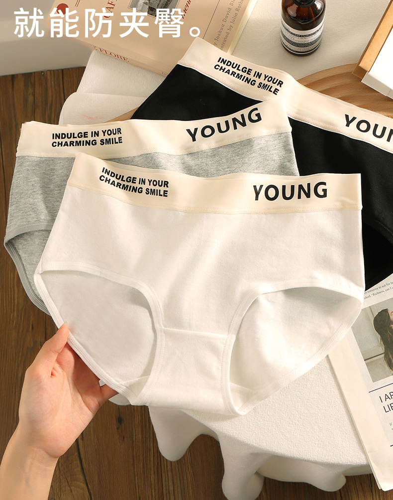 工厂直销字母纯棉内裤女士全棉裆柔软舒适透气中腰无痕少女三角裤