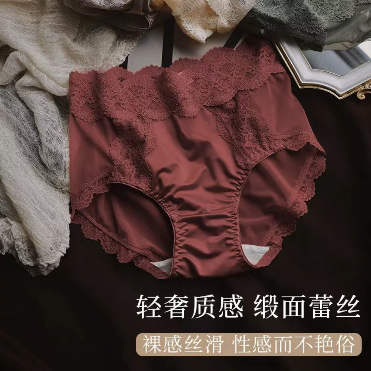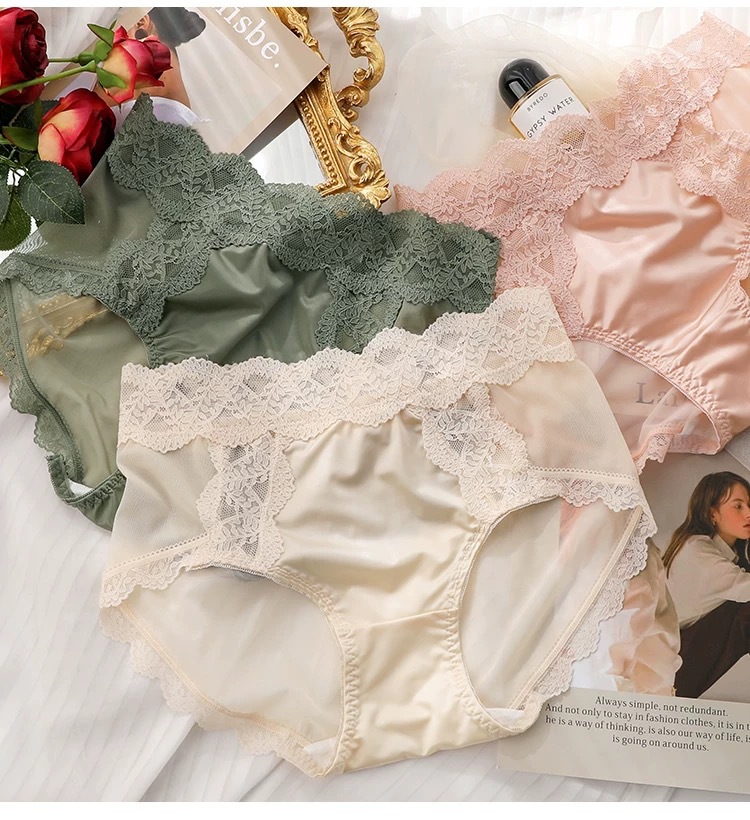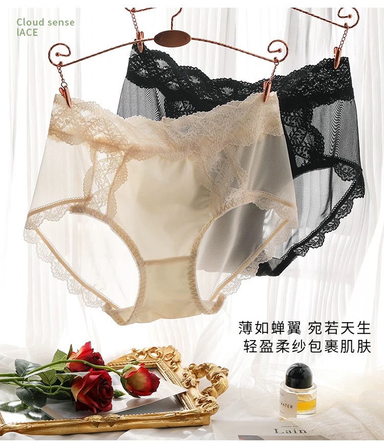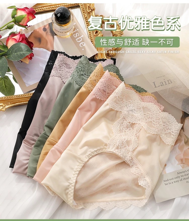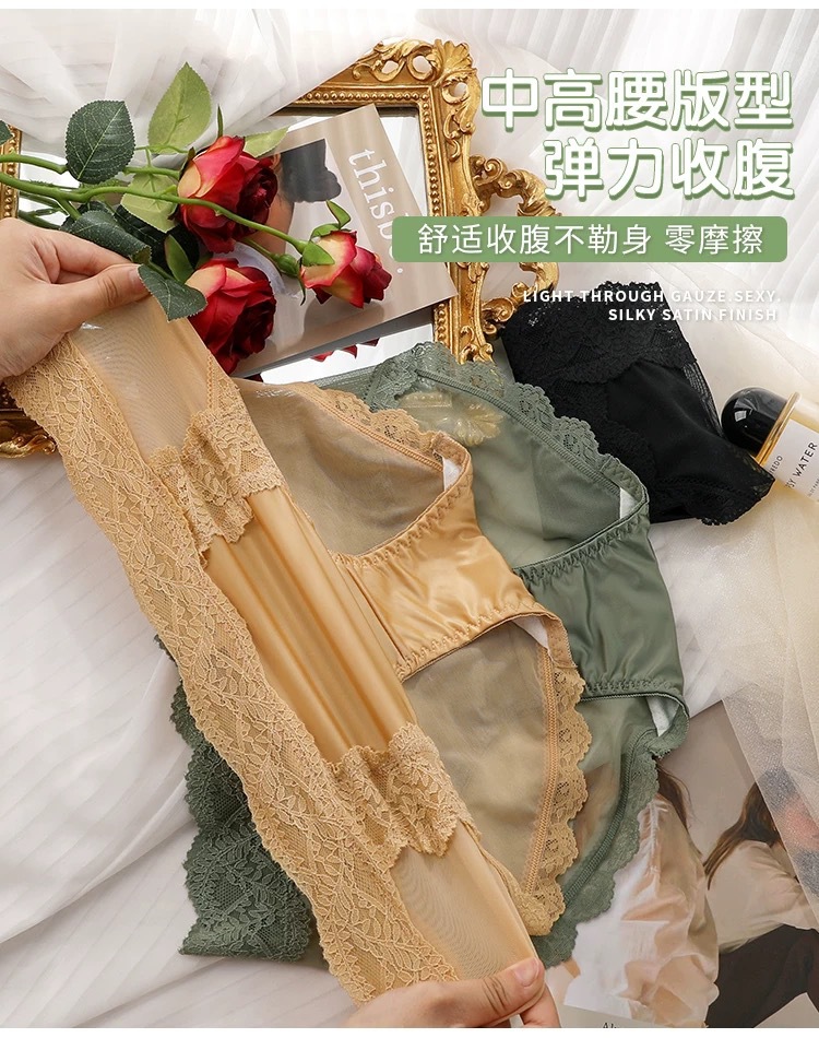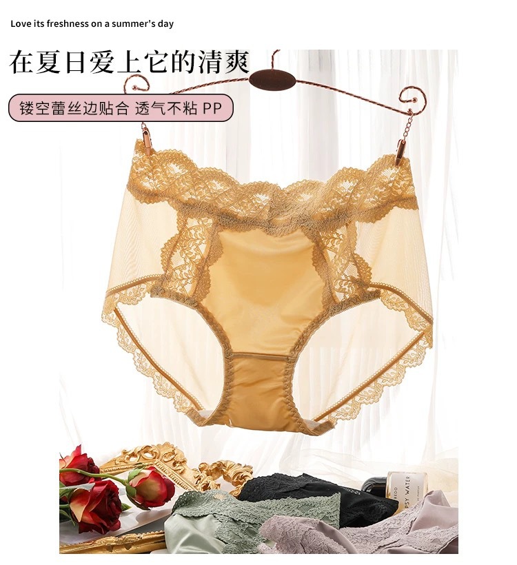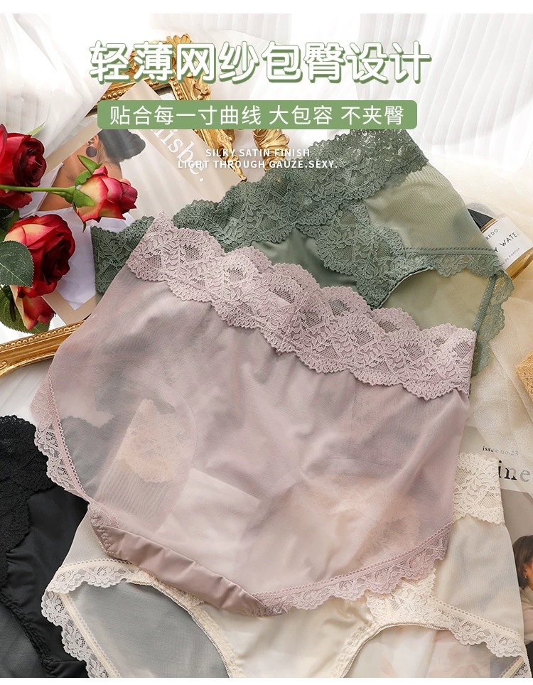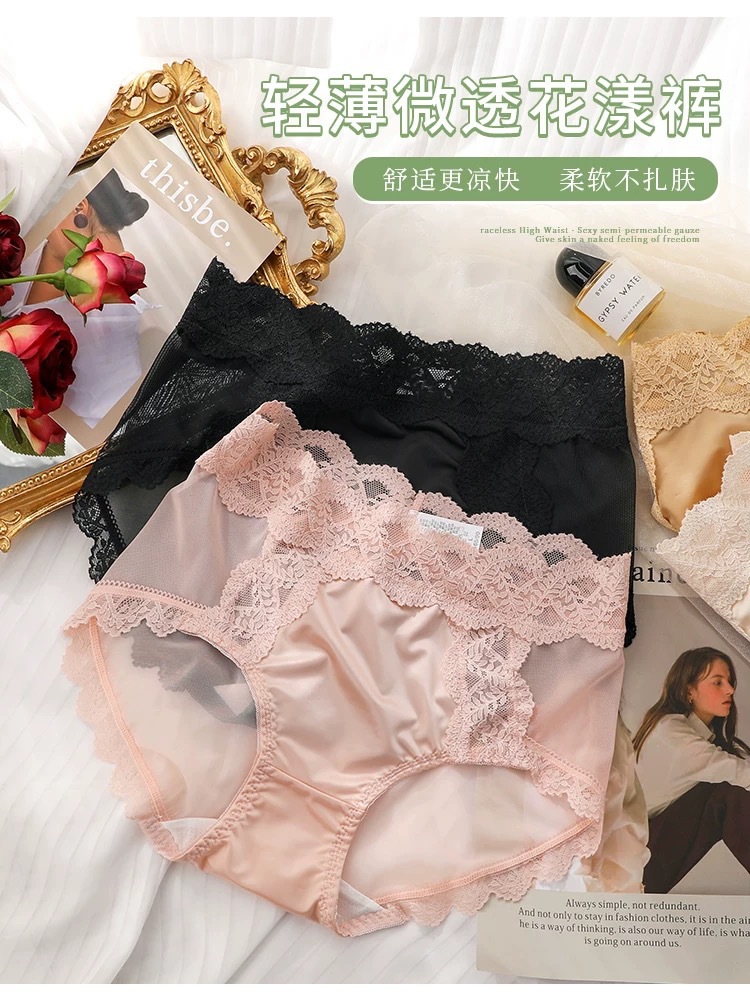蕾丝纯欲风内裤女士性感收腹提臀2024新款法式夏季薄款女生三角裤