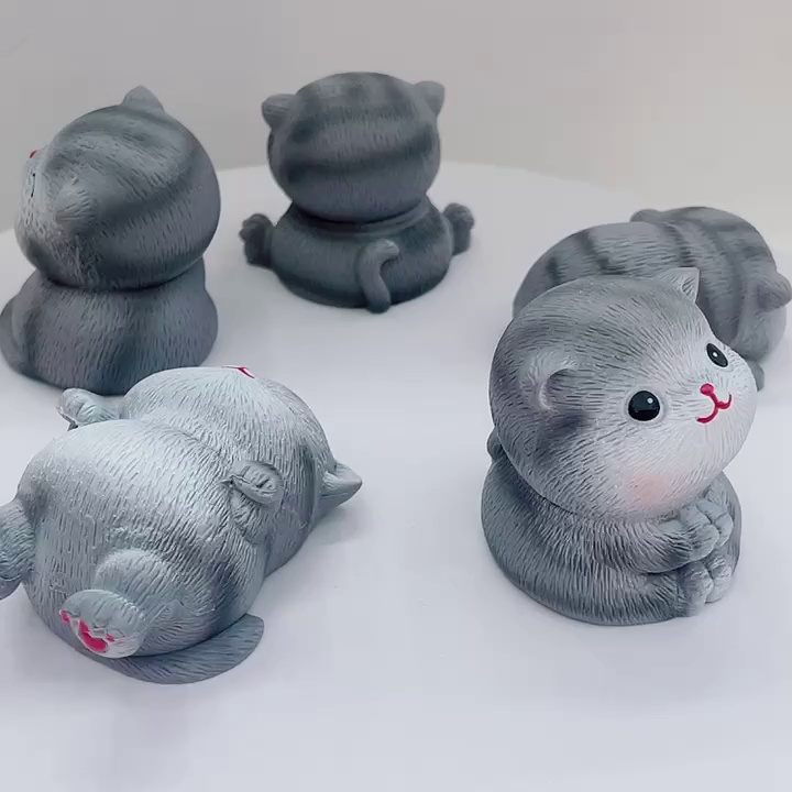 5款可爱猫咪摆件汽车饰品桌面摆件模型 扭蛋抓娃盒批发