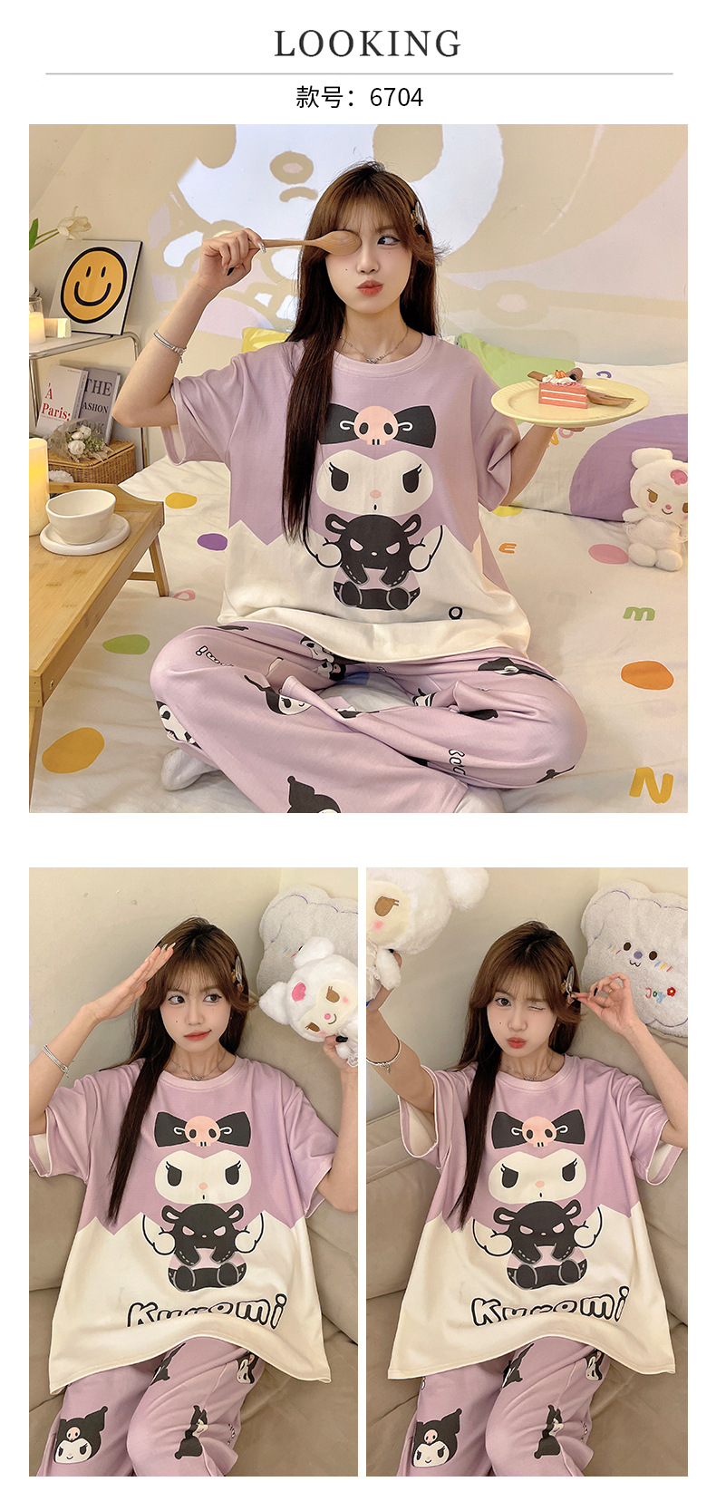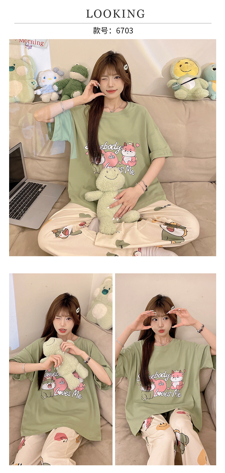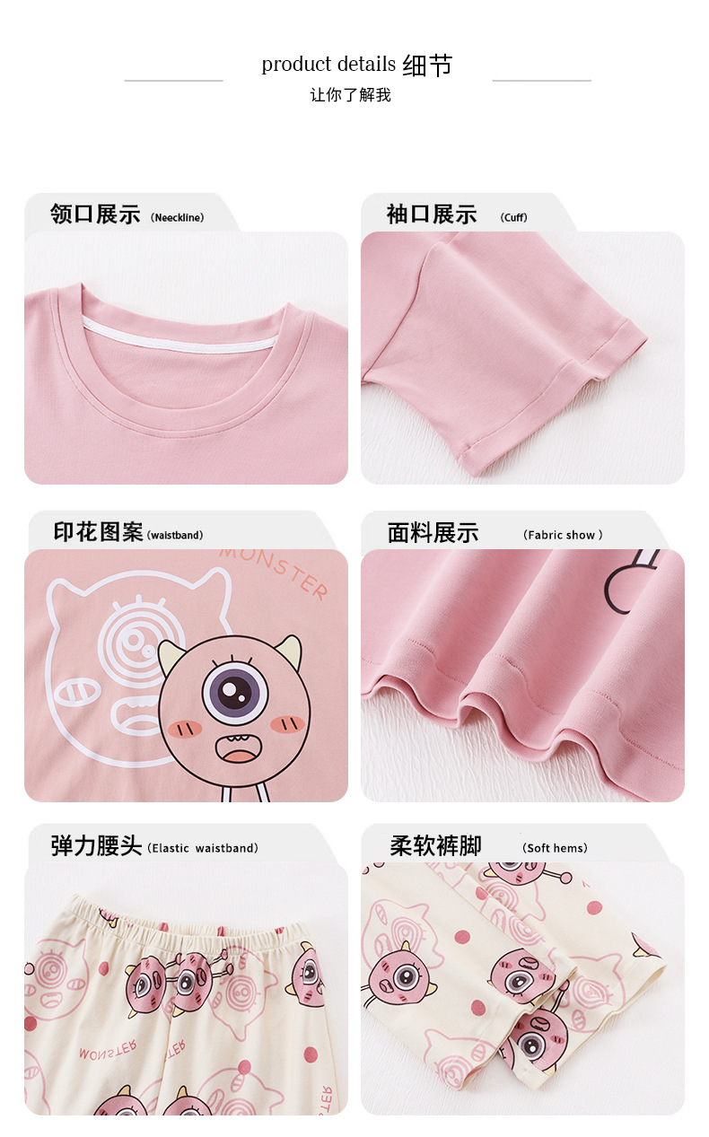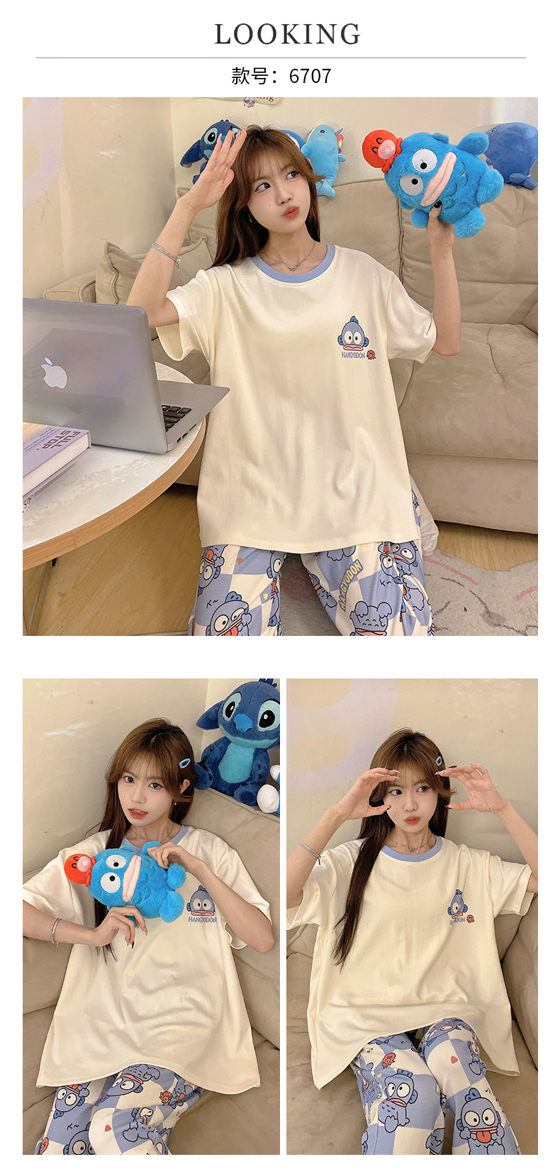 pajamas跨境外贸睡衣批发女夏季短袖长裤卡通可爱休闲家居服套装