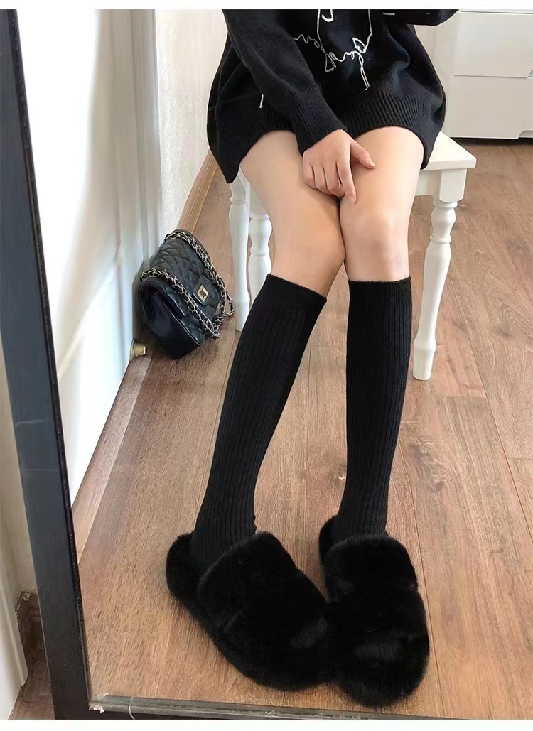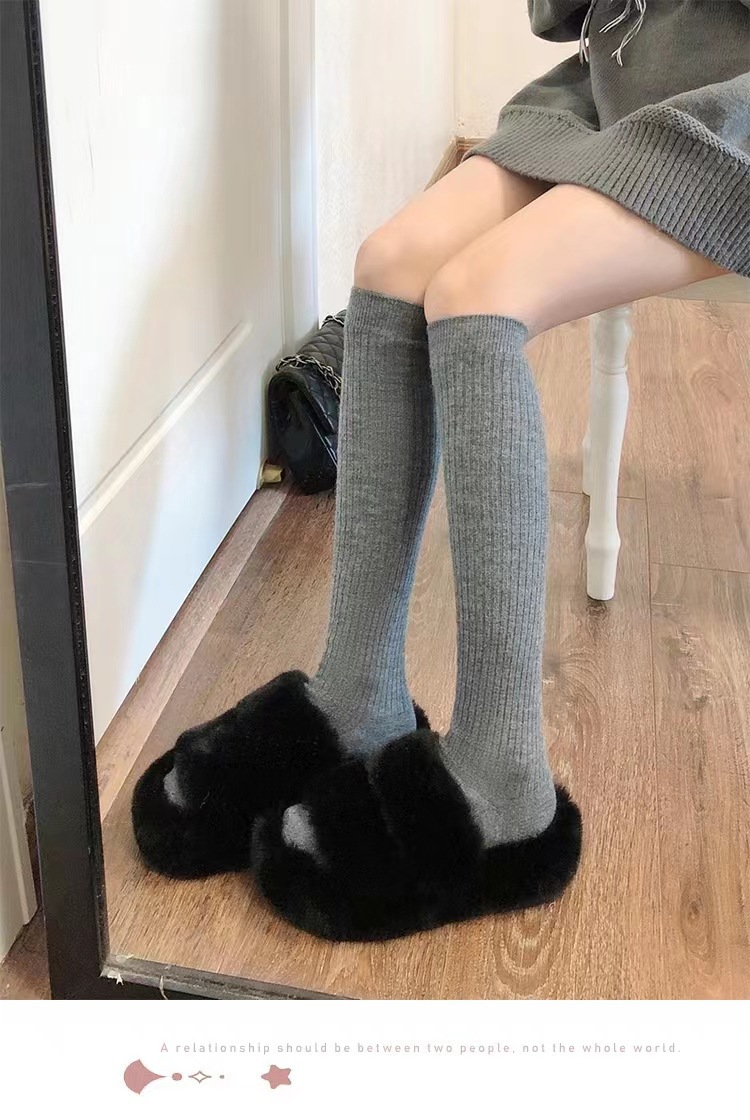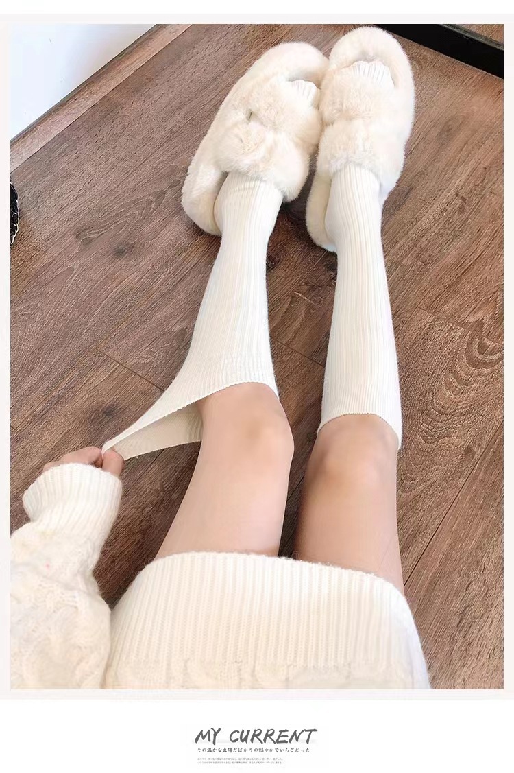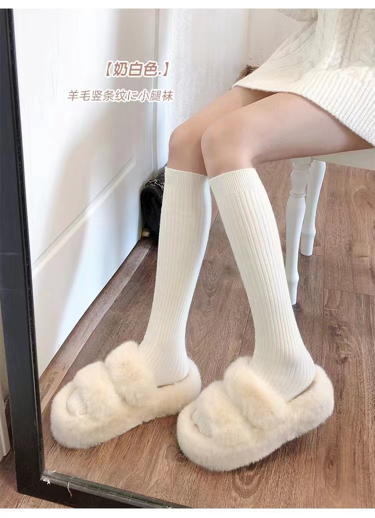 冬季袜子条纹奶白色小腿袜女jk纯欲风休闲竖纹中筒日系膝盖堆堆