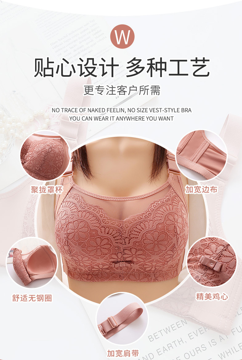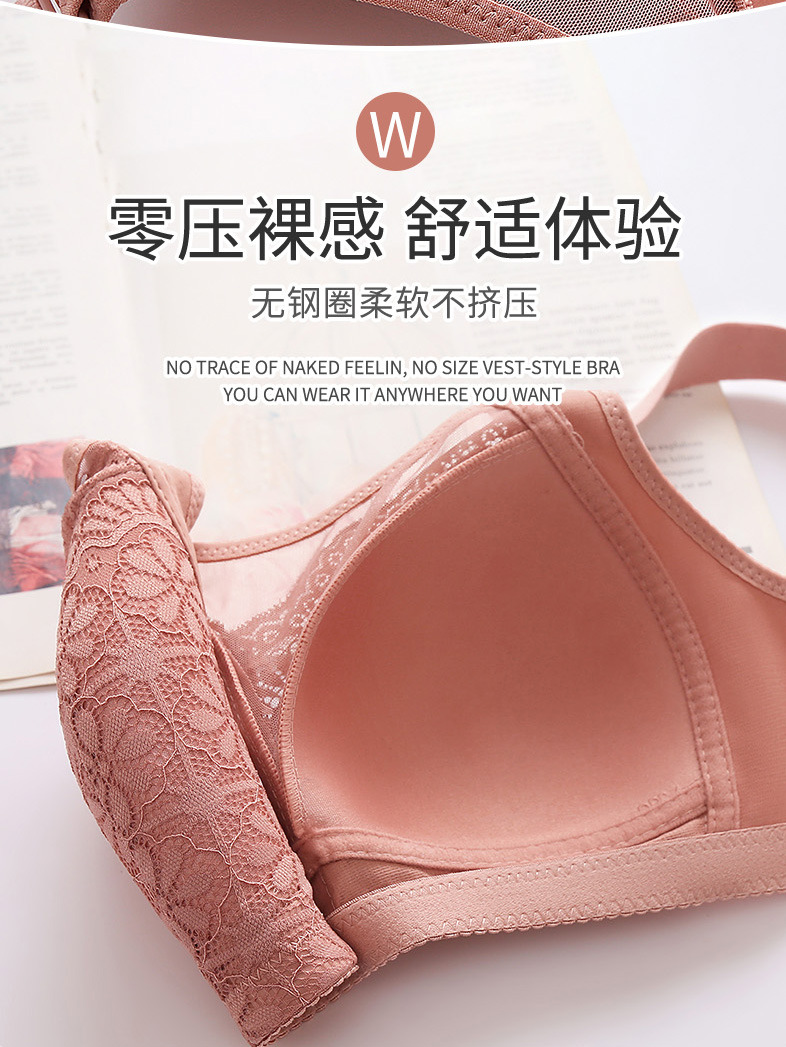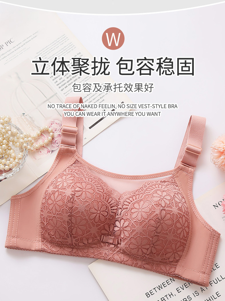 2024新款大码性感蕾丝抹胸文胸罩无钢圈聚拢侧收大胸显小妈妈内衣