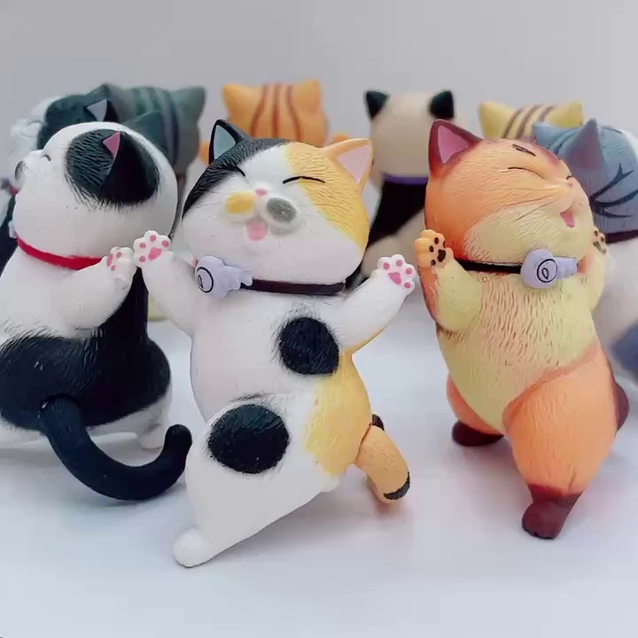 超萌Q版9款 喝彩猫咪举手妖娆猫抬手跳舞蛋糕摆件 扭蛋批发