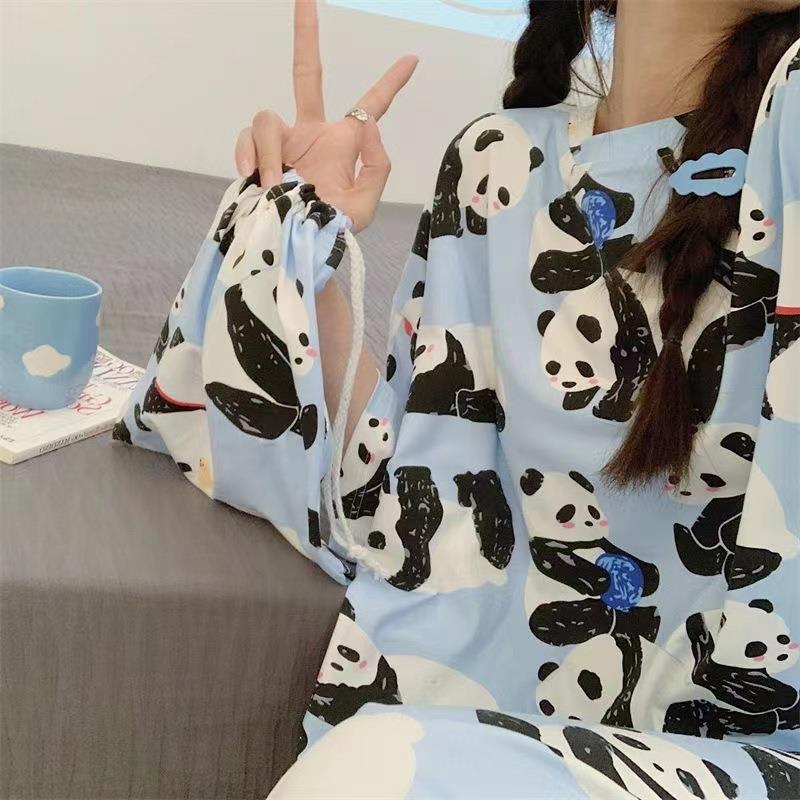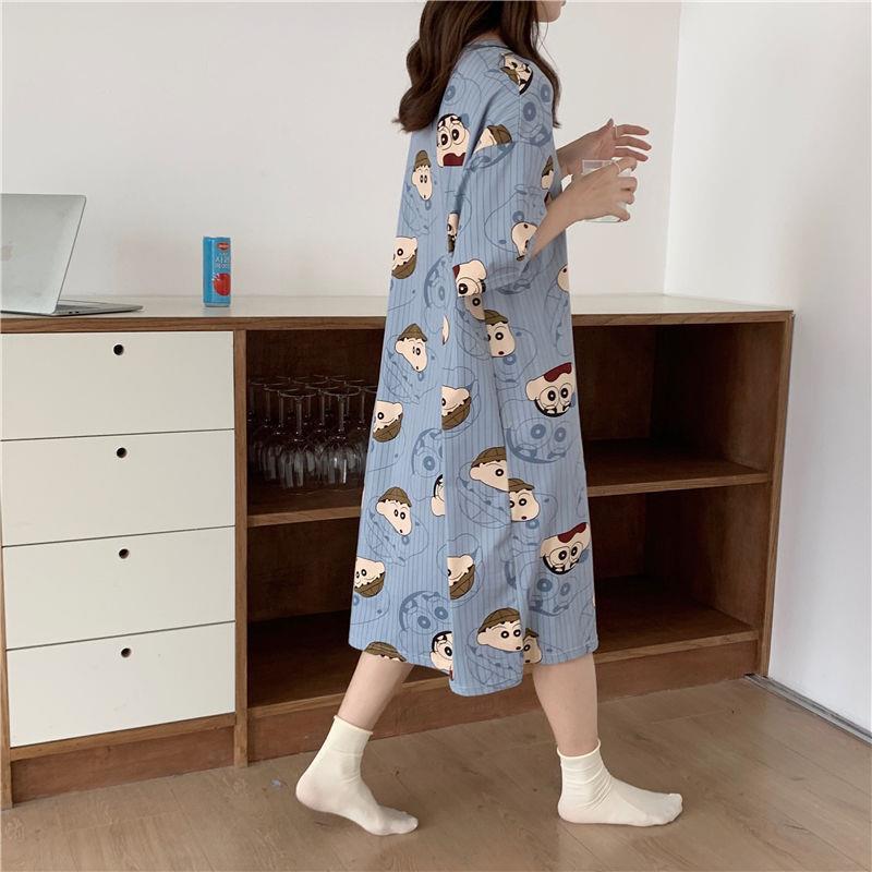 日系ins风卡通睡衣女夏季短袖睡裙女夏天外穿孕妇学生可爱家居服