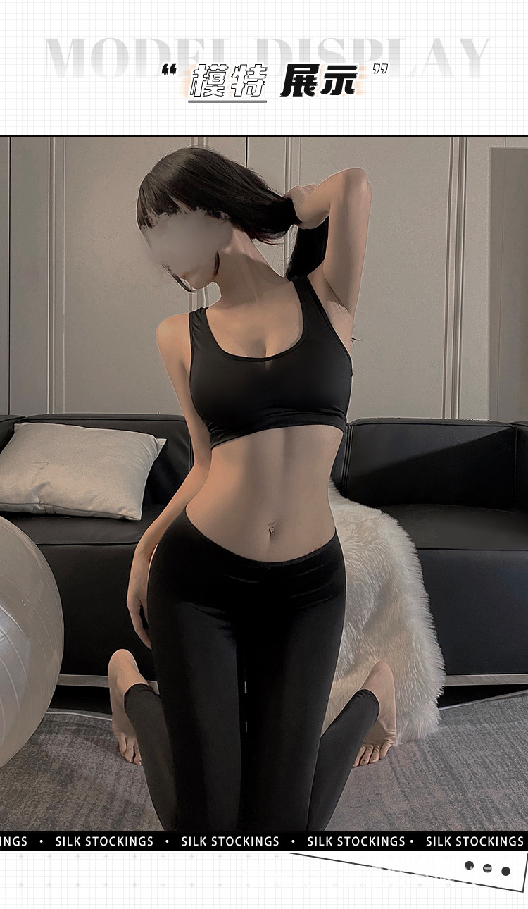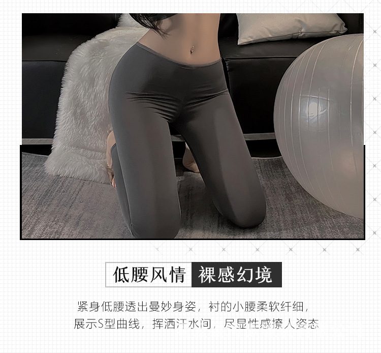 情趣内衣爽滑冰丝开裆露臀瑜伽裤短款露营打野性感挑逗闷骚套装女