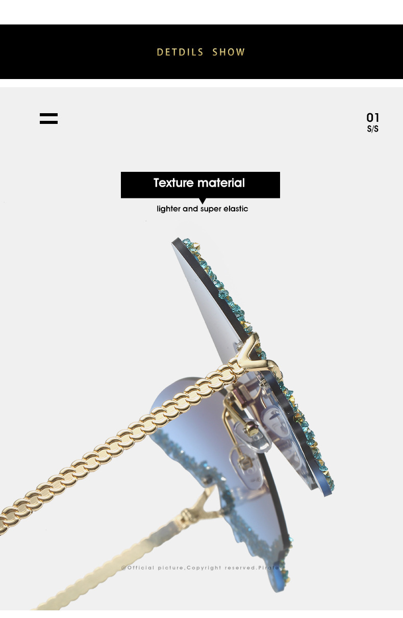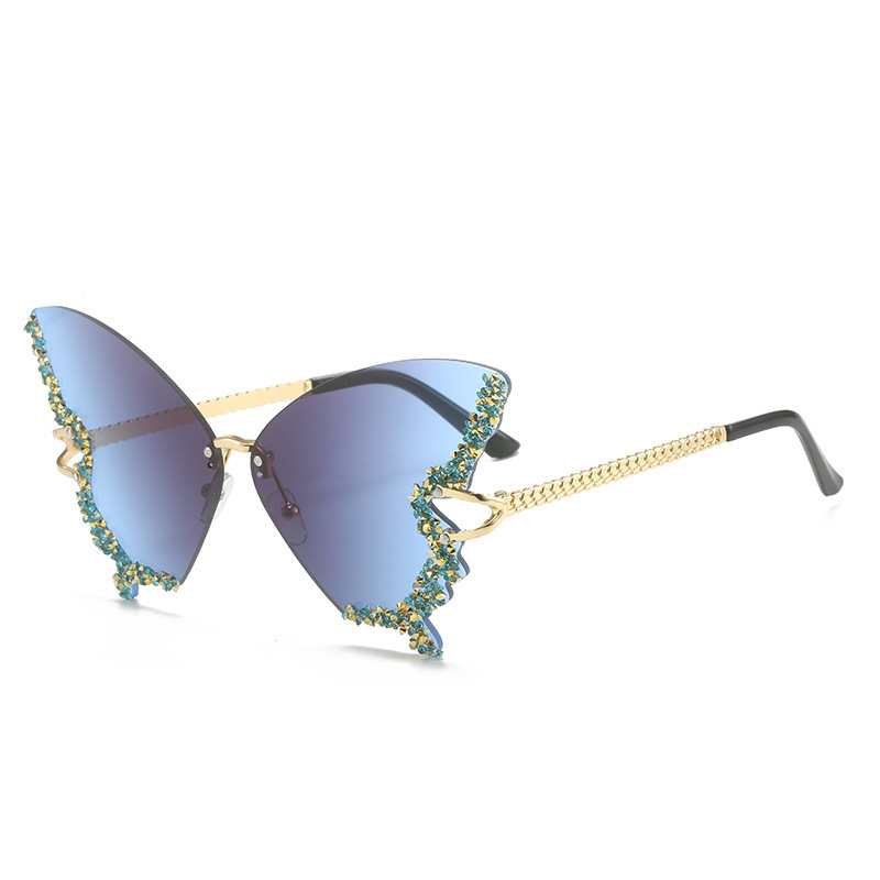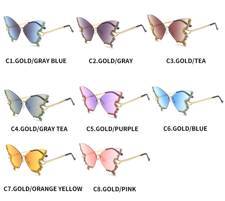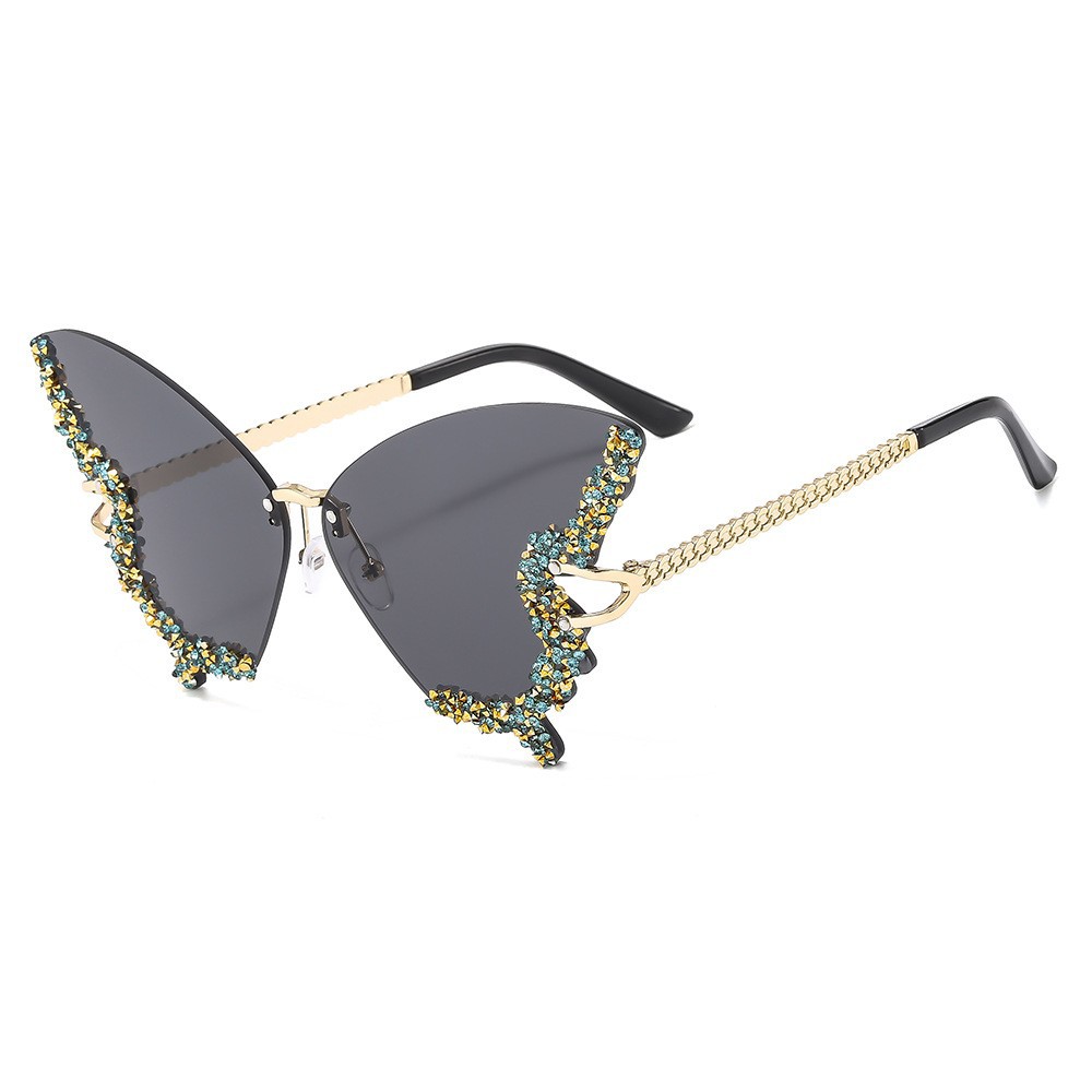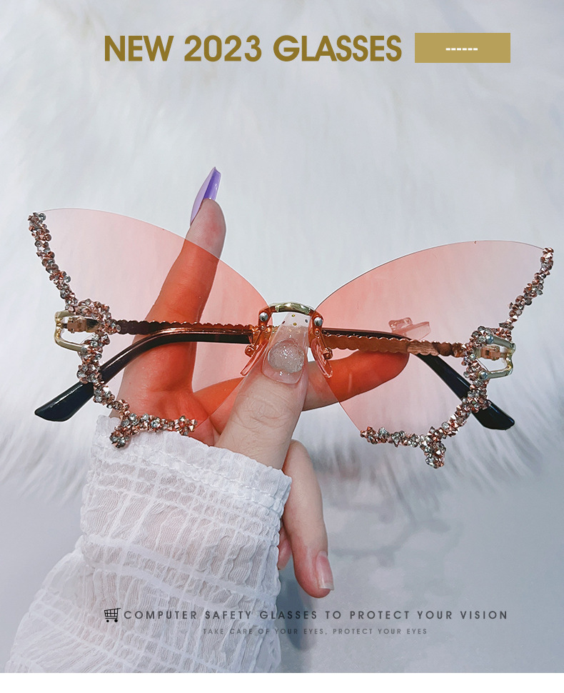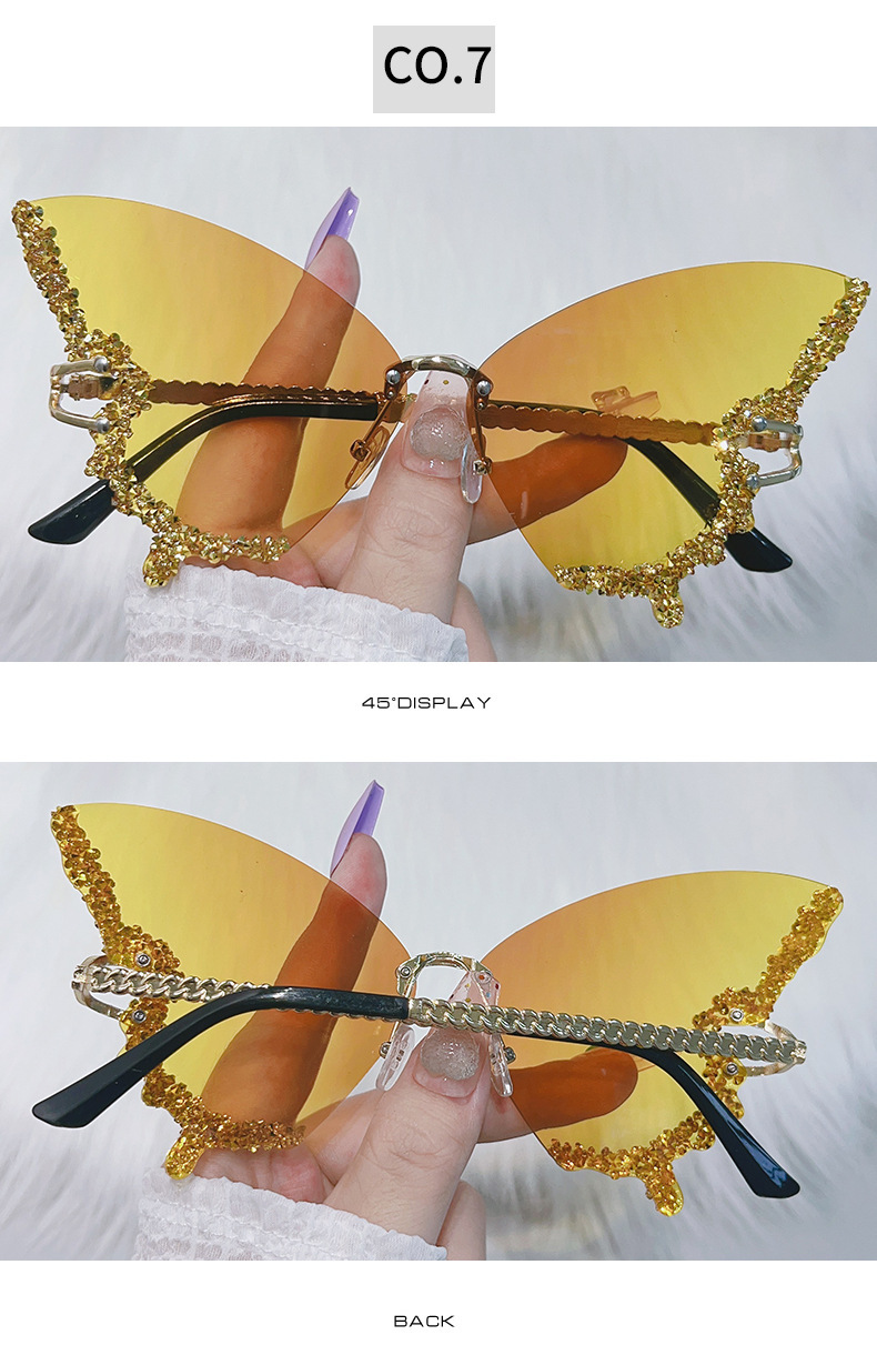 跨境爆款蝴蝶造型镶钻无框太阳镜欧美个性风潮女士百搭墨镜批发