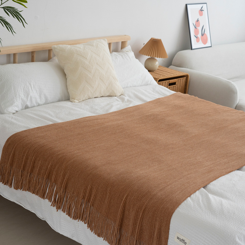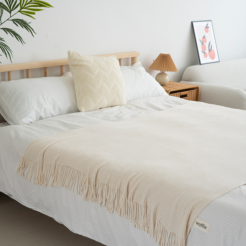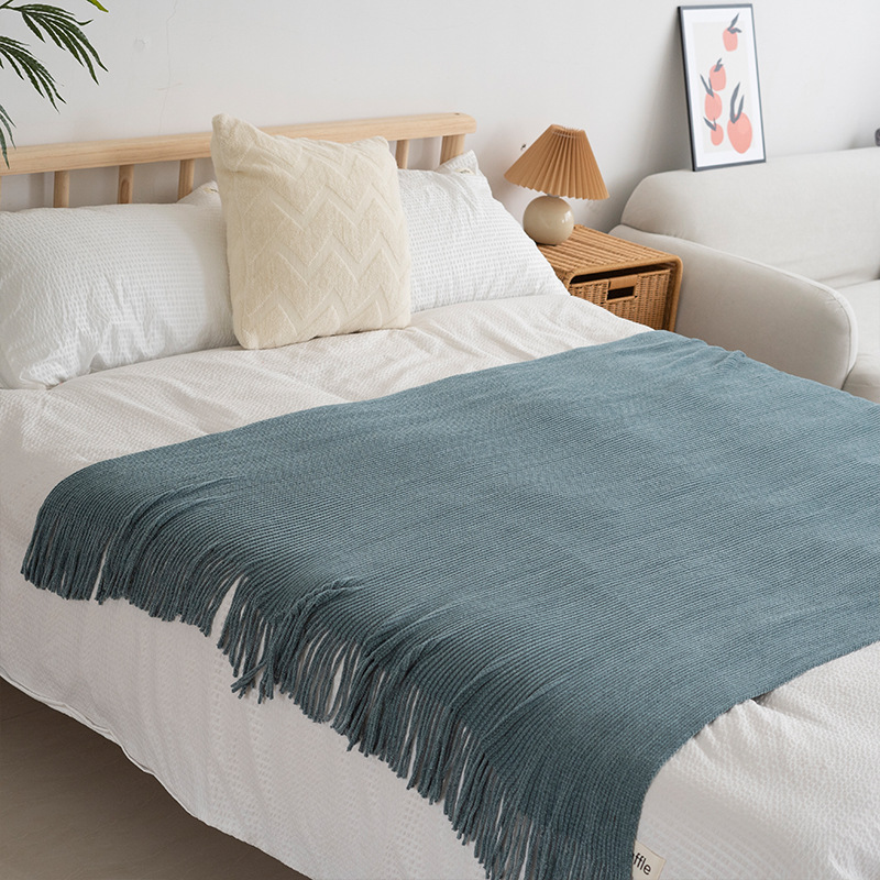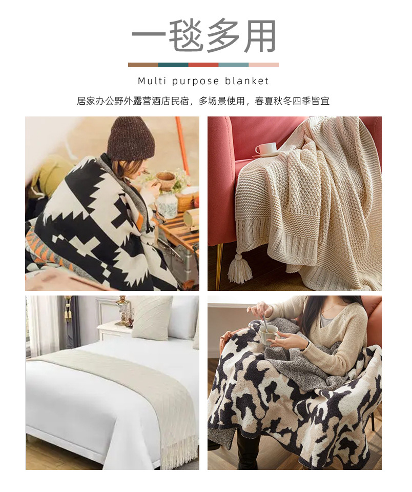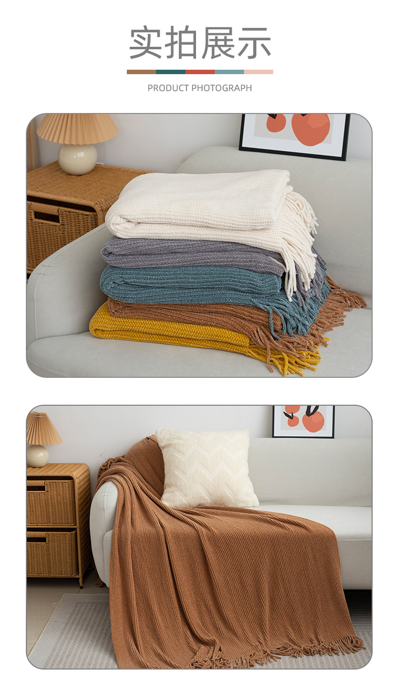 ins北欧风沙发盖毯办公室午睡毯子流苏针织球毛线休闲空调小毛毯