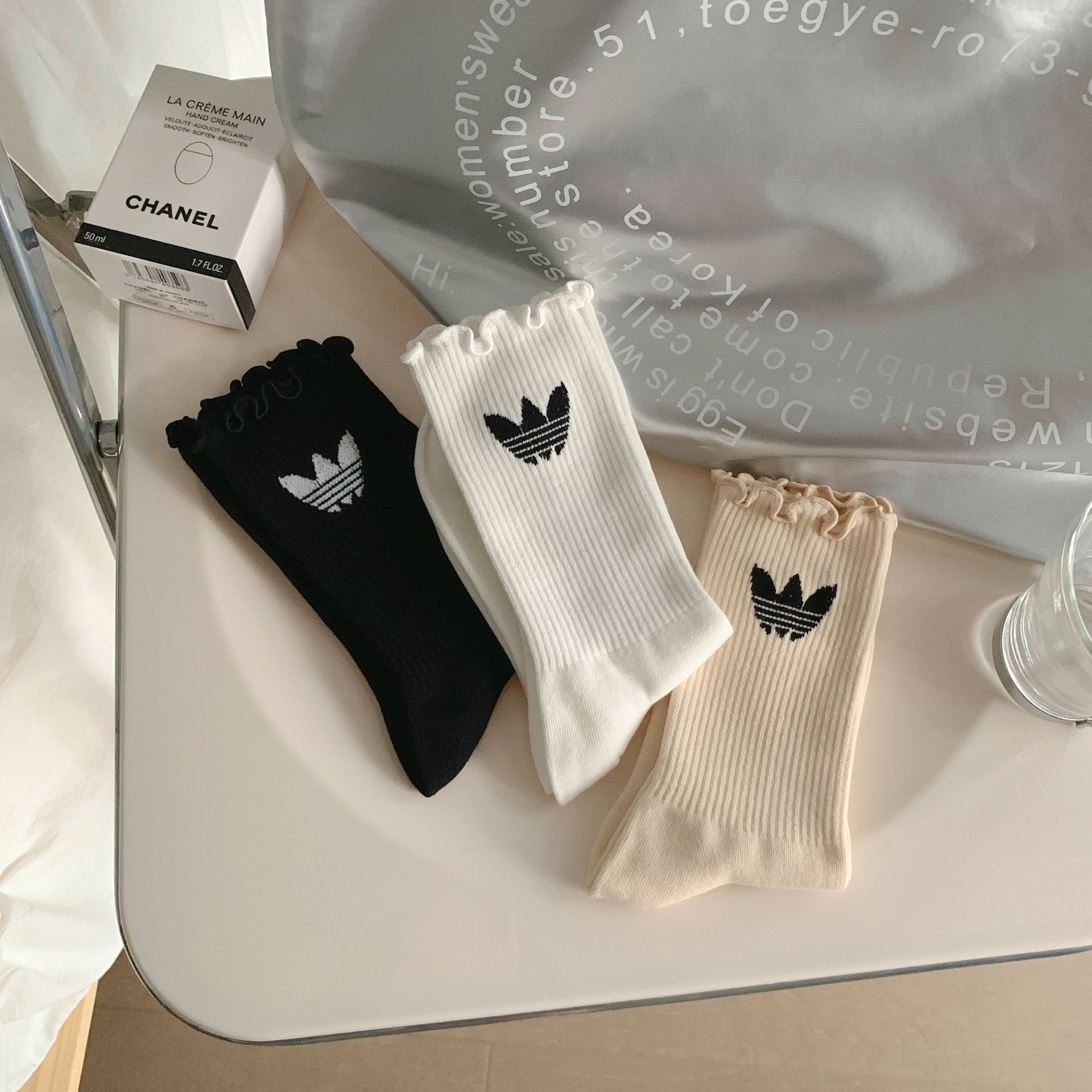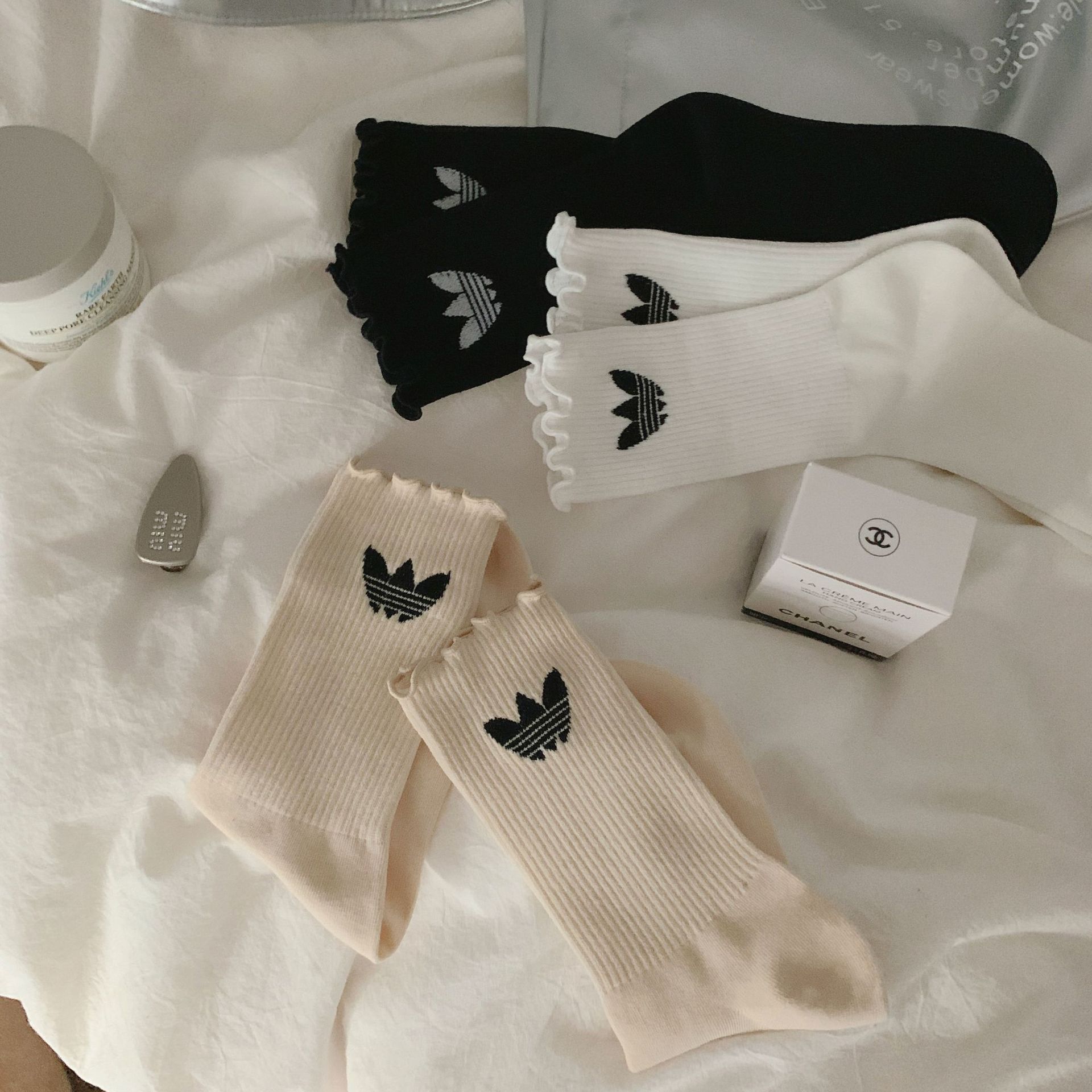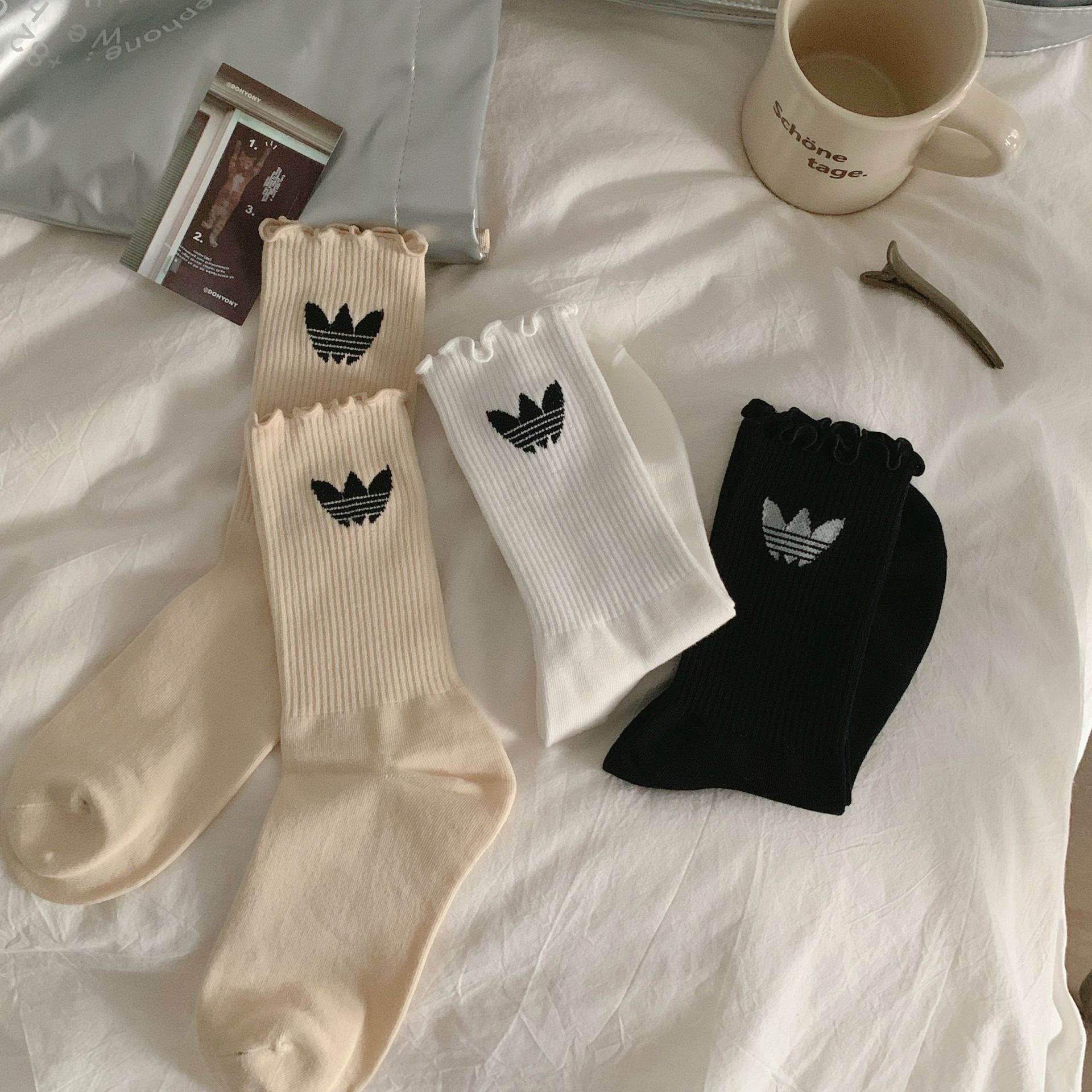 2024幸运草adid袜子女春夏纯色棉质中筒袜欧货时尚学生运动长袜