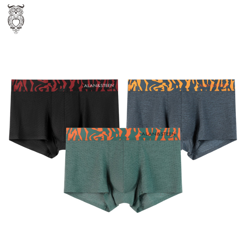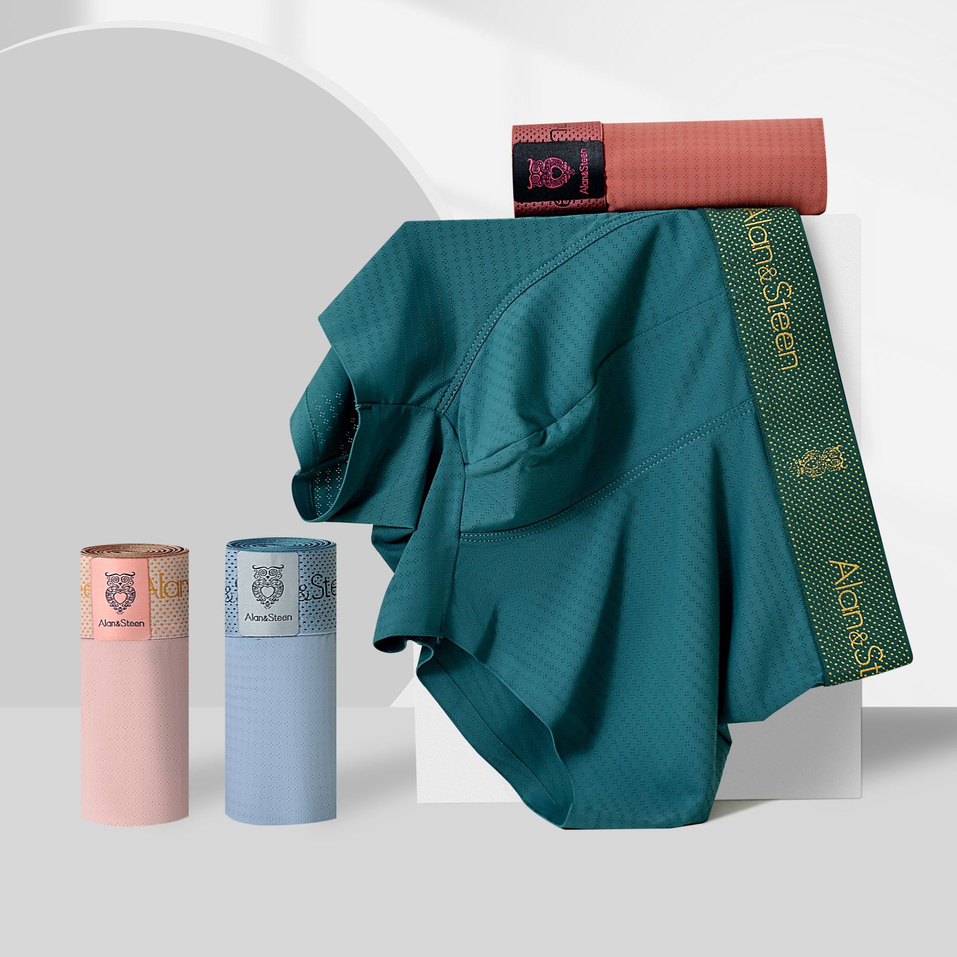夏季男士无痕冰丝内裤个性大码透气男学生平角裤纯色四角短裤批发