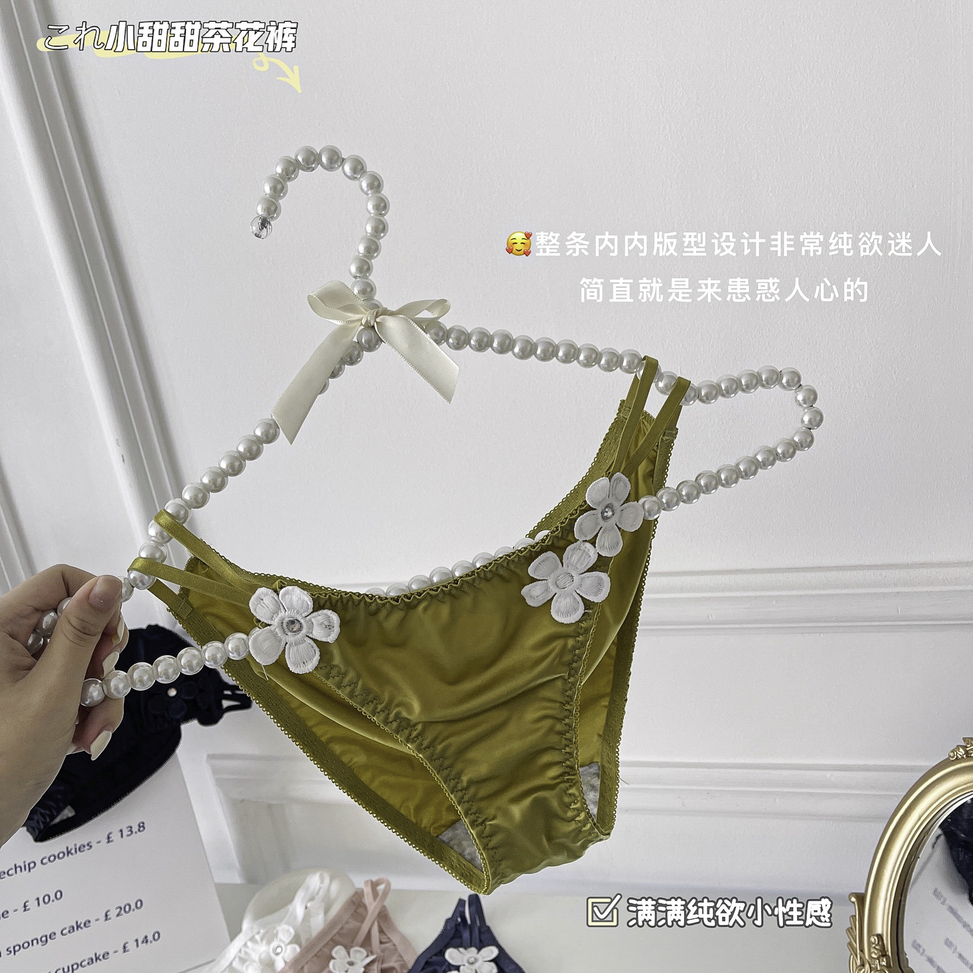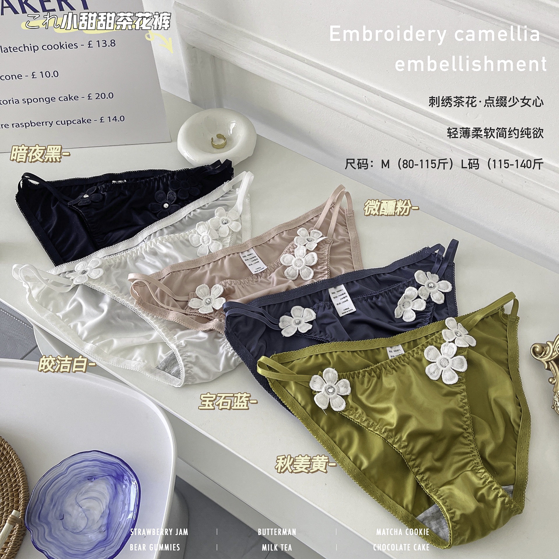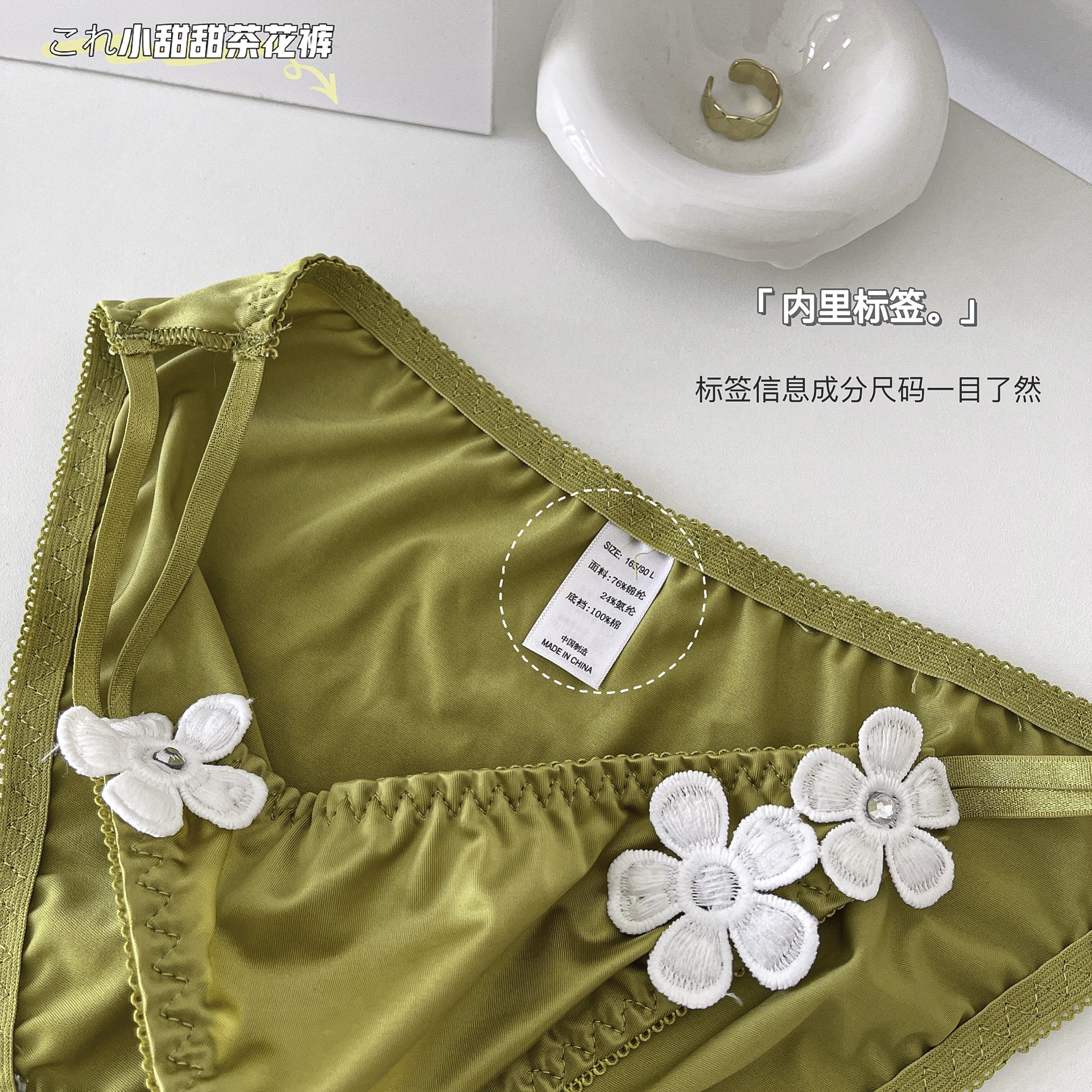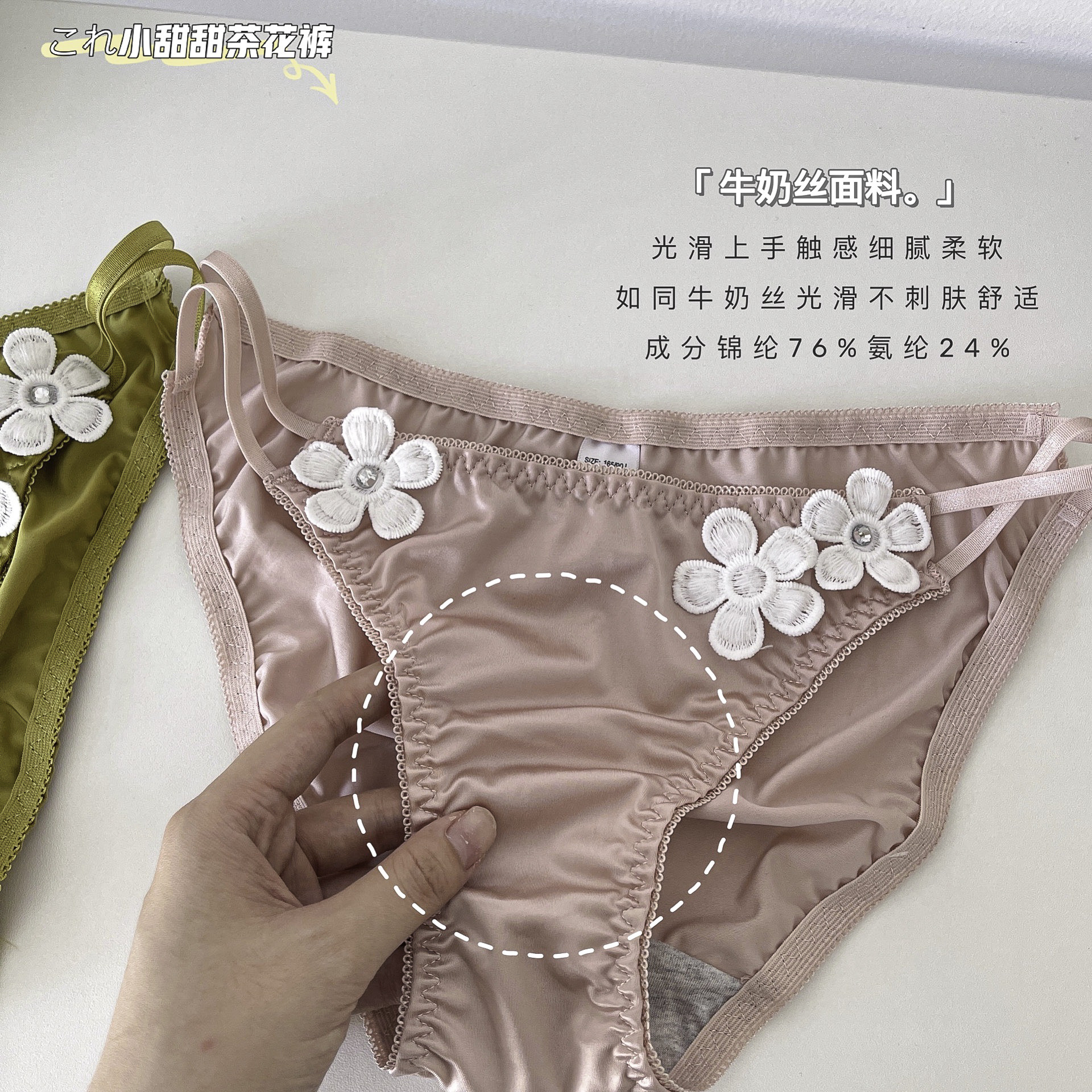 日系性感茶花裤女士内裤夏薄牛奶丝包臀舒适绸缎细带低腰三角裤女