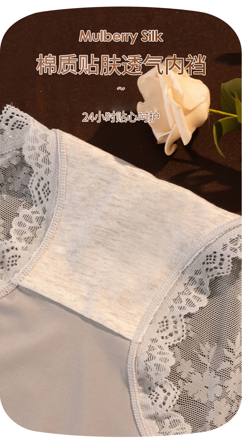 蕾丝边内裤女性感微透三角裤批发高腰透气大码棉裆无痕女式三角裤