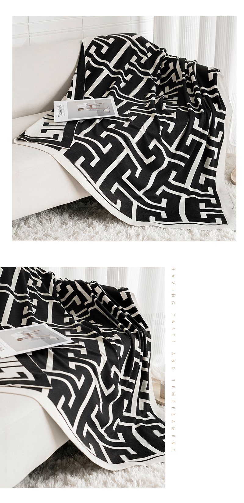 现代简约休闲毯办公室午休毯沙发毯子迷宫搭毯民宿样板间床尾搭巾